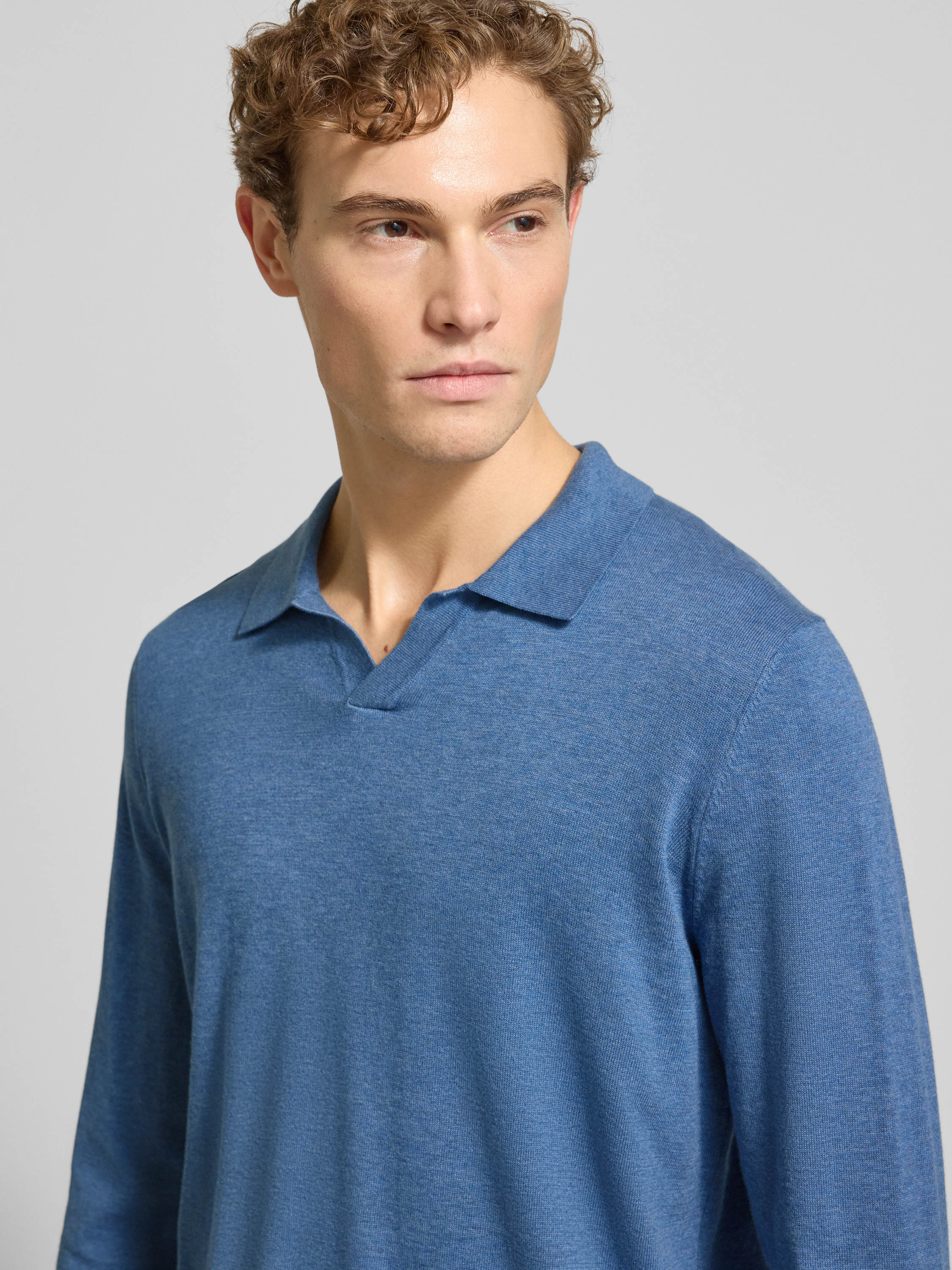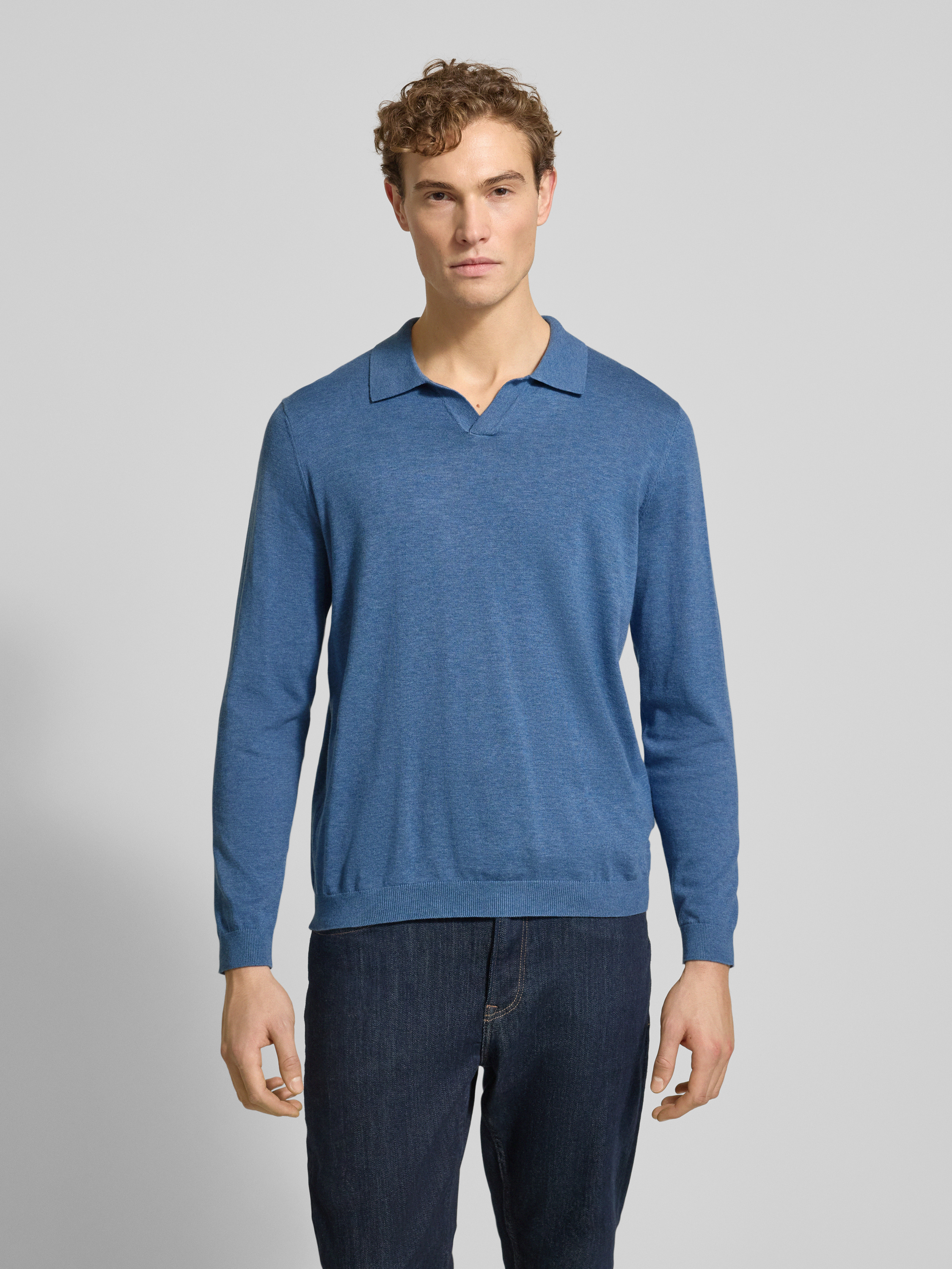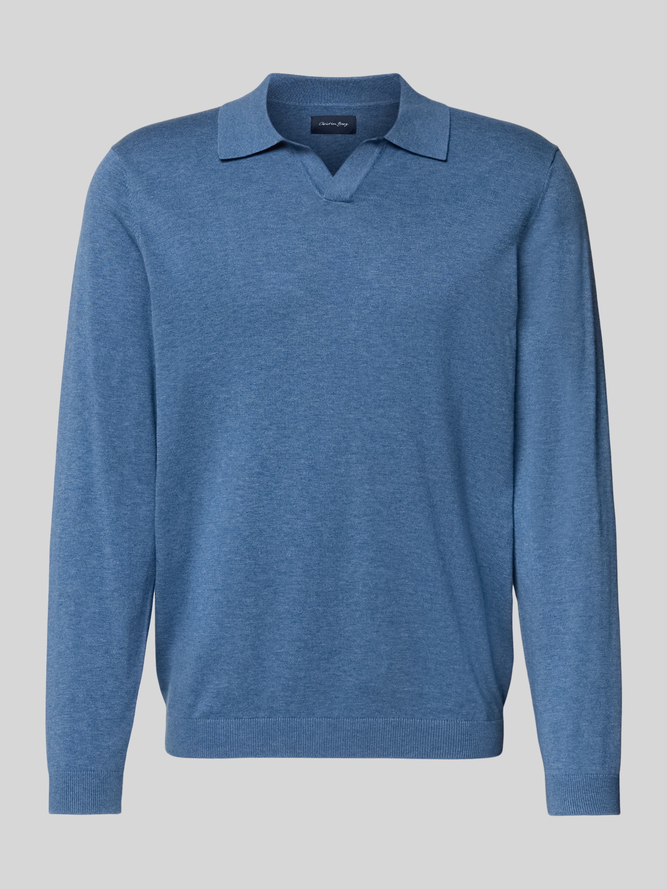 Christian Berg MenGebreide pullover met polokraag in jeansblauw gemêleerd