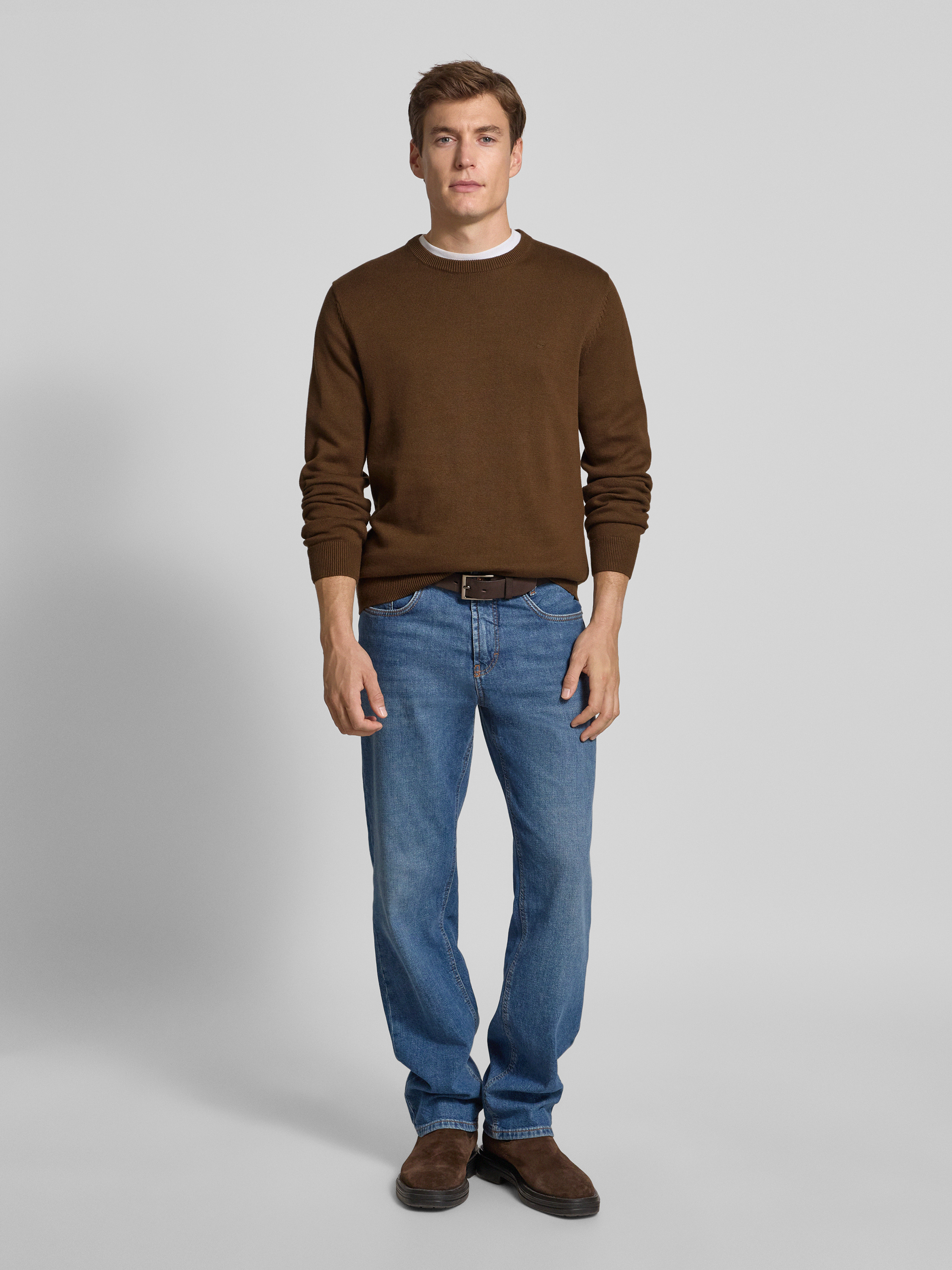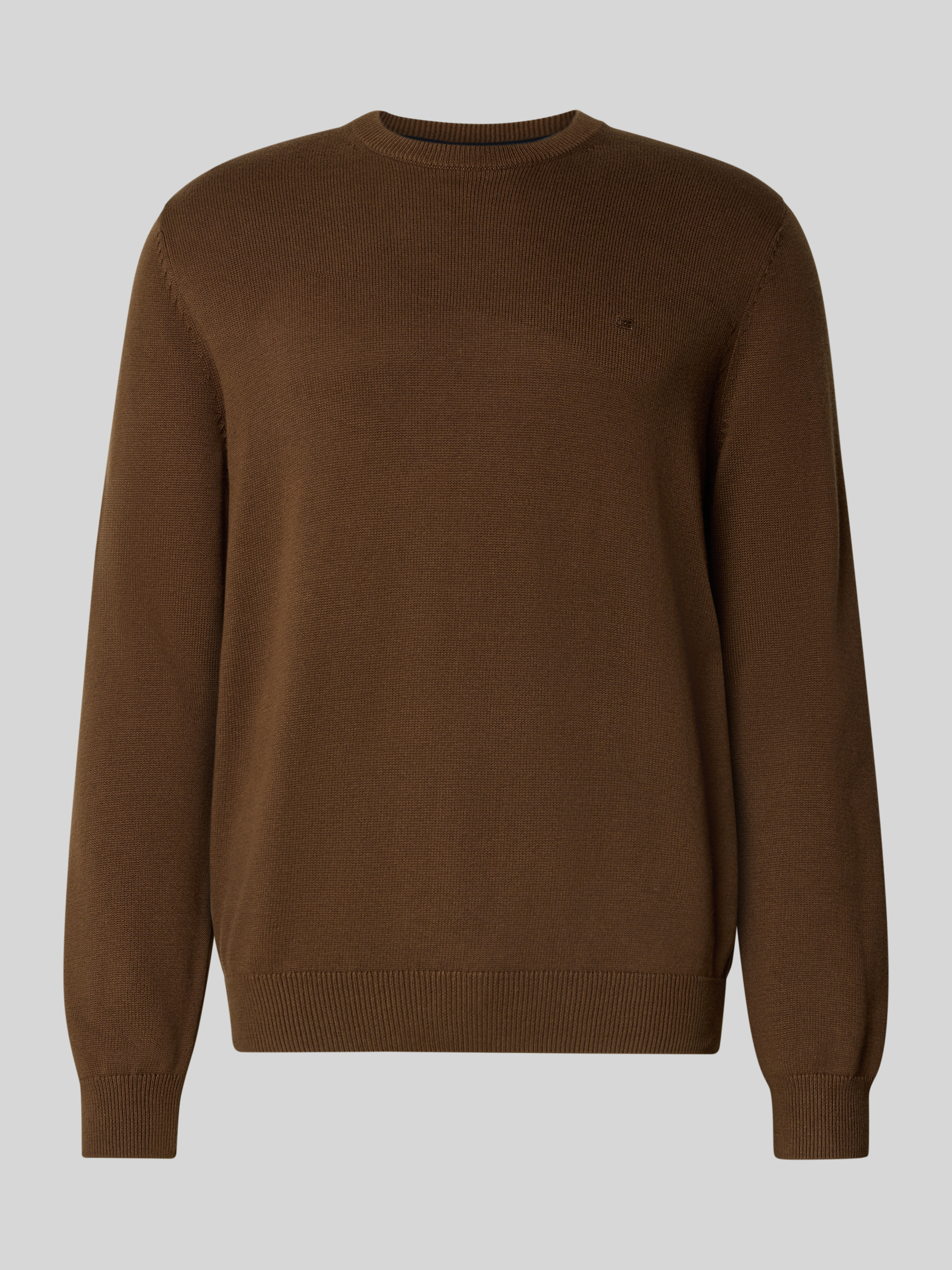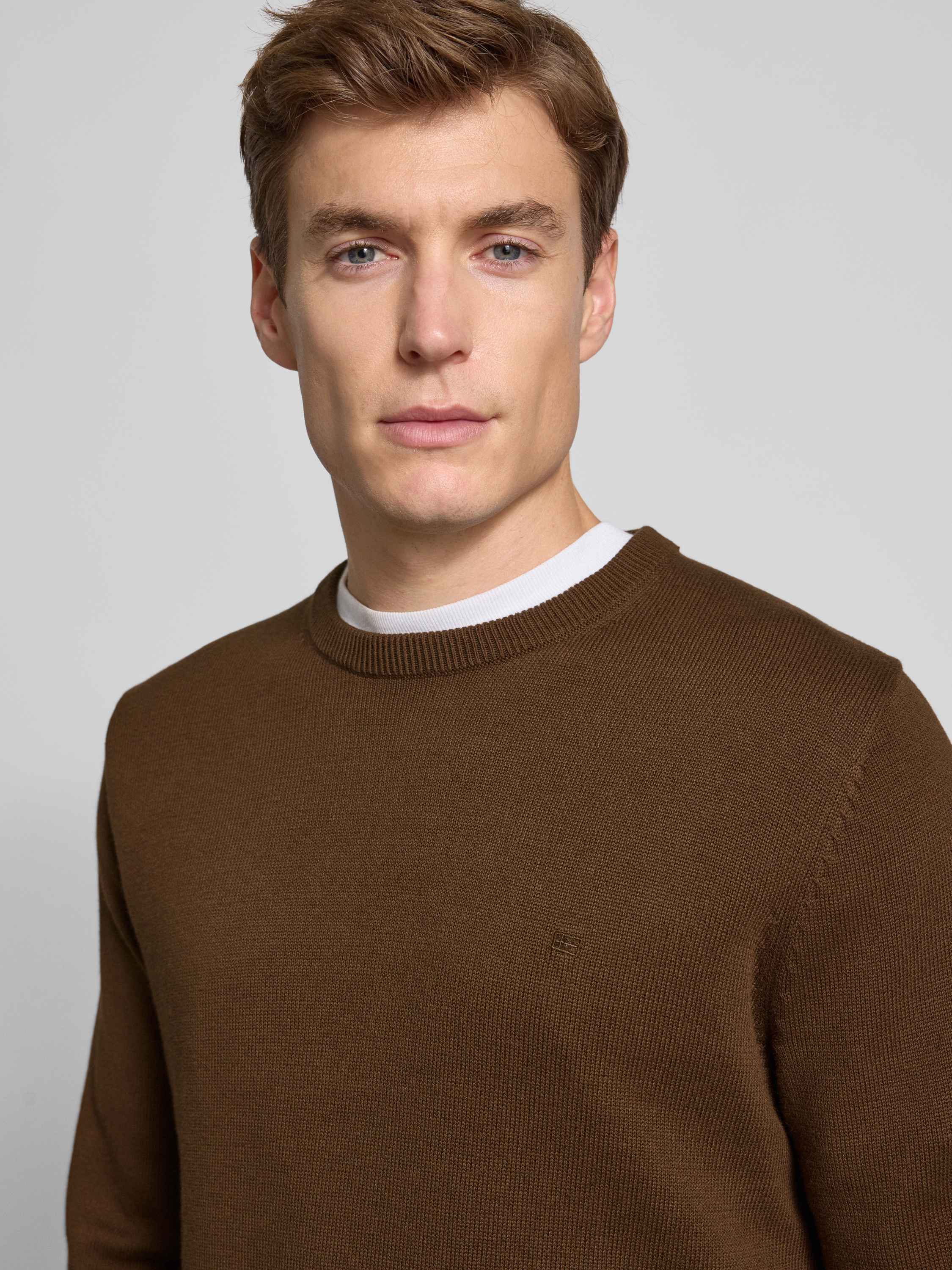 Christian Berg MenGebreide pullover met ribboorden in donkerbruin gemêleerd