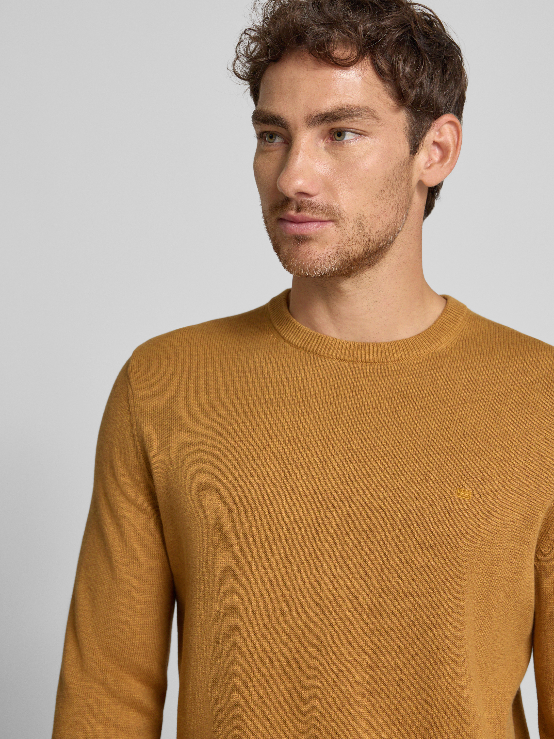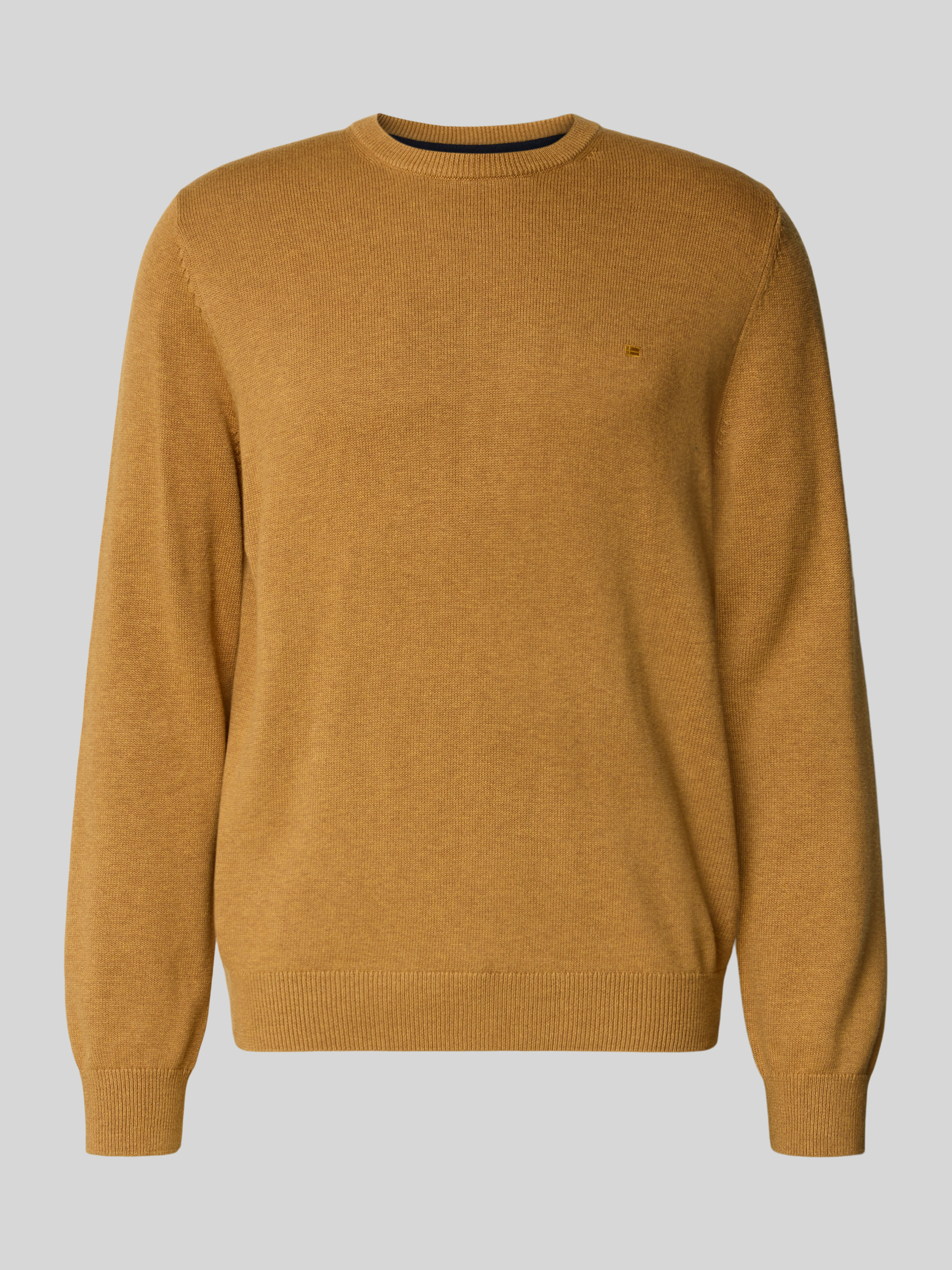 Christian Berg MenGebreide pullover met ribboorden in donkergeel gemêleerd