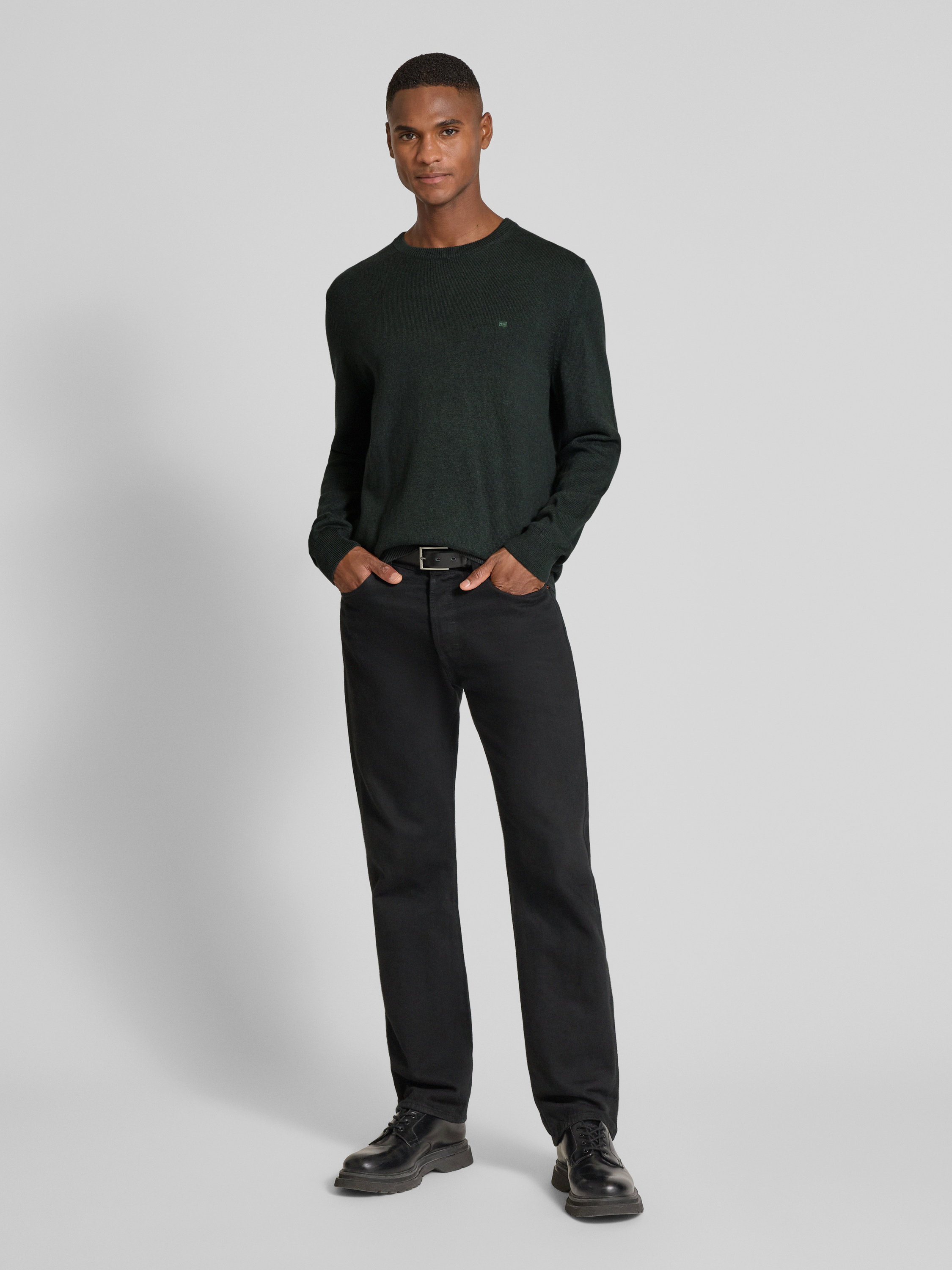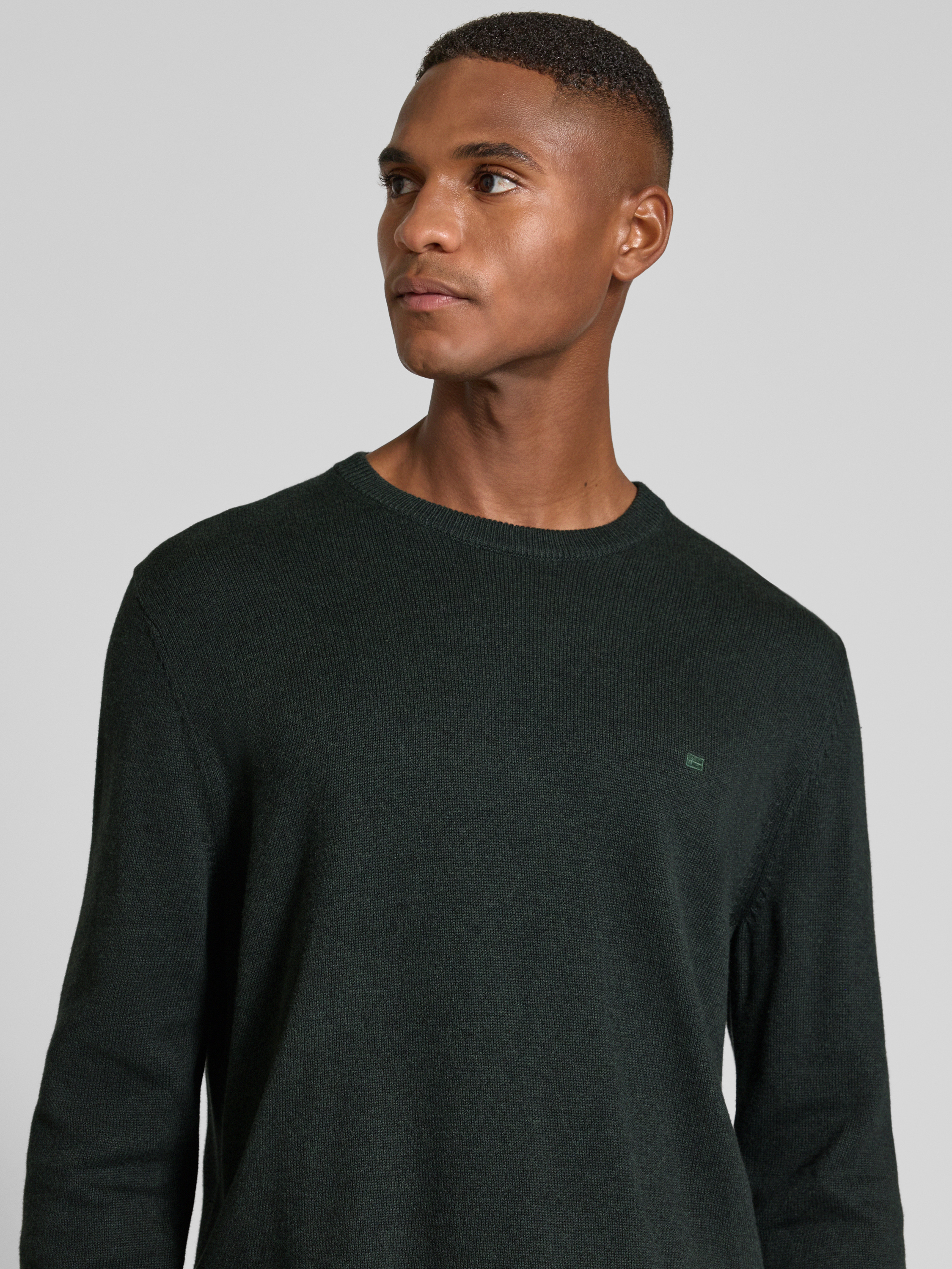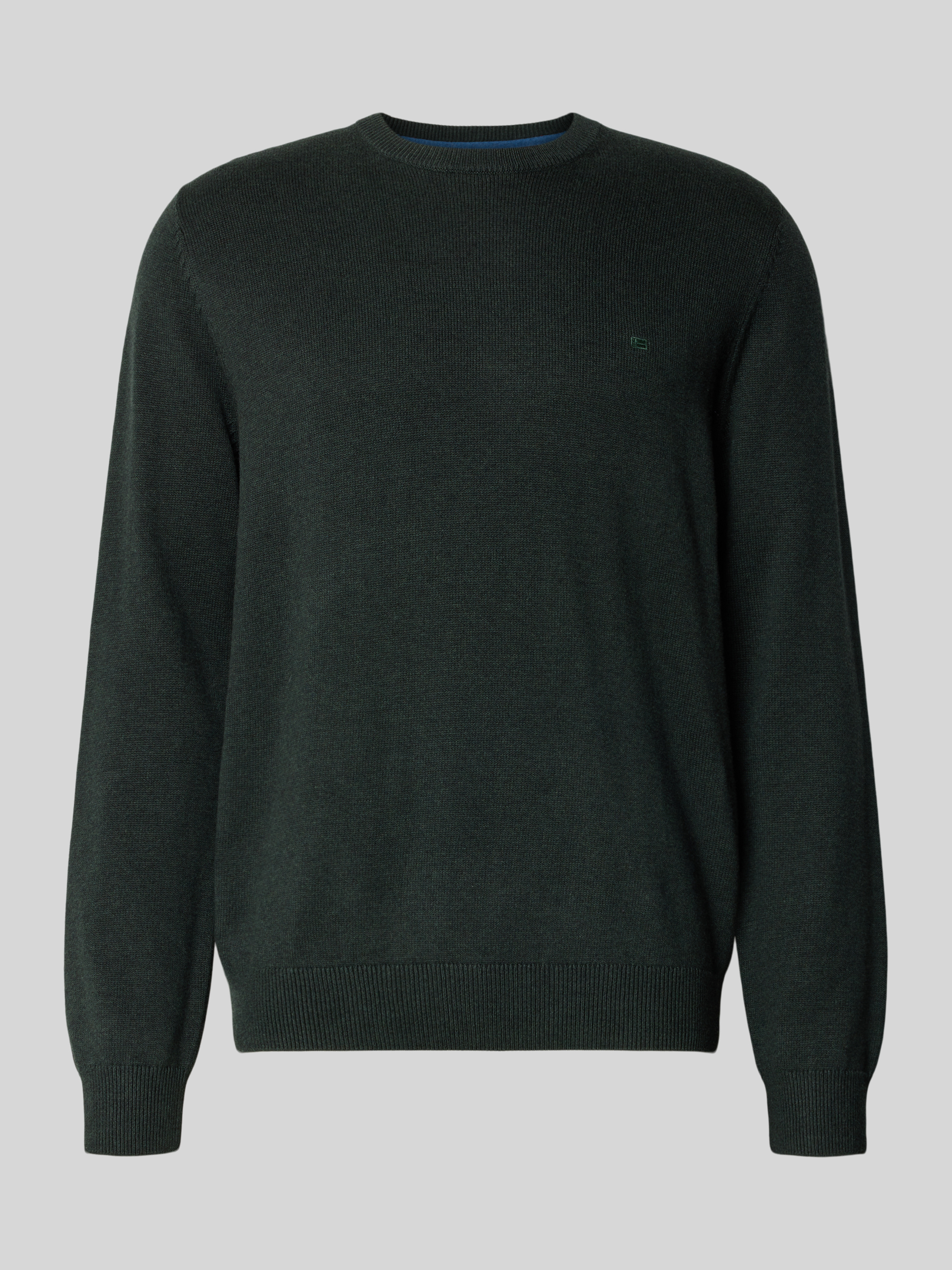 Christian Berg MenGebreide pullover met ribboorden in donkergroen gemêleerd