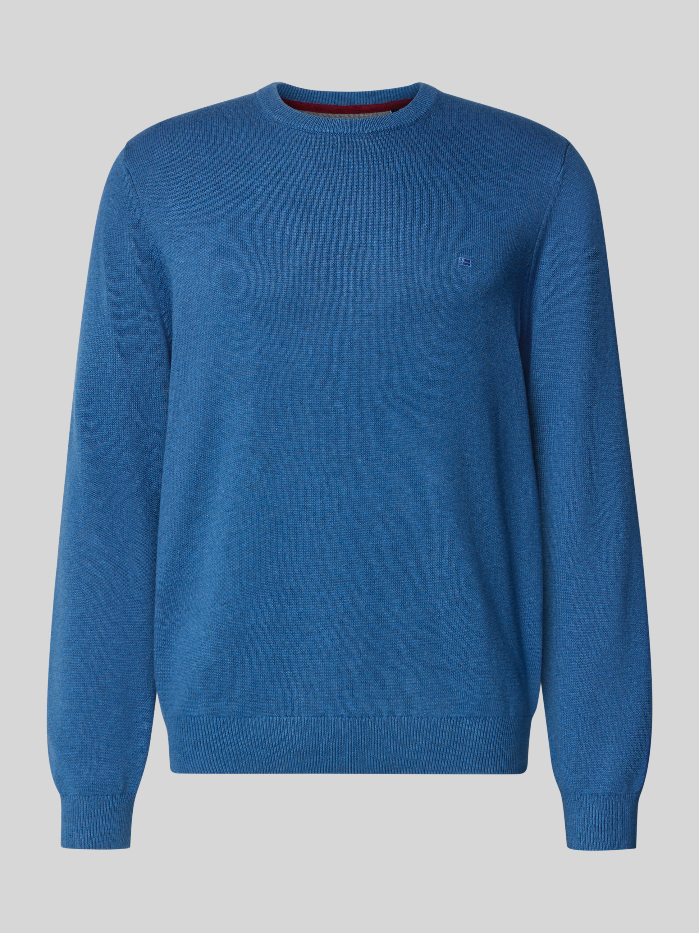 Christian Berg MenGebreide pullover met ribboorden in jeansblauw gemêleerd
