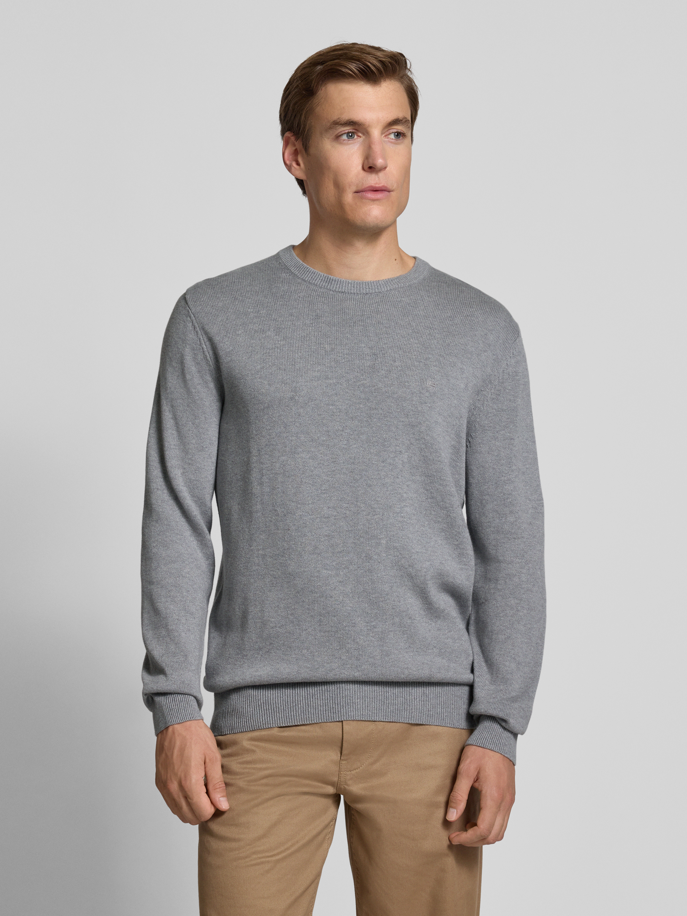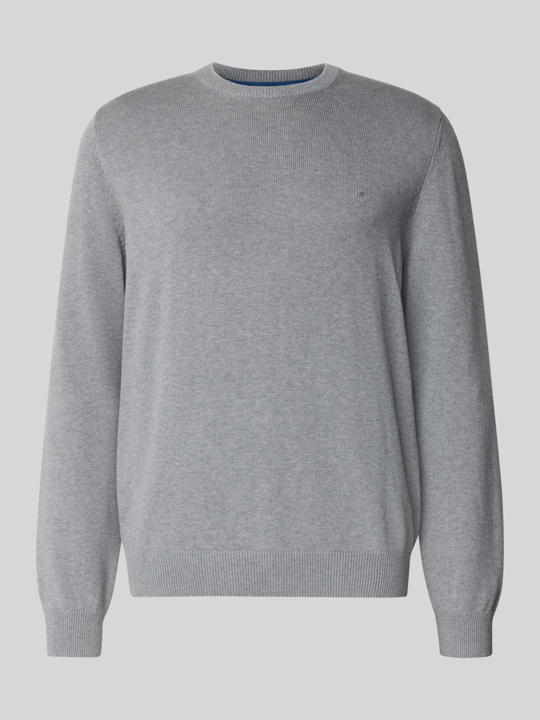 Christian Berg MenGebreide pullover met ribboorden in lichtgrijs gemêleerd