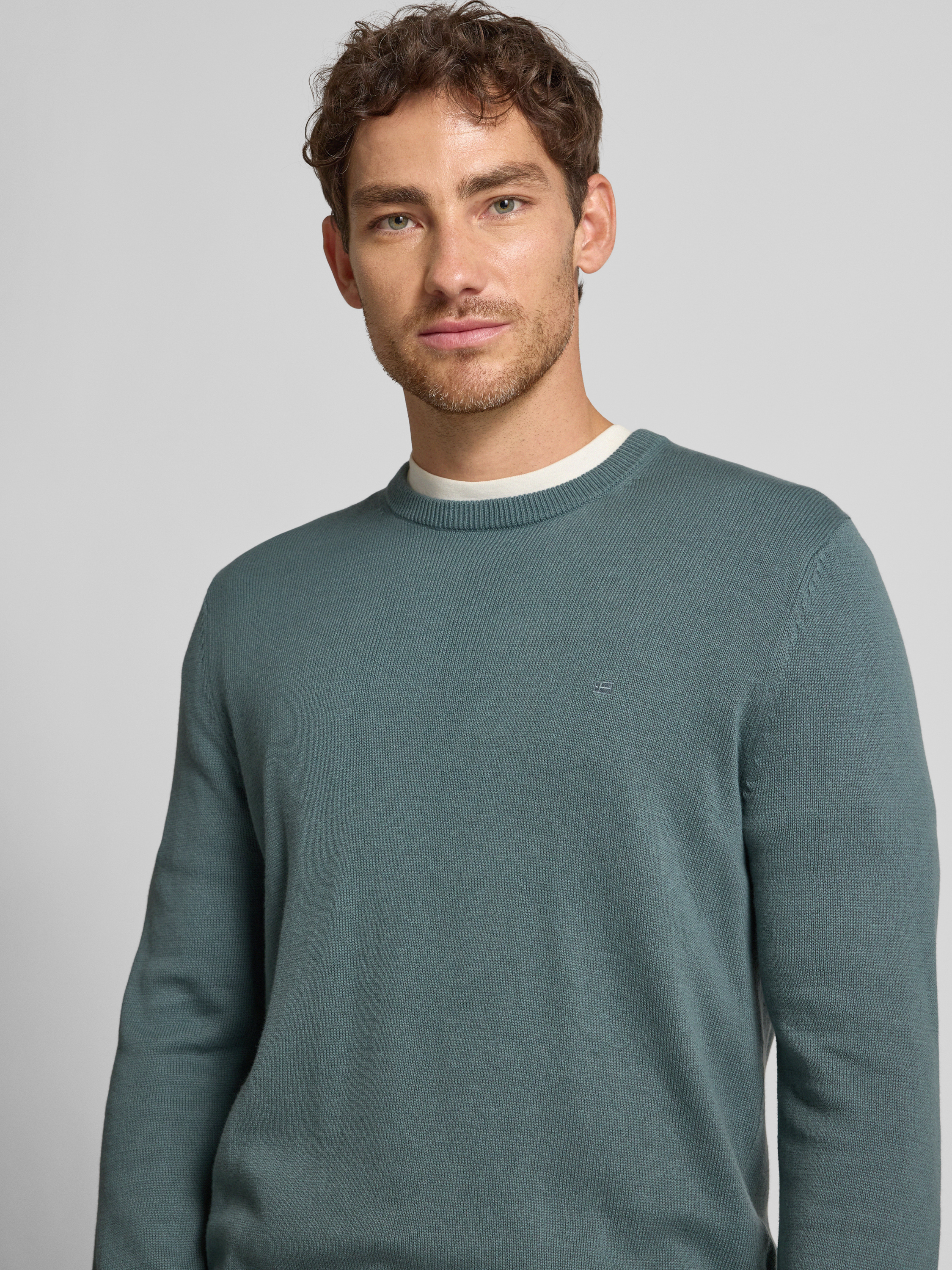 Christian Berg MenGebreide pullover met ribboorden in metallic turquoise