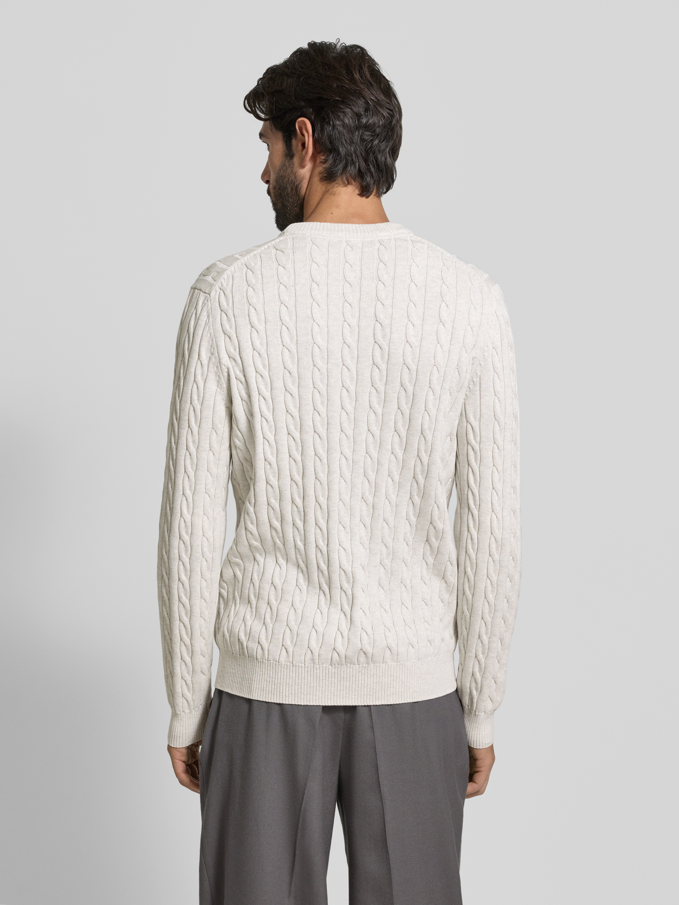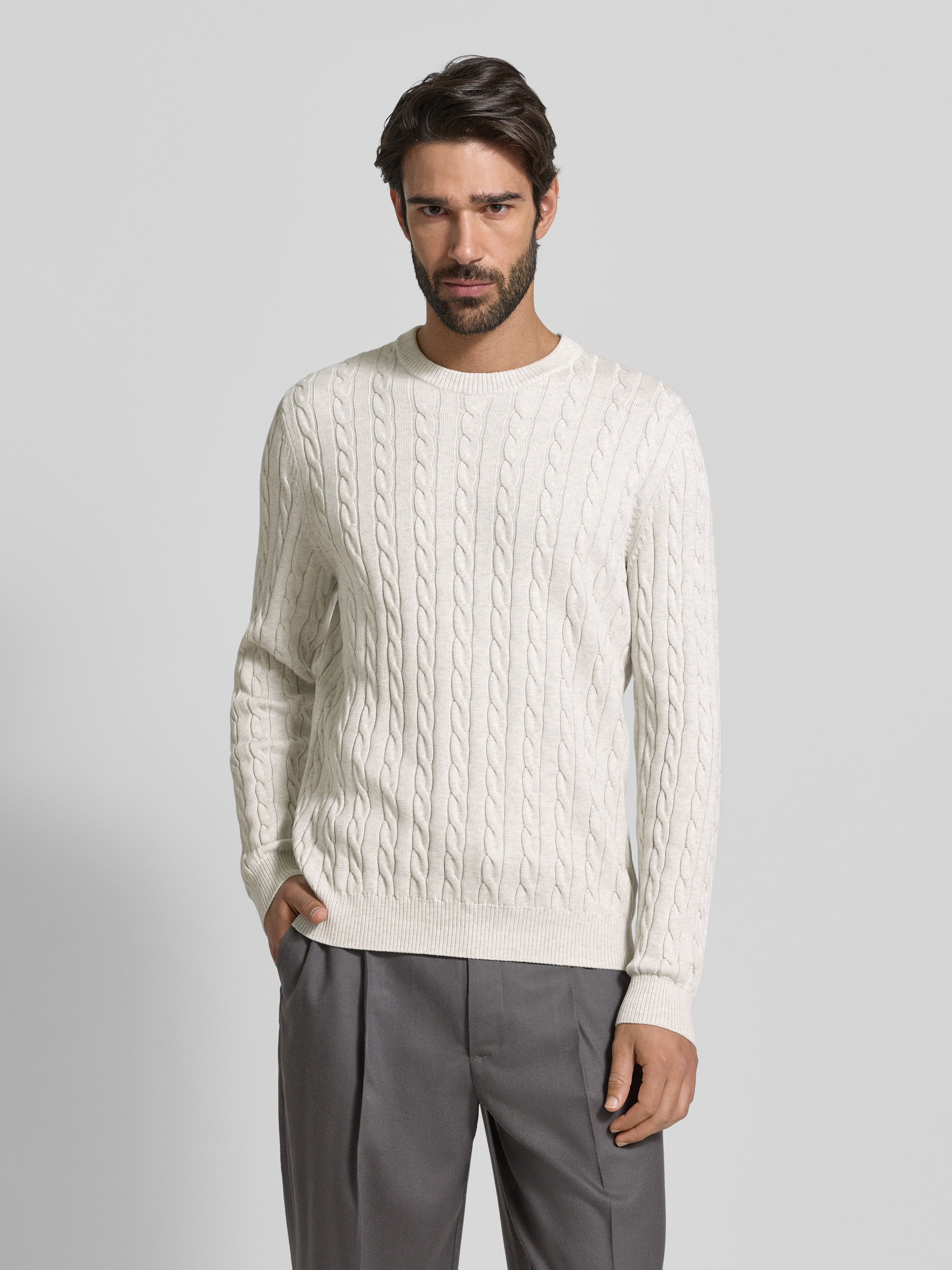 Christian Berg MenGebreide pullover met ribboorden in offwhite