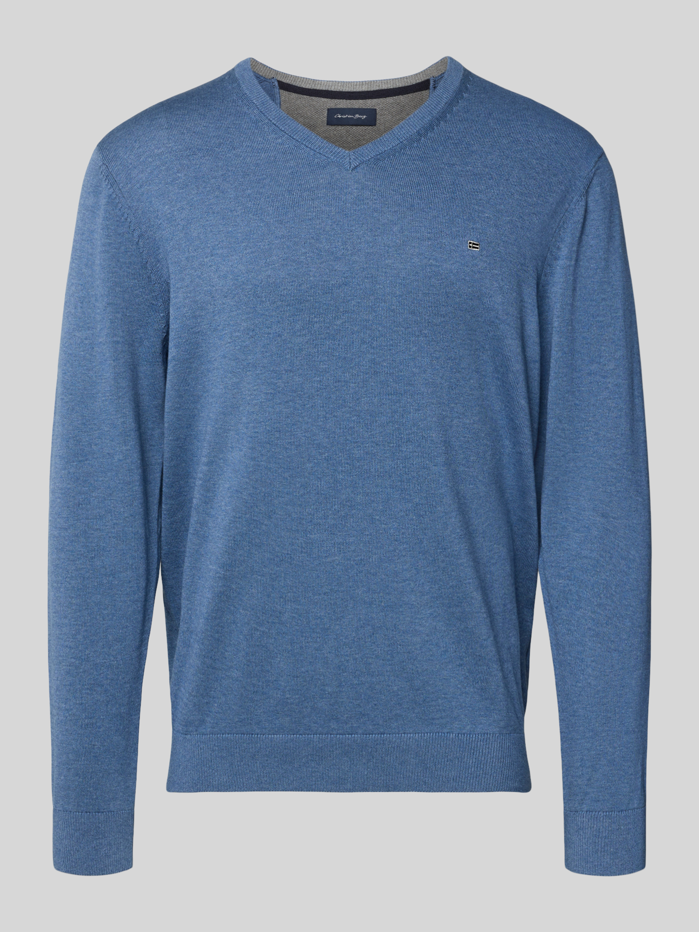 Christian Berg MenGebreide pullover met V-hals in jeansblauw gemêleerd