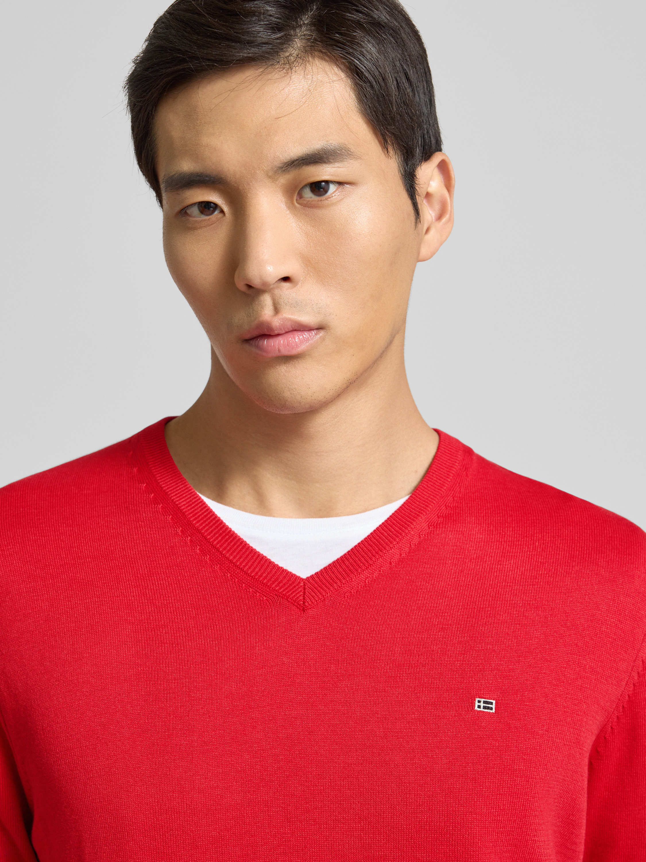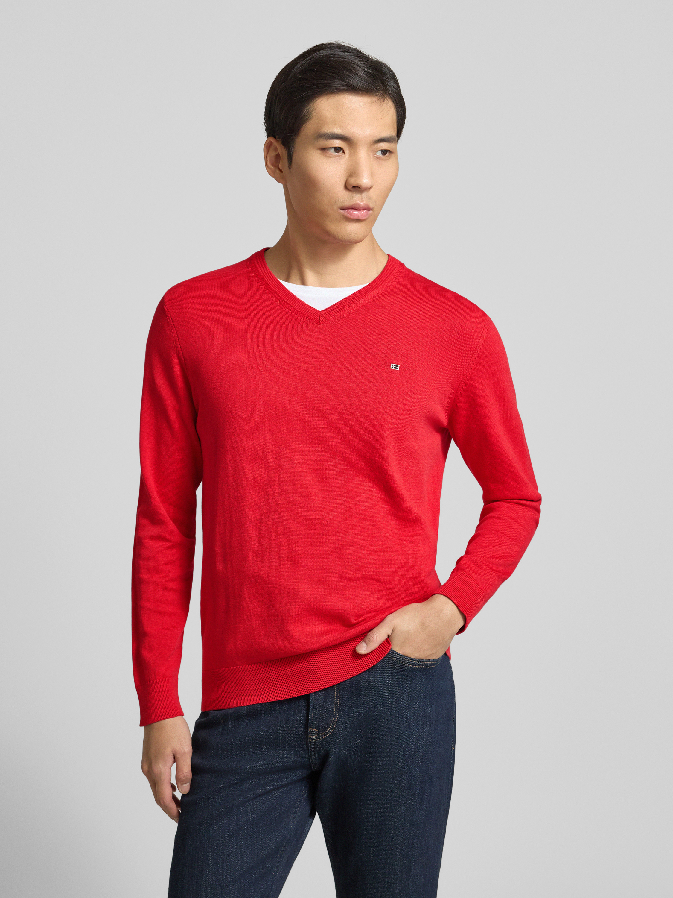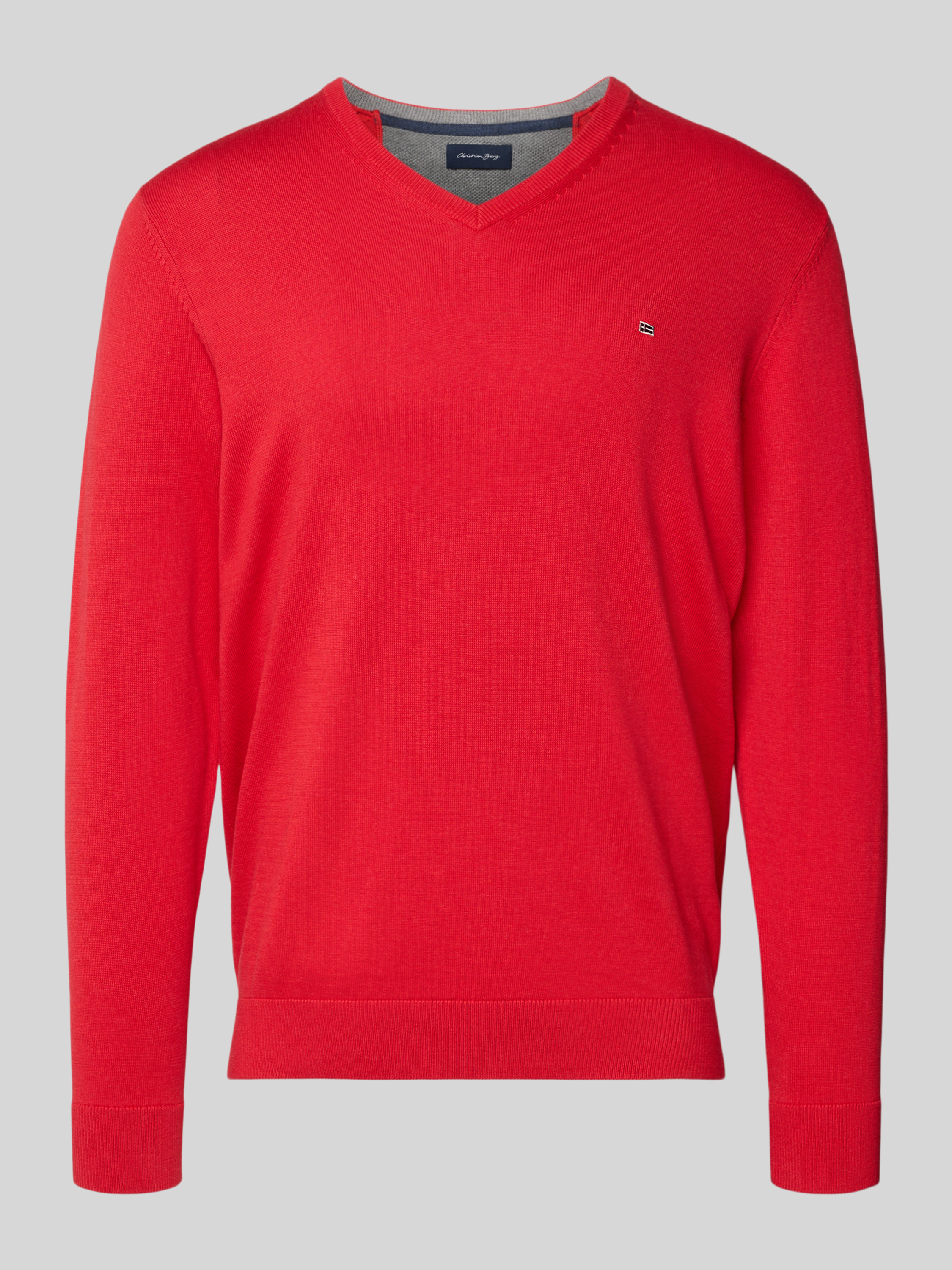 • Christian Berg Men Gebreide pullover met V-hals Rood