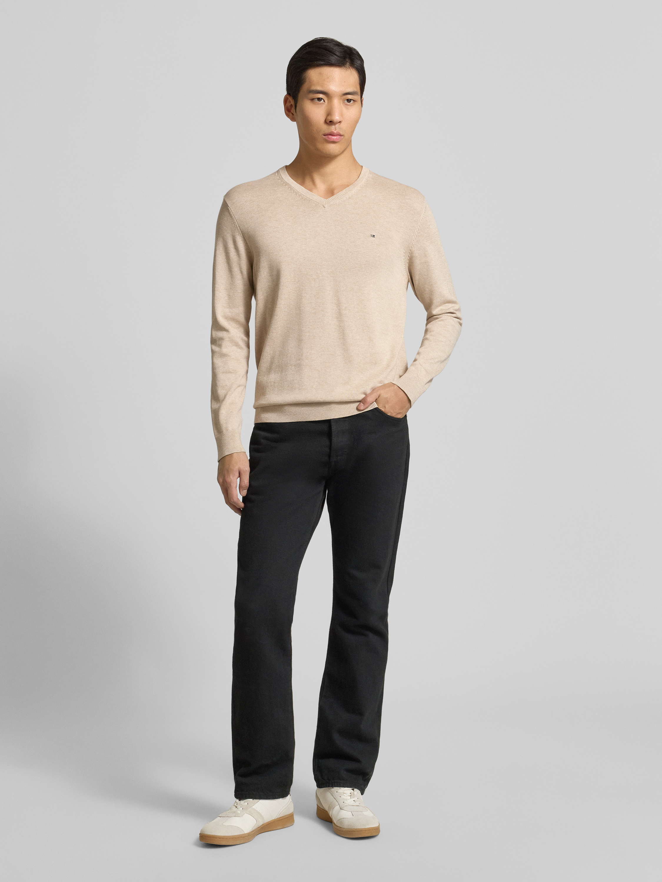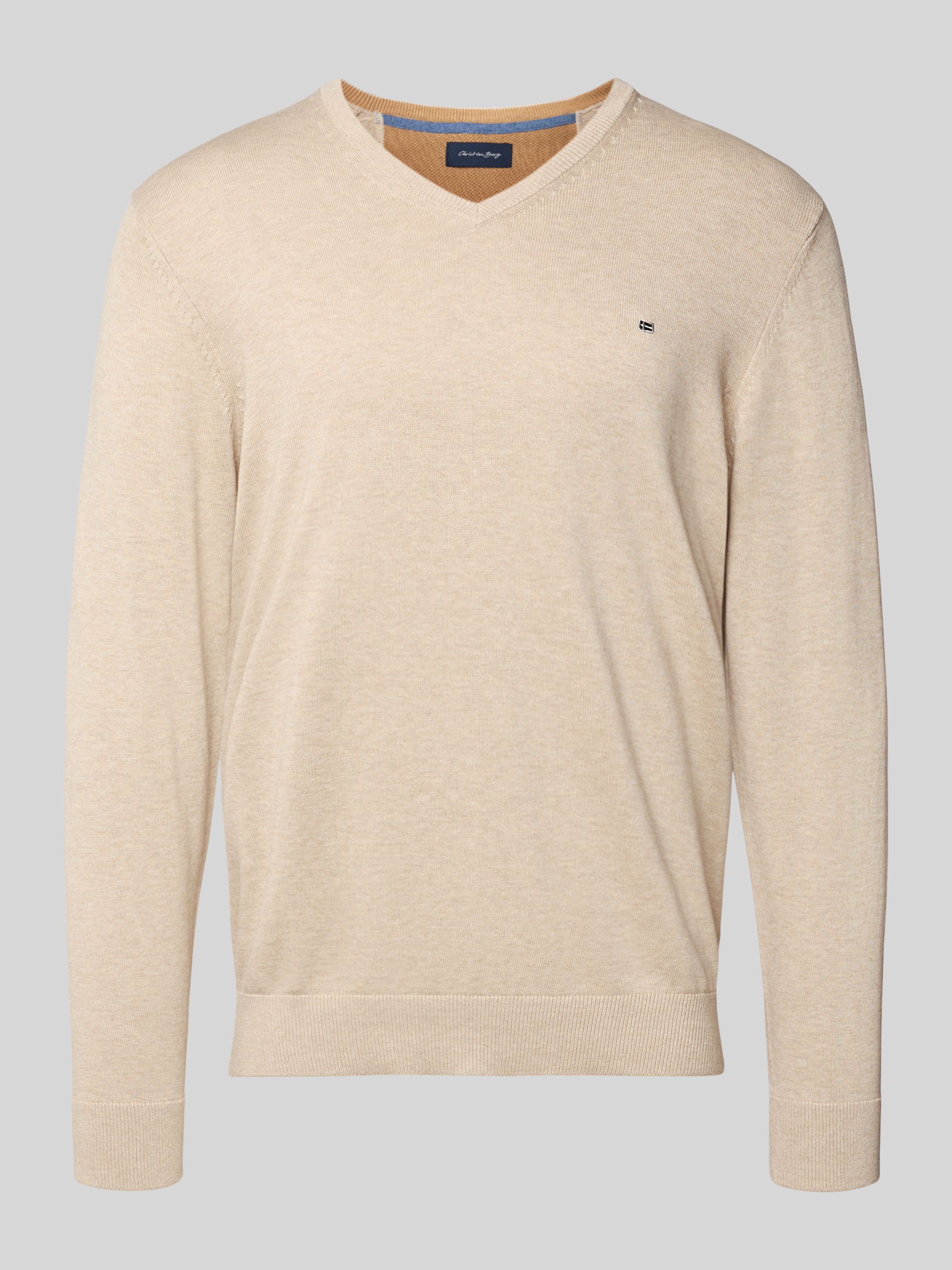 • Christian Berg Men Gebreide pullover met V-hals Zand gemêleerd