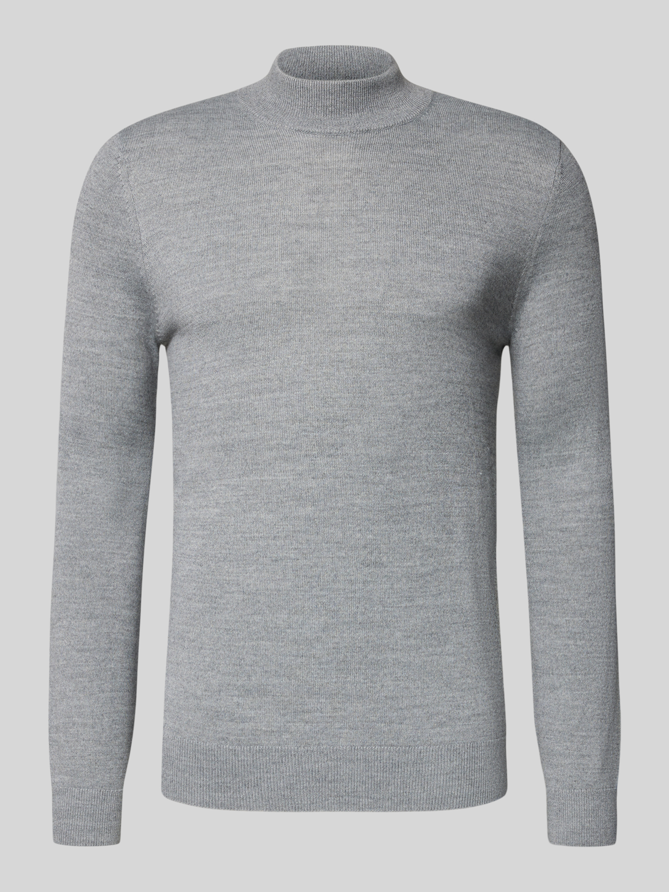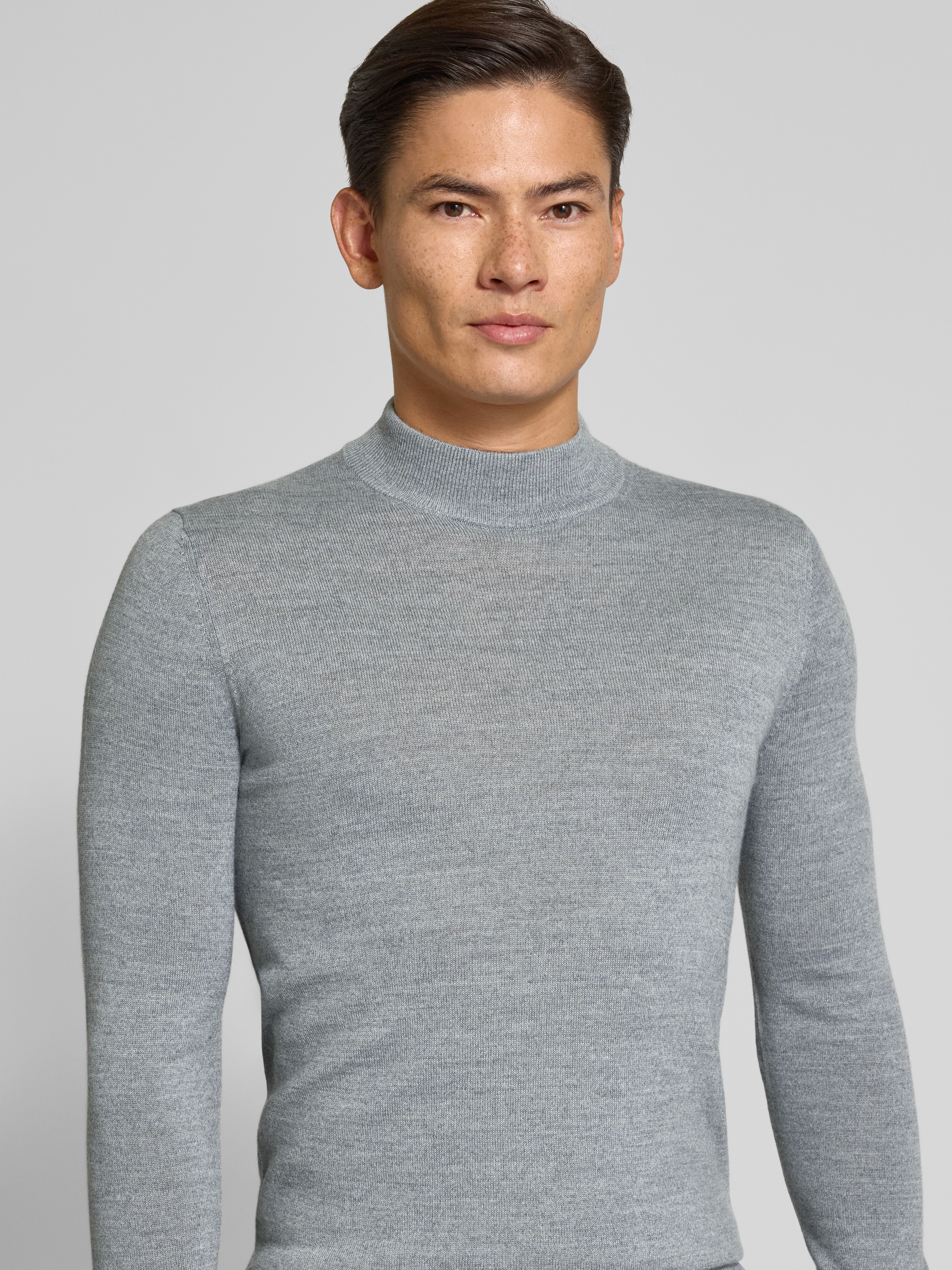 Christian Berg MenGebreide pullover van een mix van merinowol met opstaande kraag in lichtgrijs gemêleerd