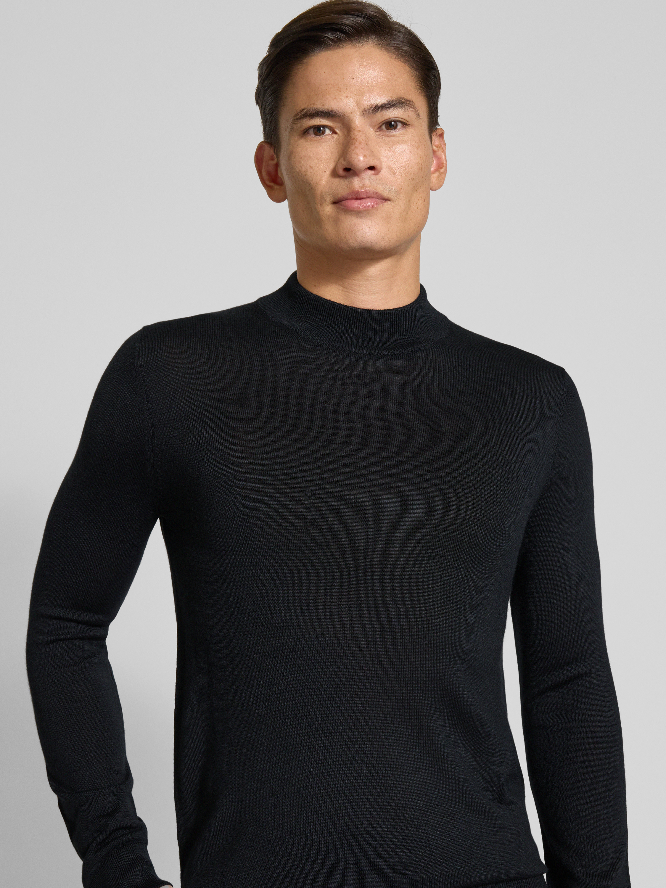 Christian Berg MenGebreide pullover van een mix van merinowol met opstaande kraag in zwart