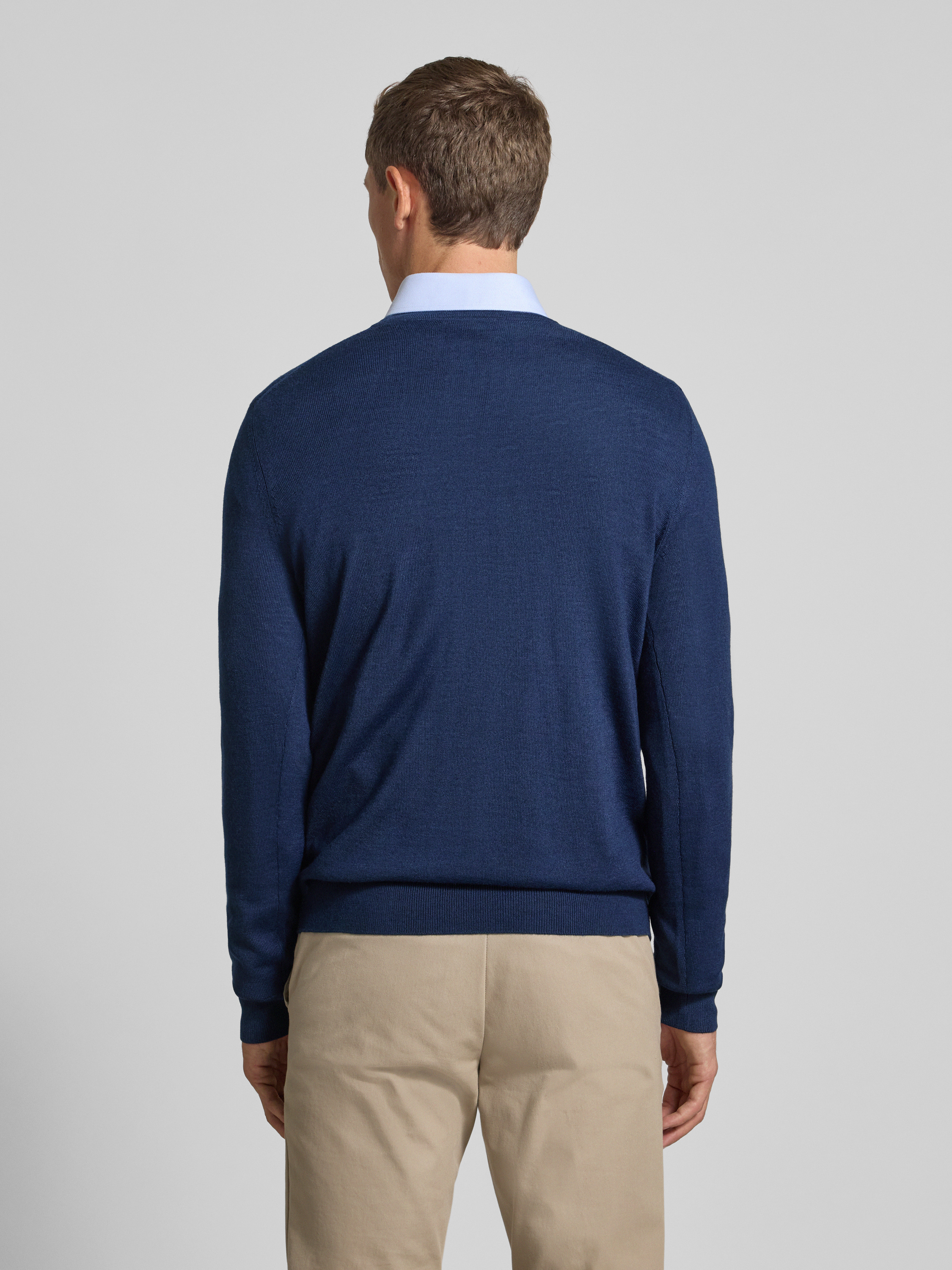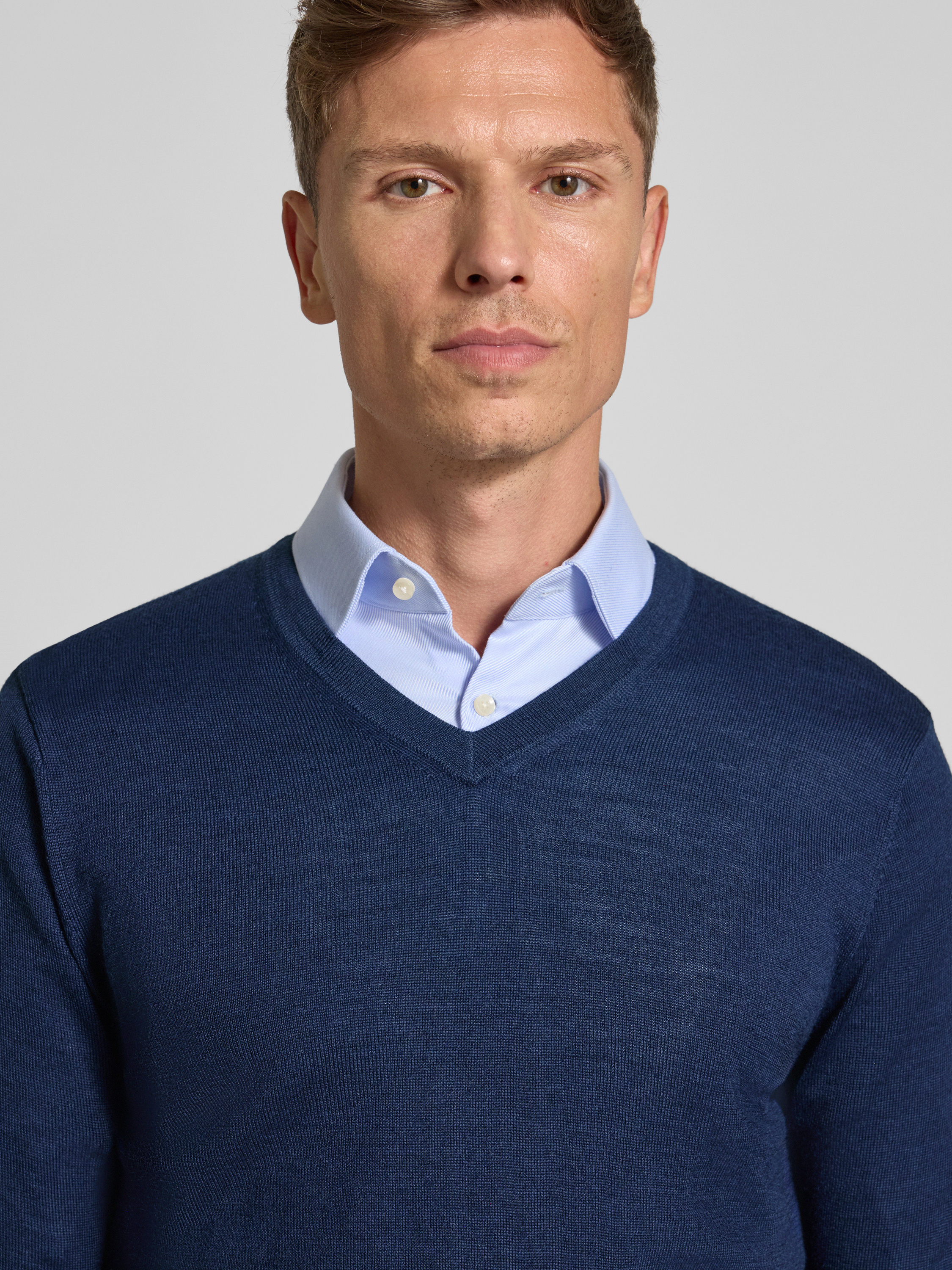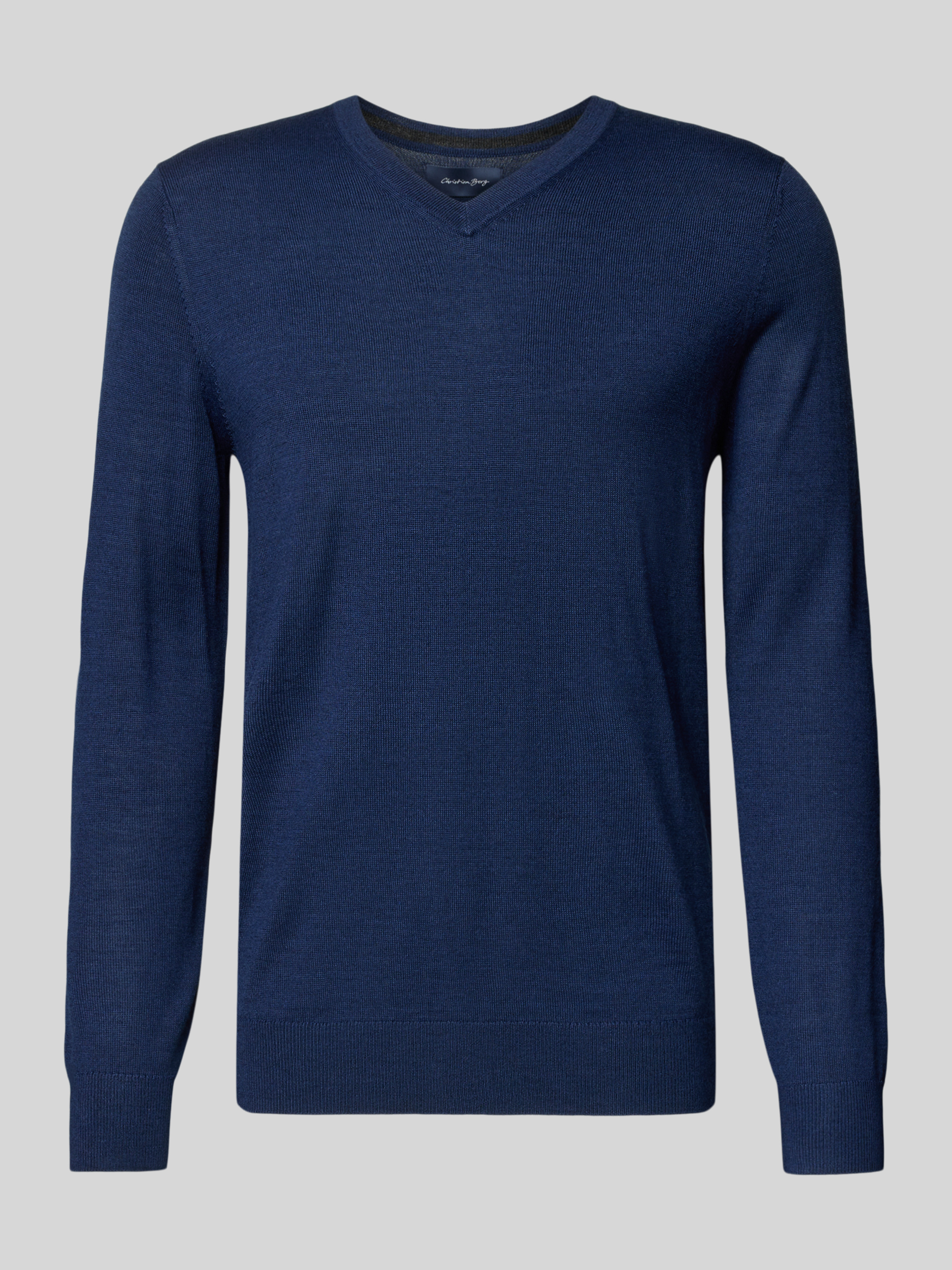 Christian Berg MenGebreide pullover van een mix van merinowol met V-hals in donkerblauw gemêleerd