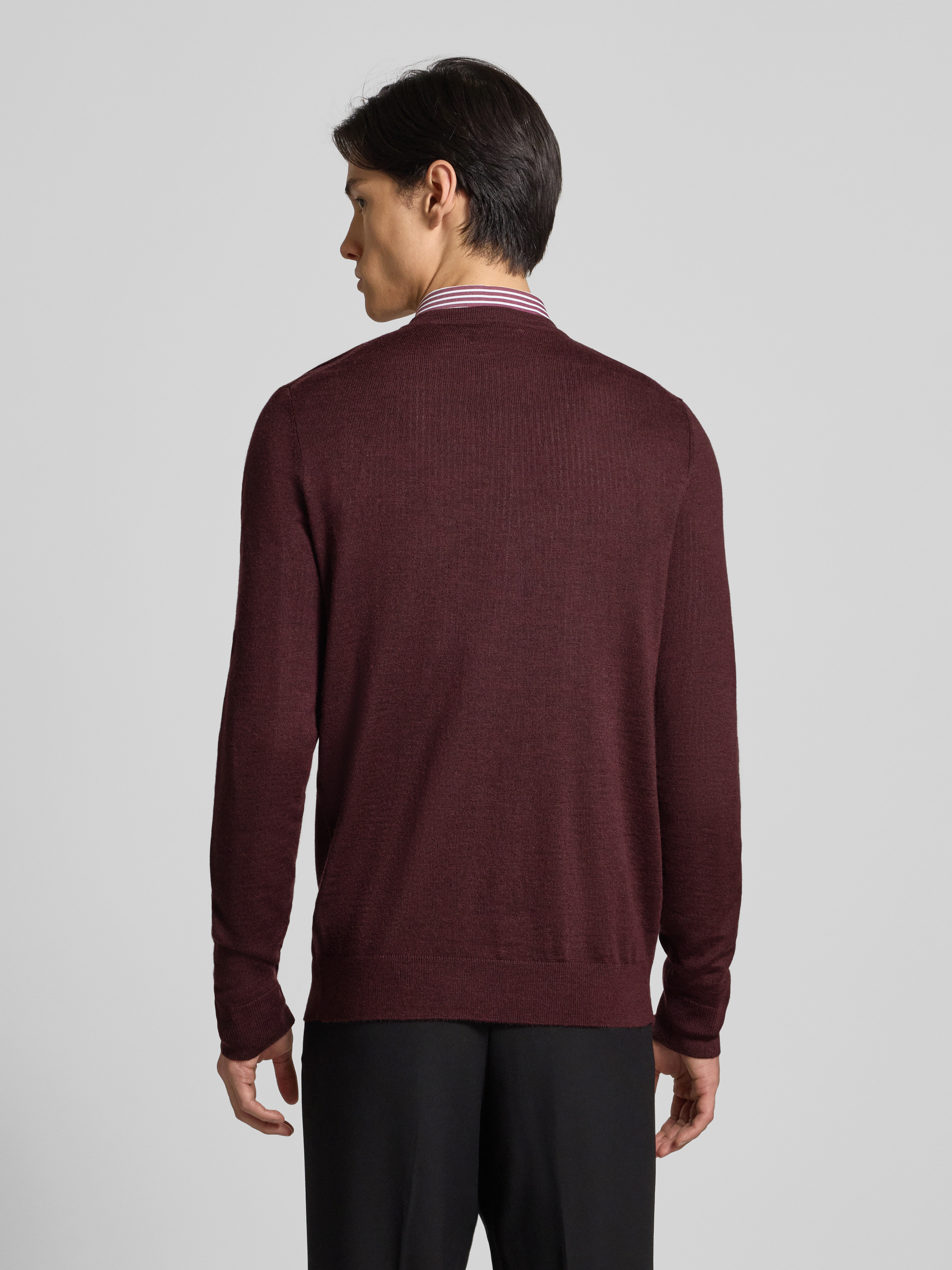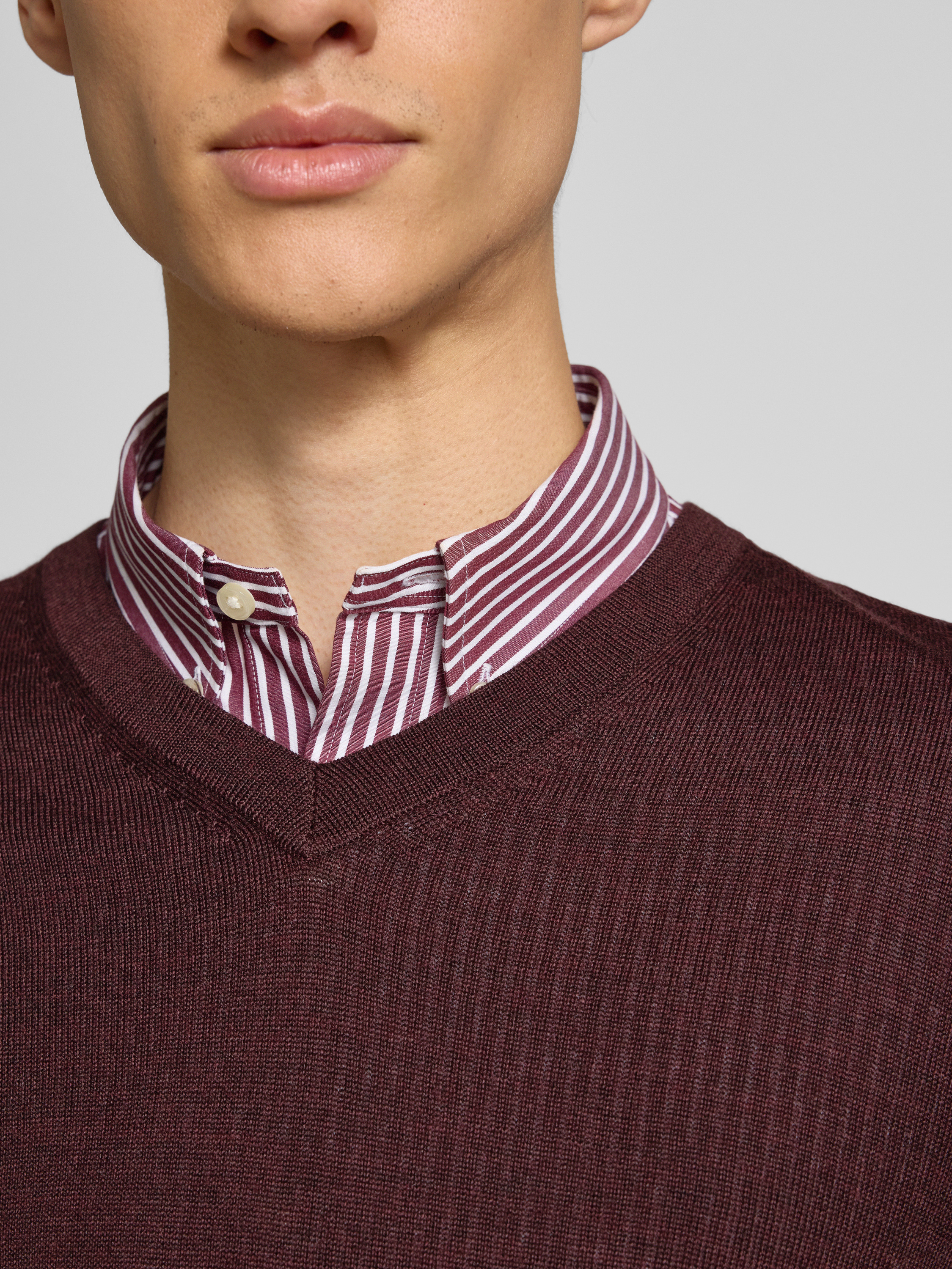 Christian Berg MenGebreide pullover van een mix van merinowol met V-hals in donkerrood gemêleerd
