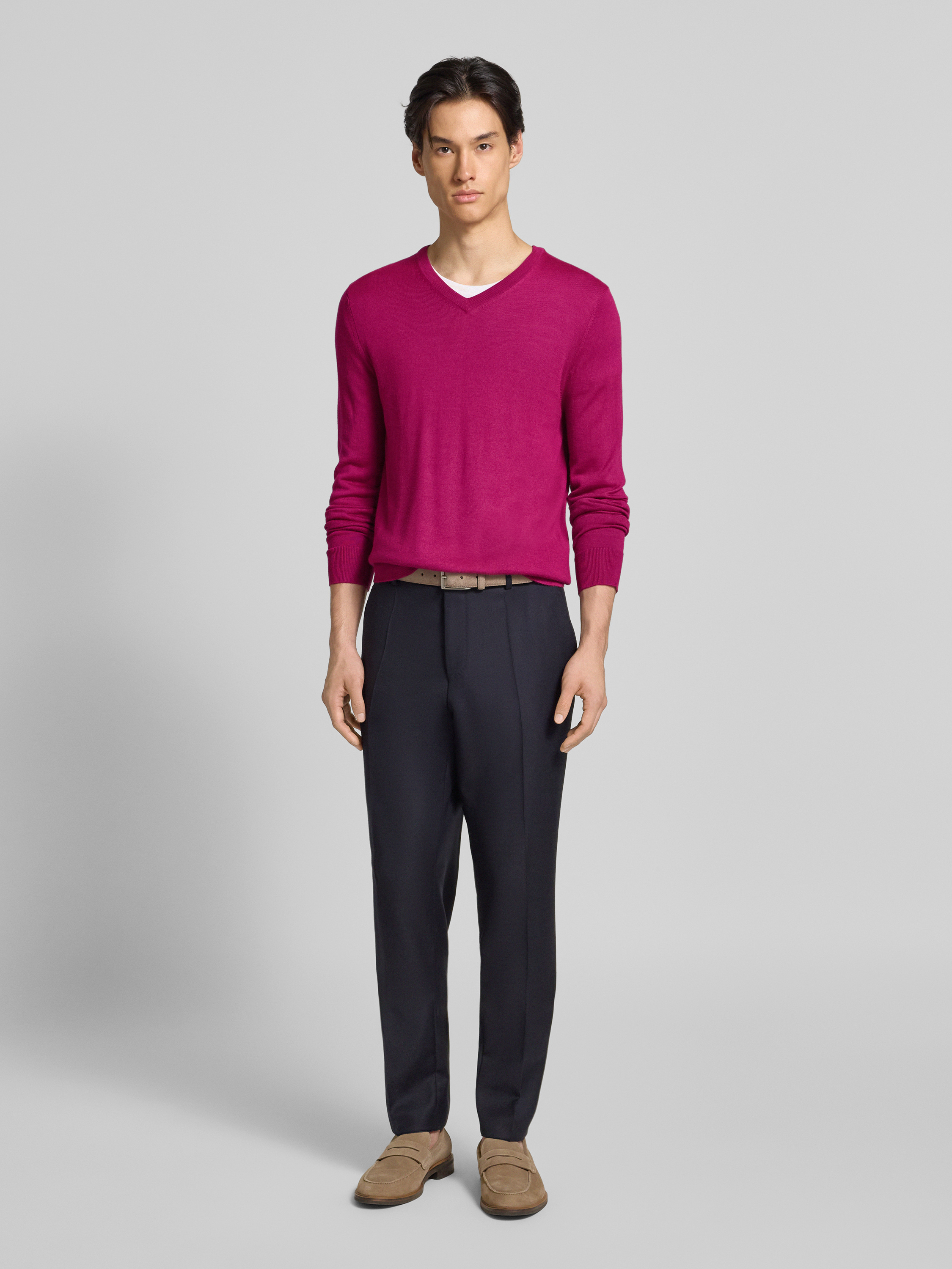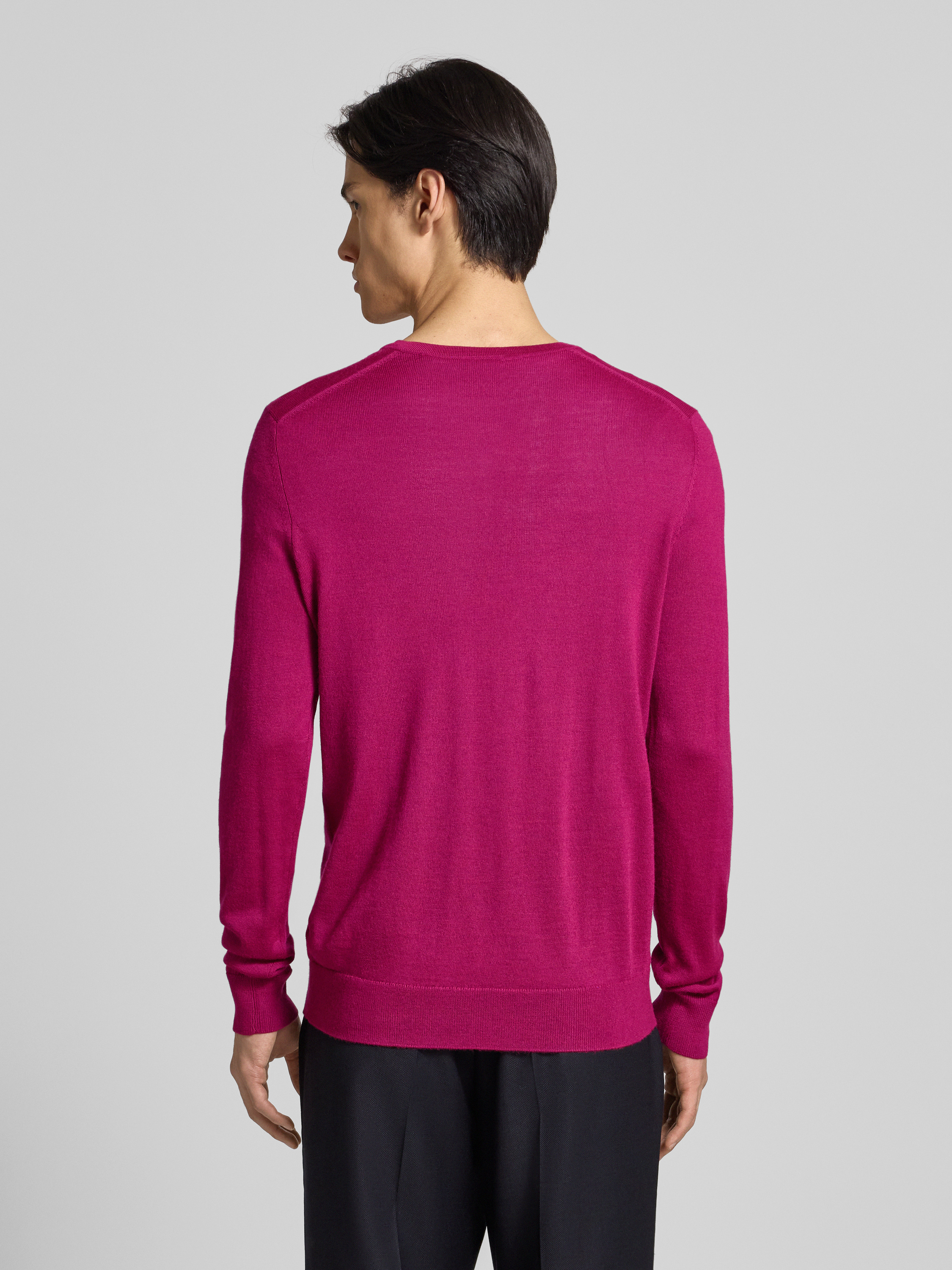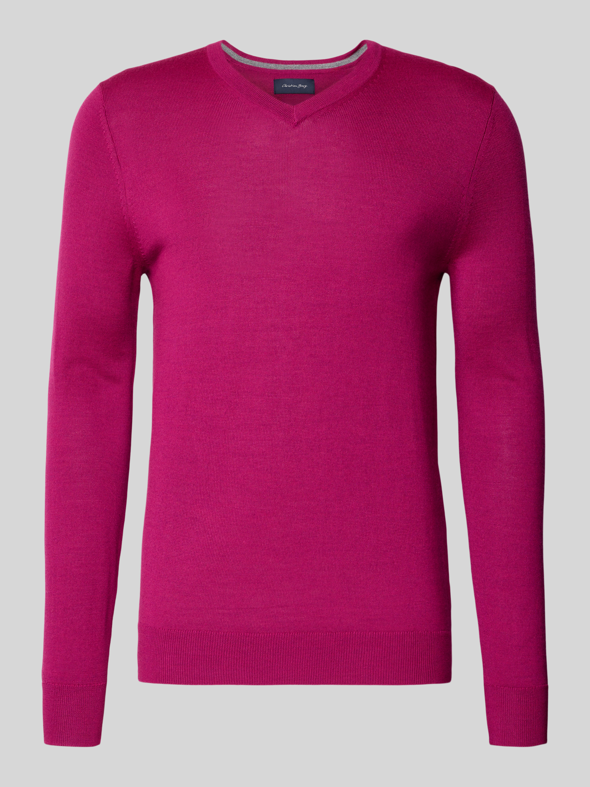 Christian Berg MenGebreide pullover van een mix van merinowol met V-hals in felroze gemêleerd