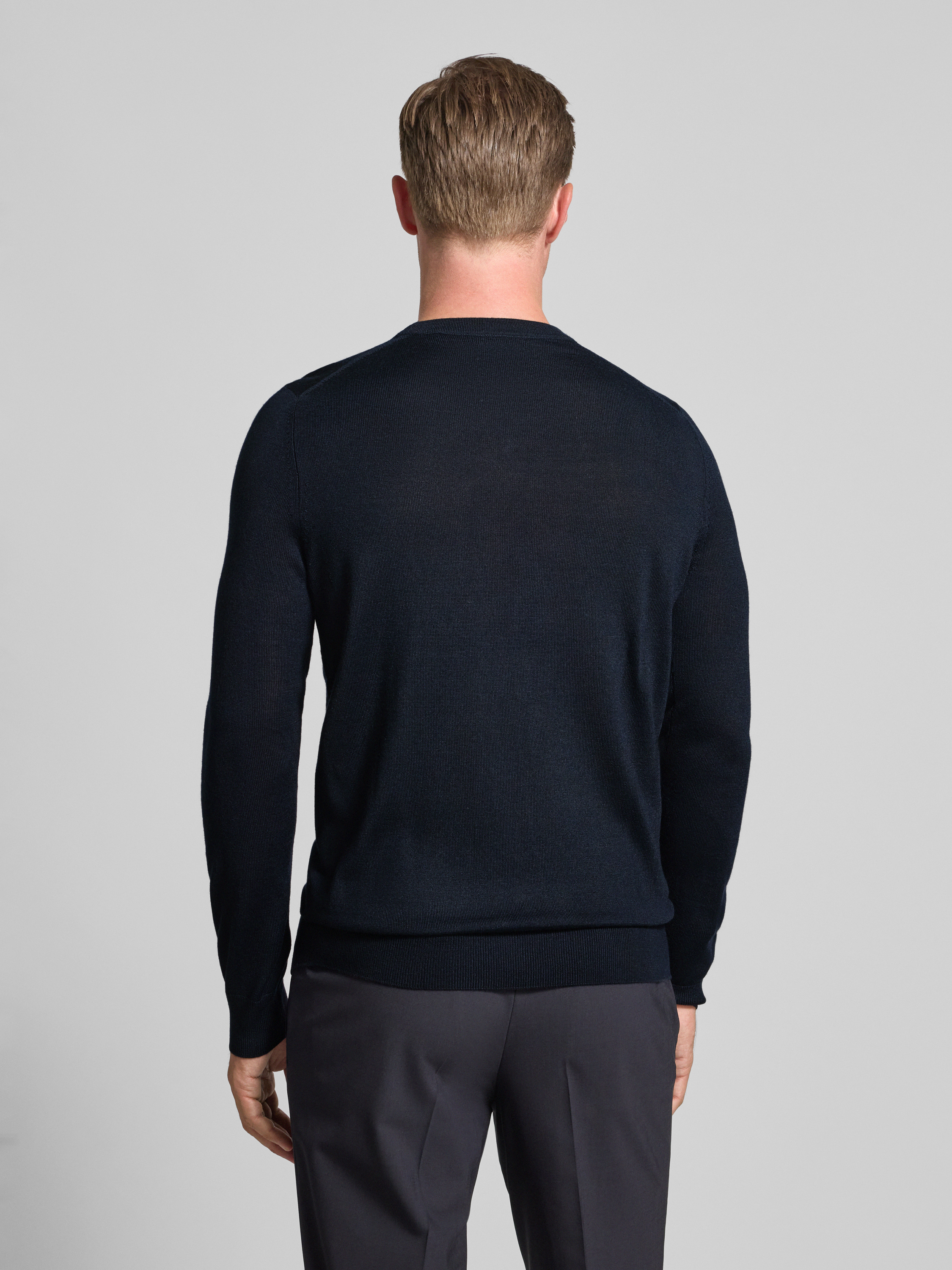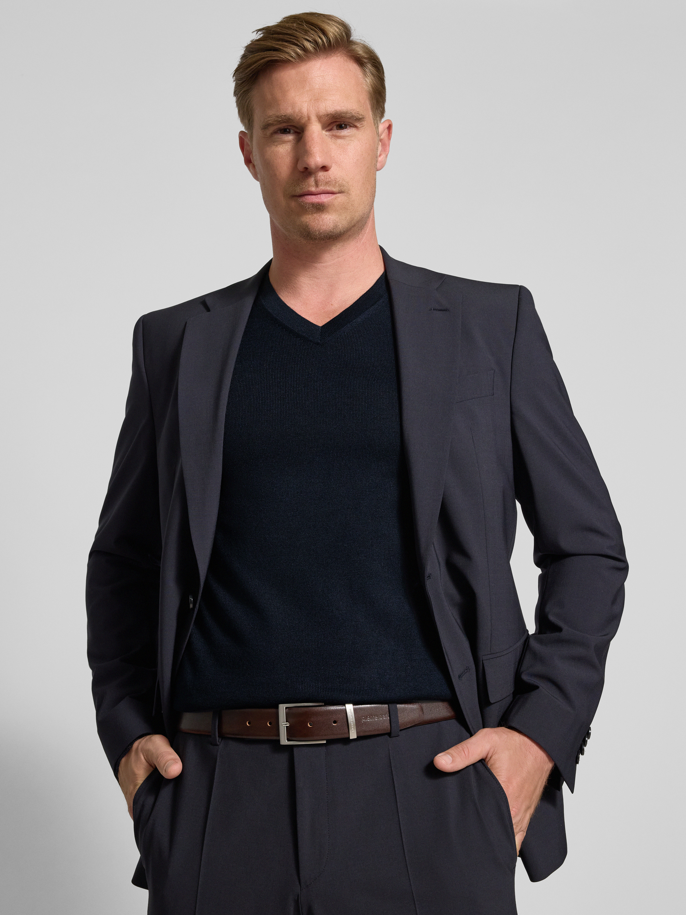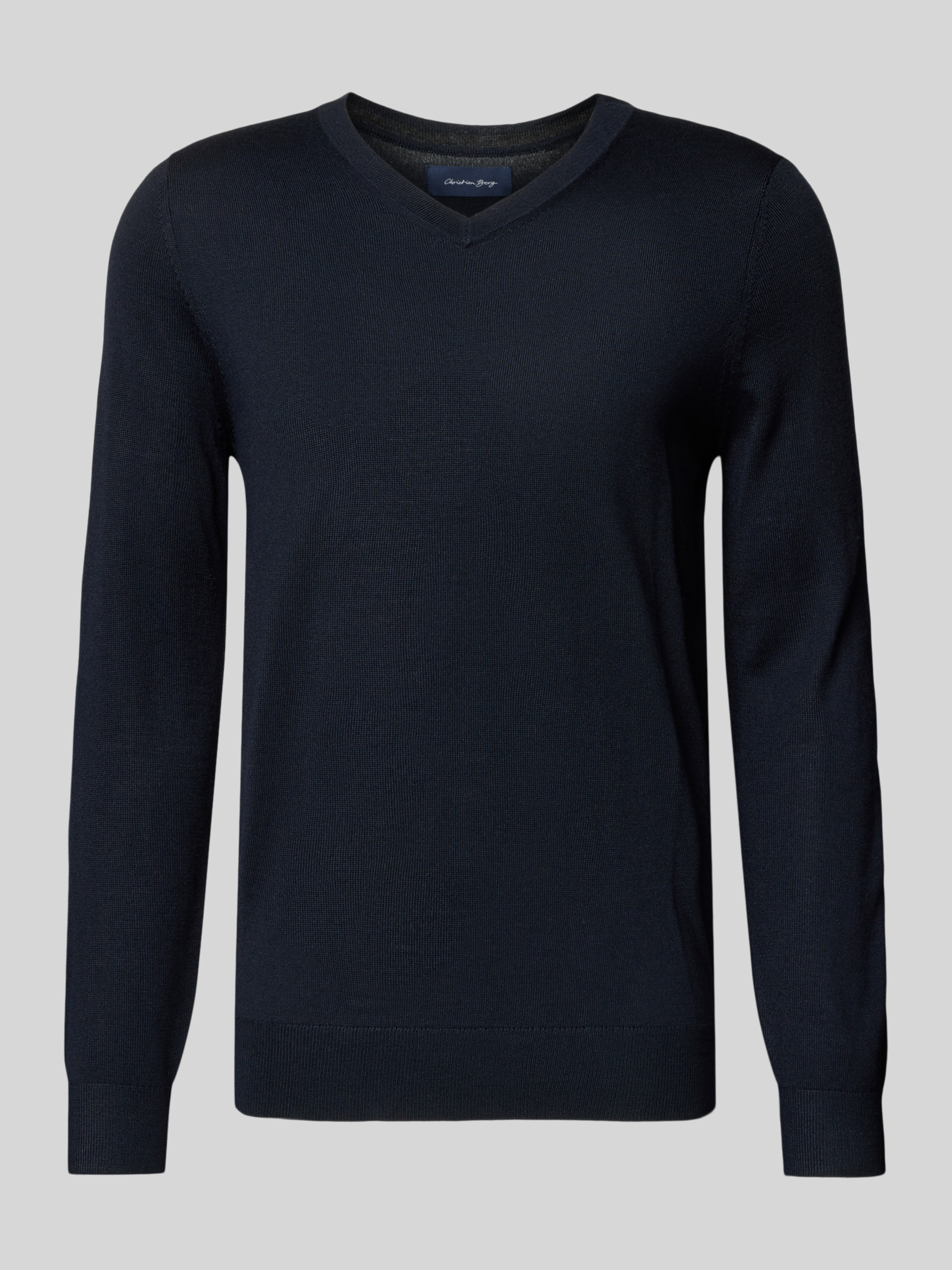 Christian Berg MenGebreide pullover van een mix van merinowol met V-hals in marineblauw