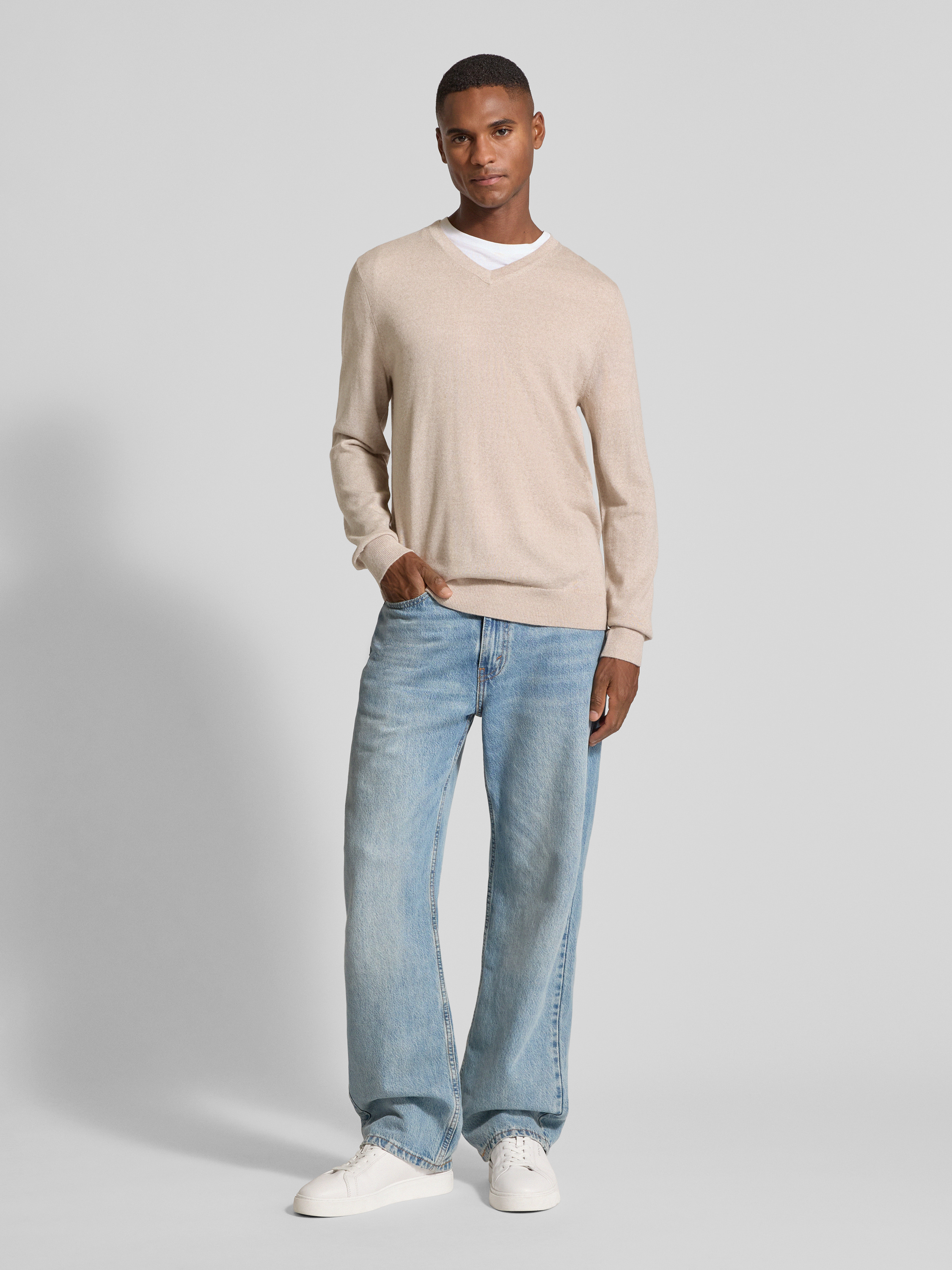 Christian Berg MenGebreide pullover van een mix van merinowol met V-hals in zand gemêleerd