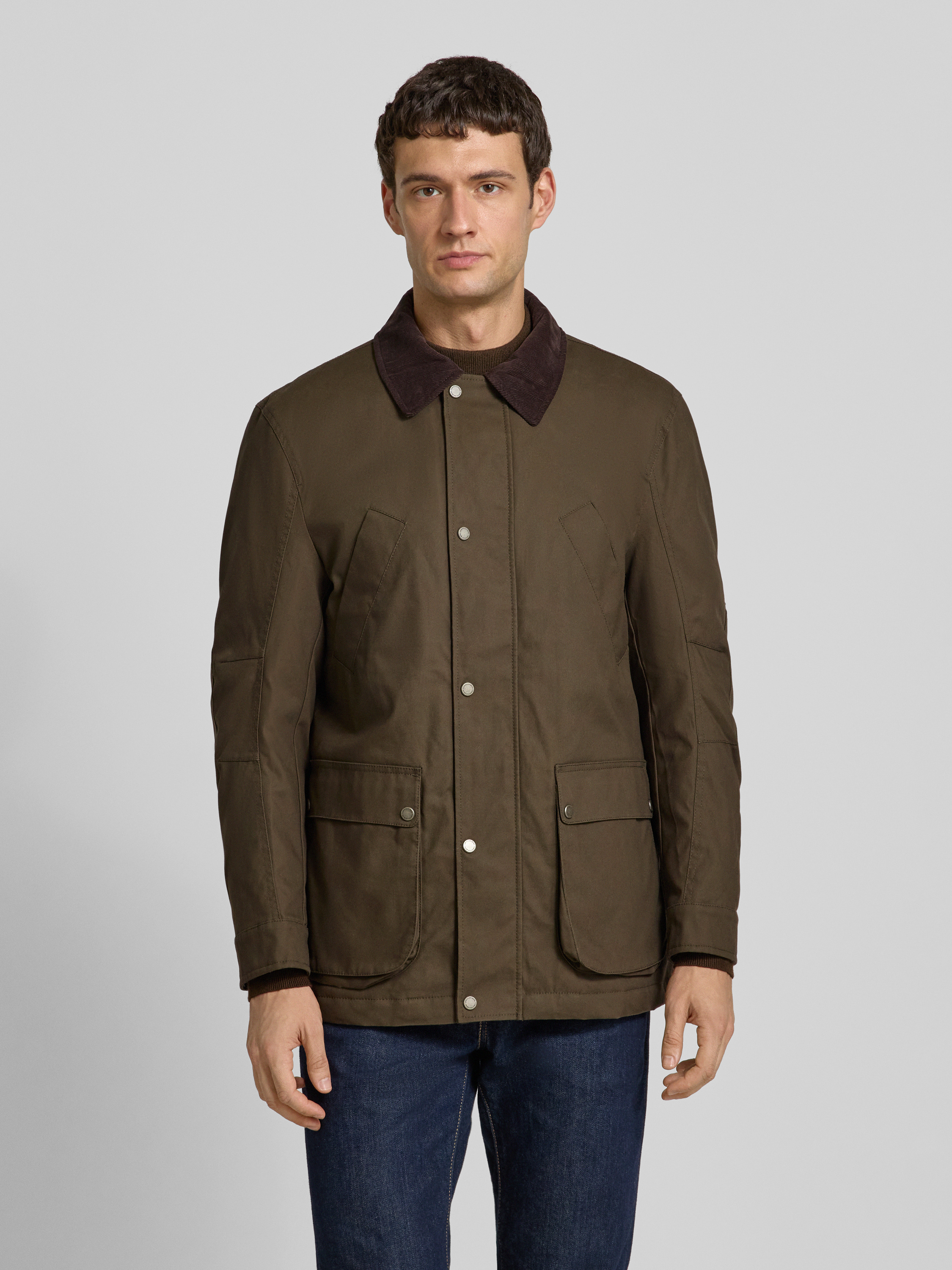 Jas met kentkraag in olijfgroen