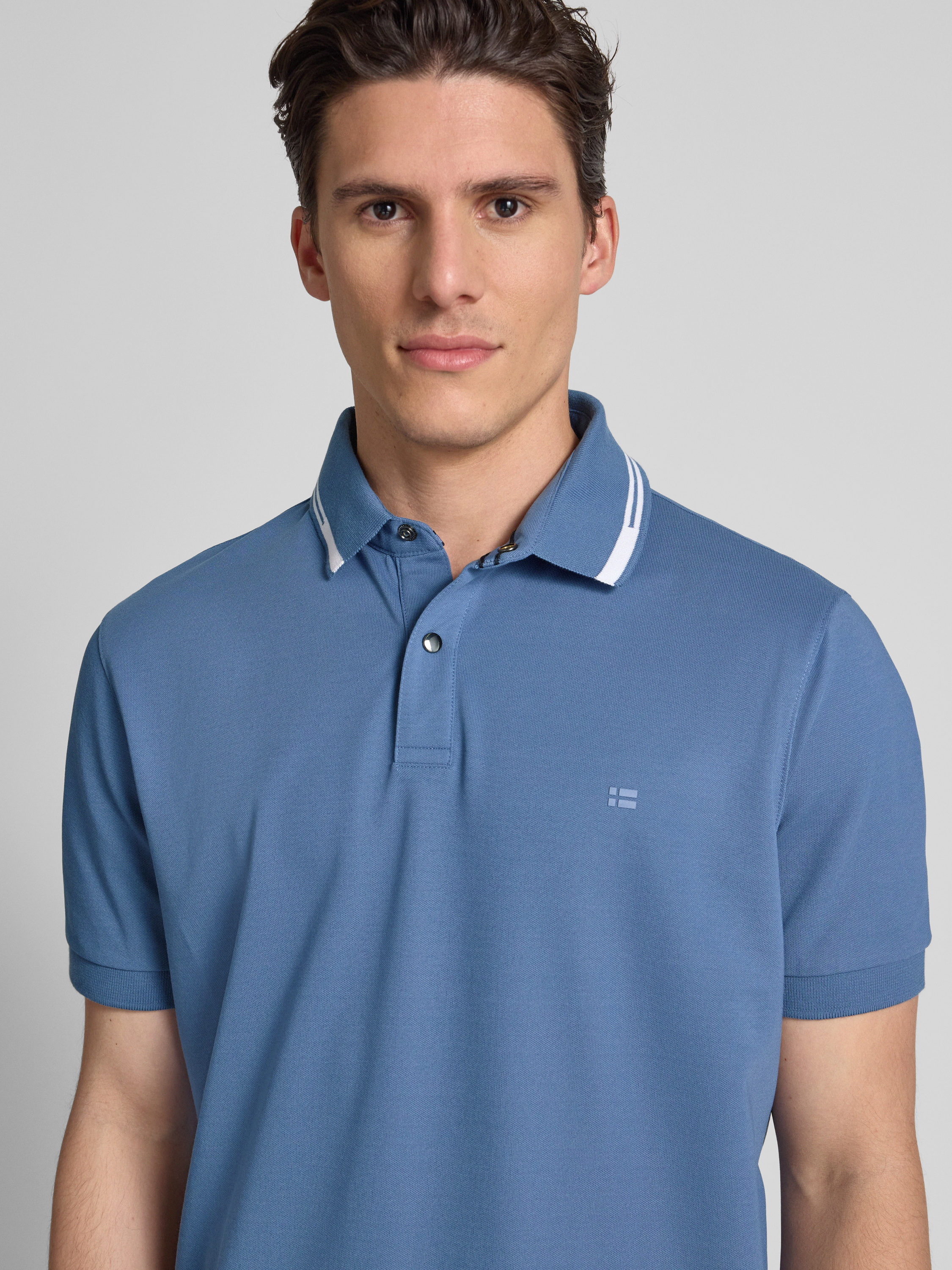 Poloshirt met korte knoopsluiting en logoprint in jeansblauw