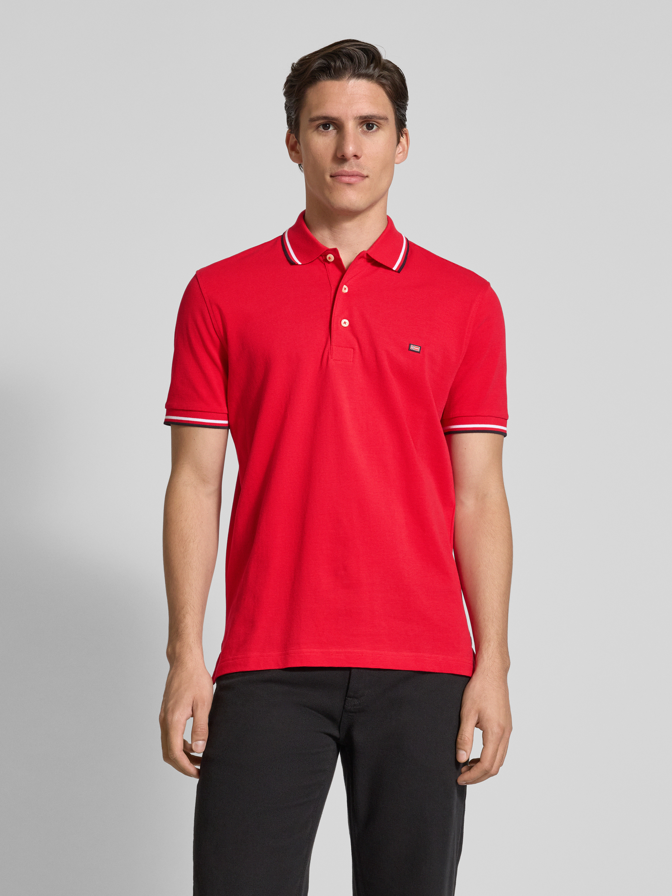 Poloshirt met labelstitching in rood