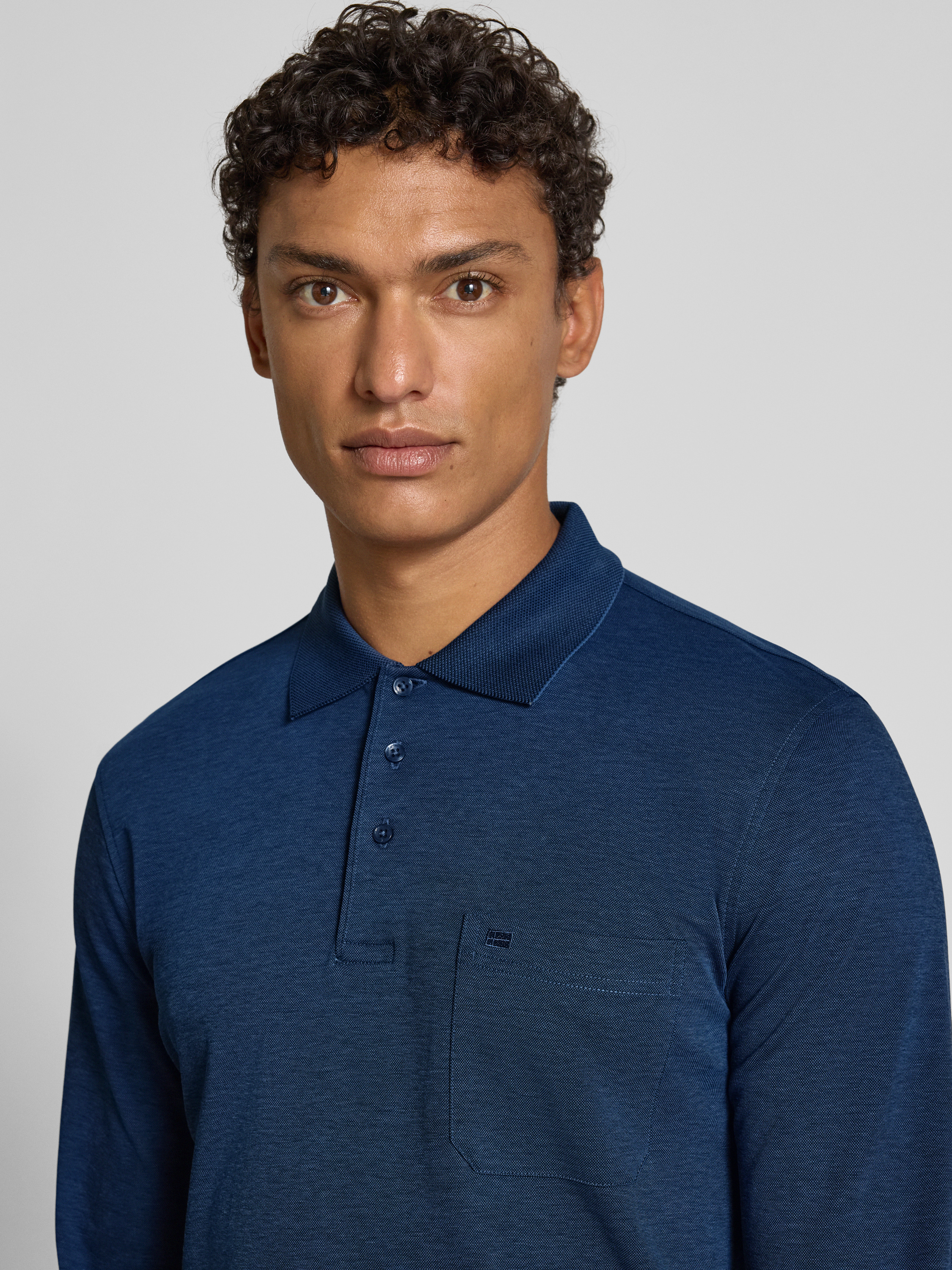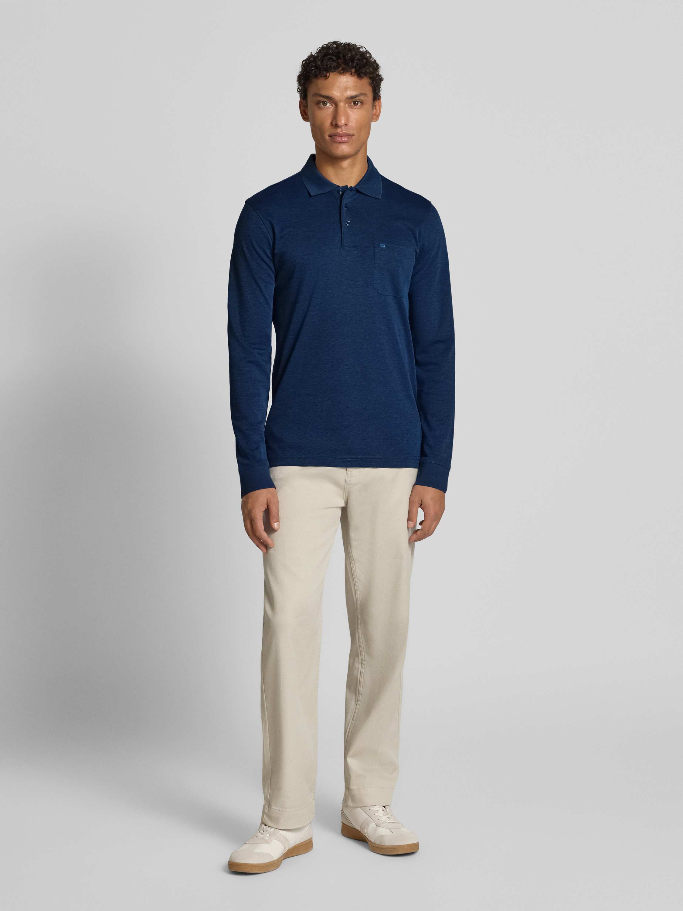 Regular fit poloshirt in design met lange mouwen in donkerblauw