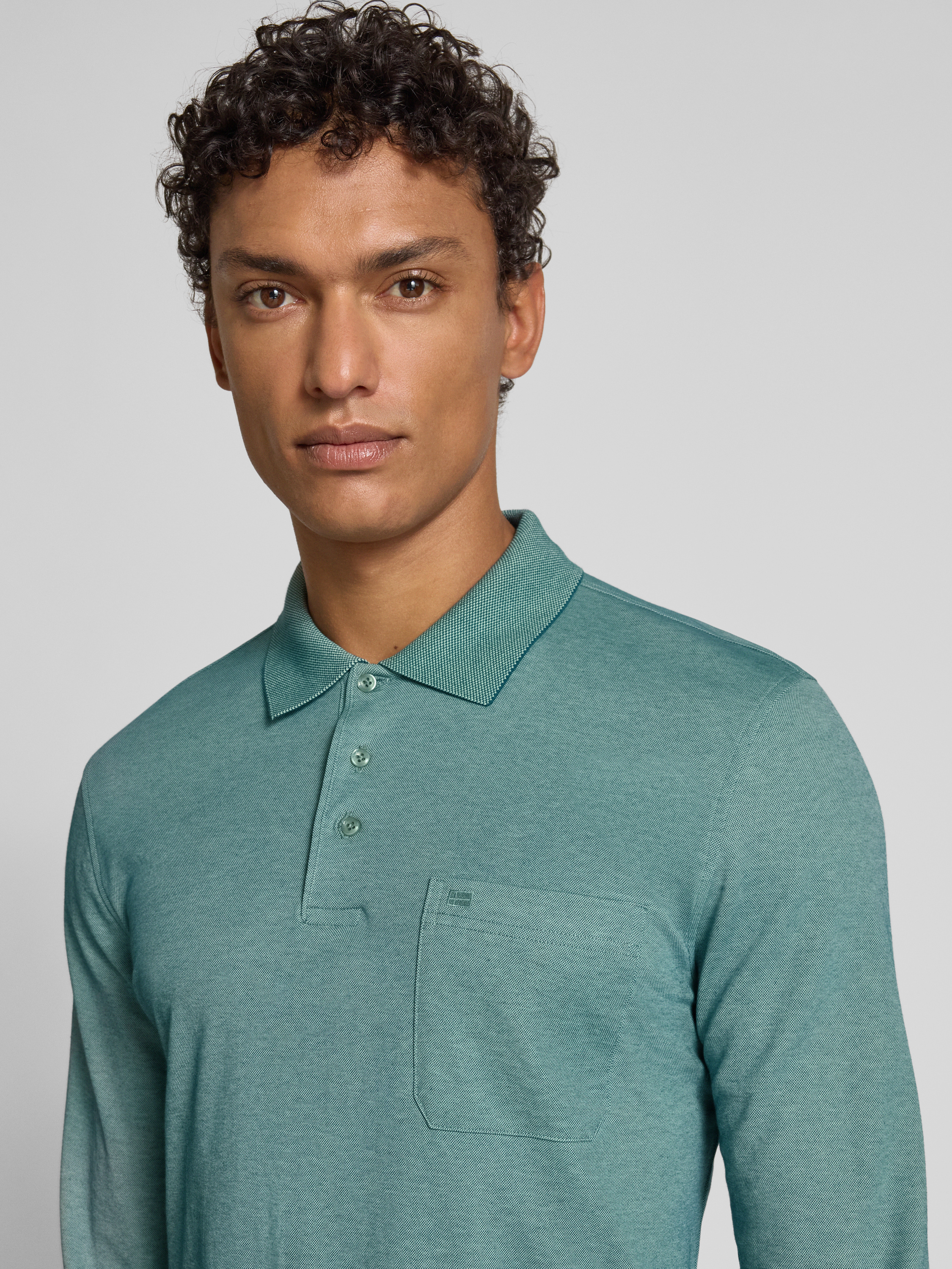 Regular fit poloshirt in design met lange mouwen in grasgroen