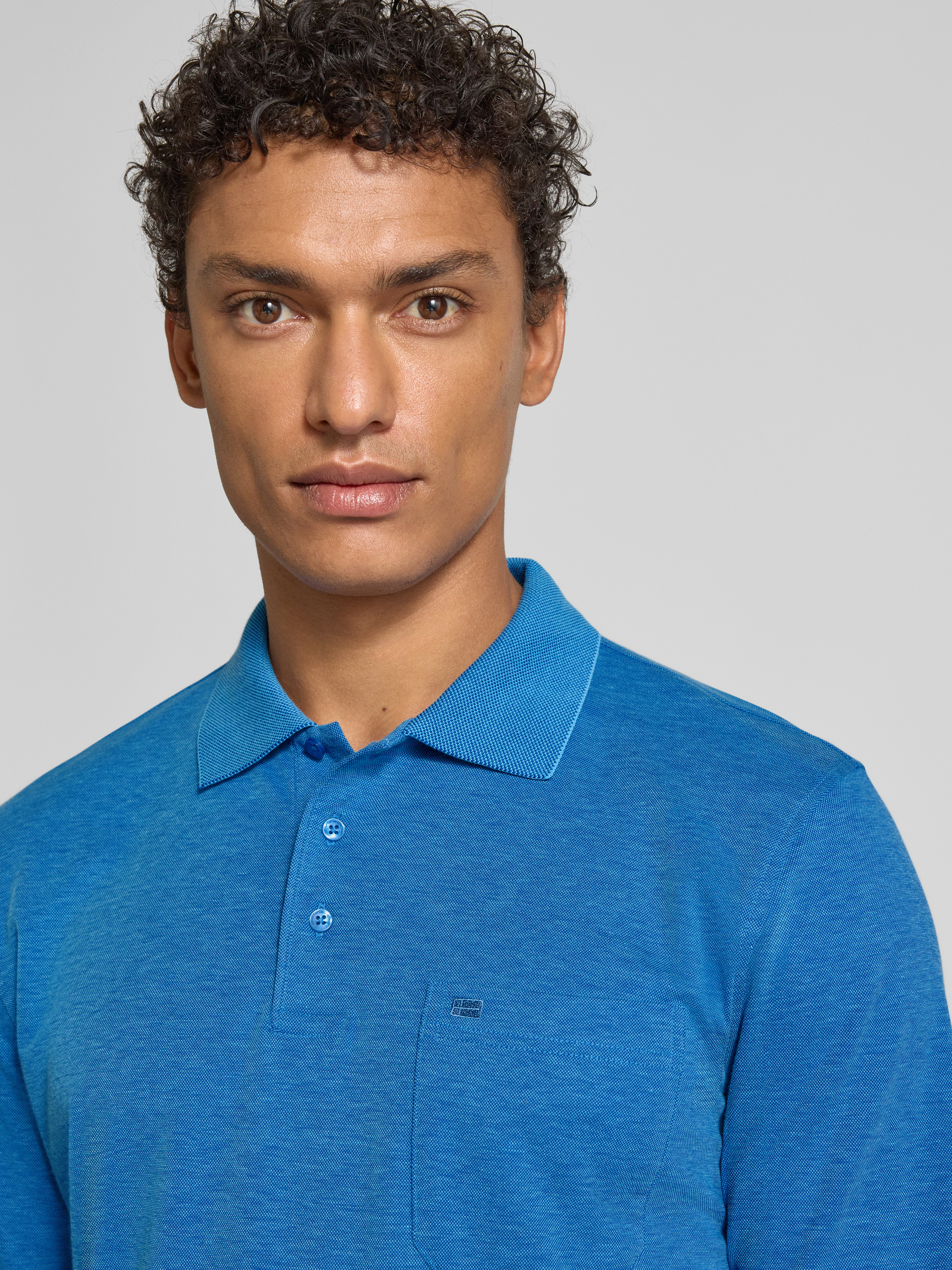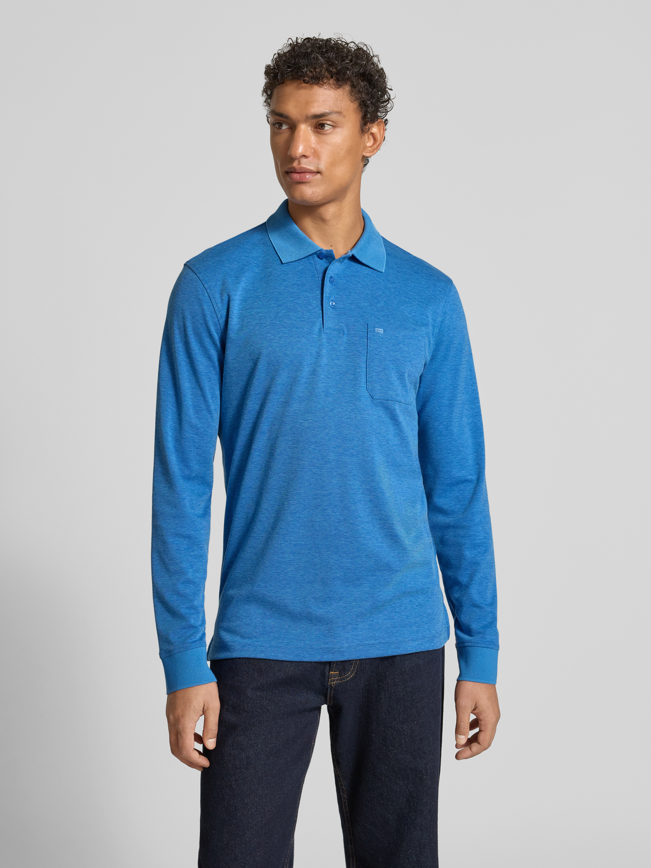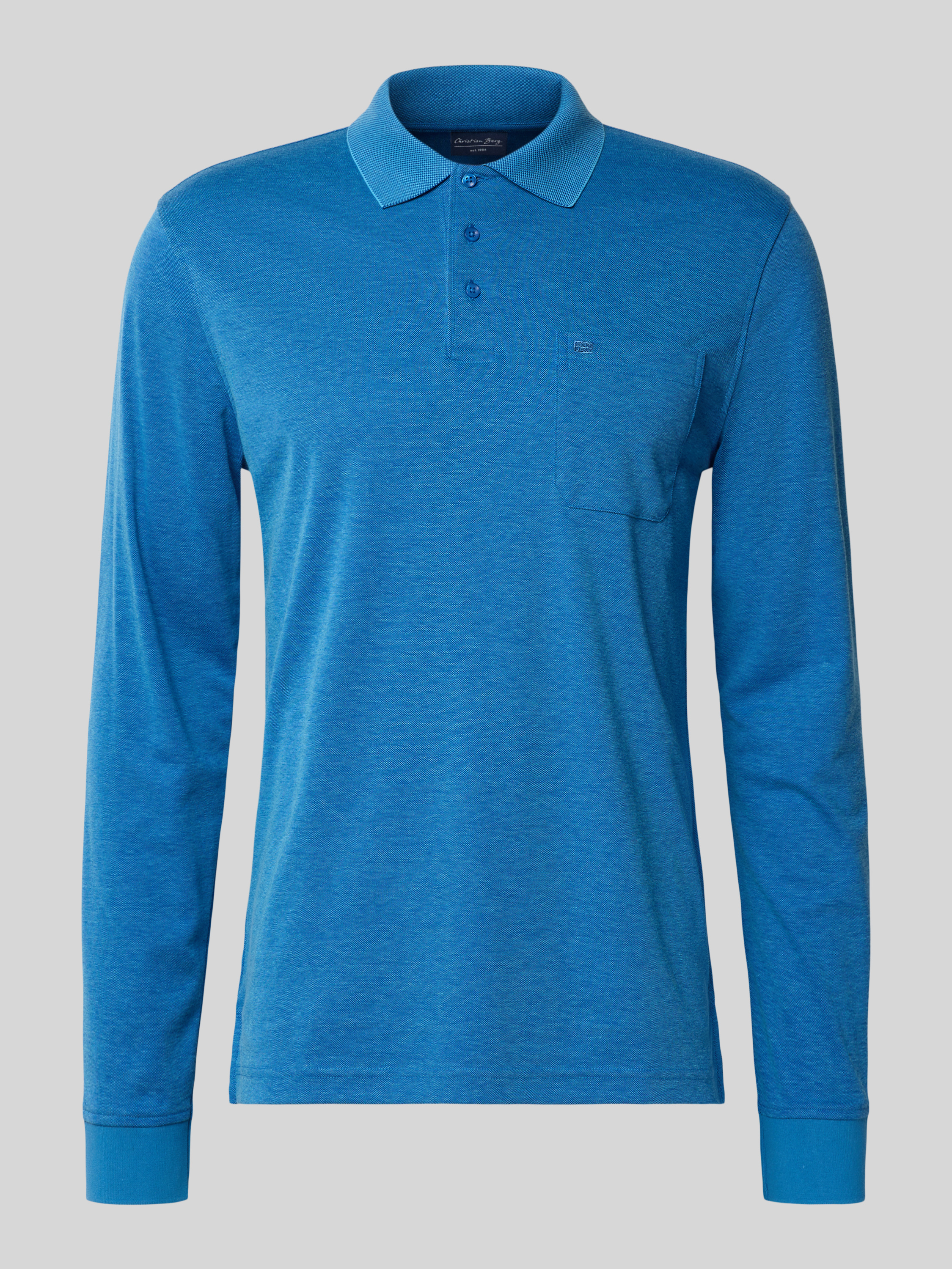 Regular fit poloshirt in design met lange mouwen in oceaanblauw