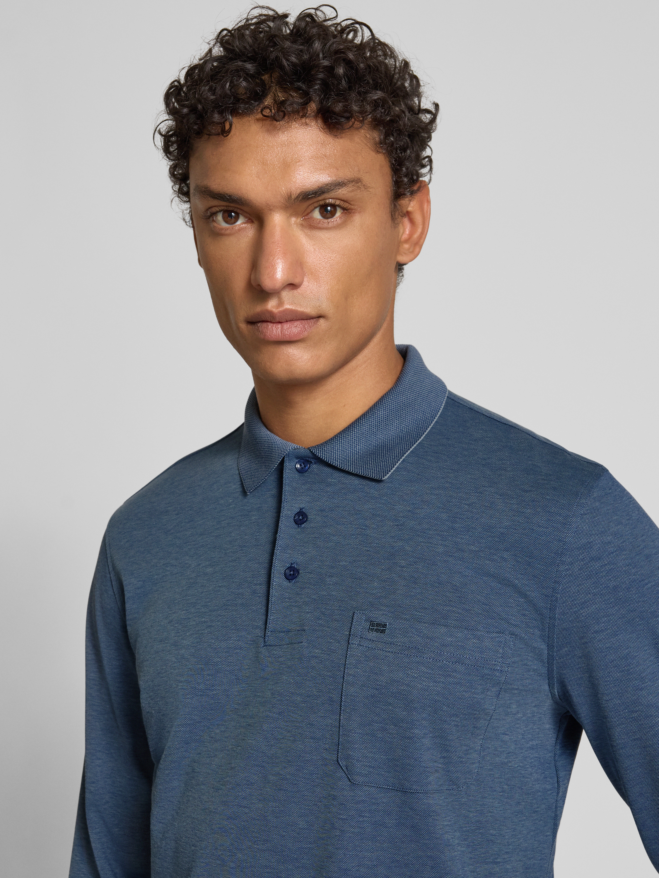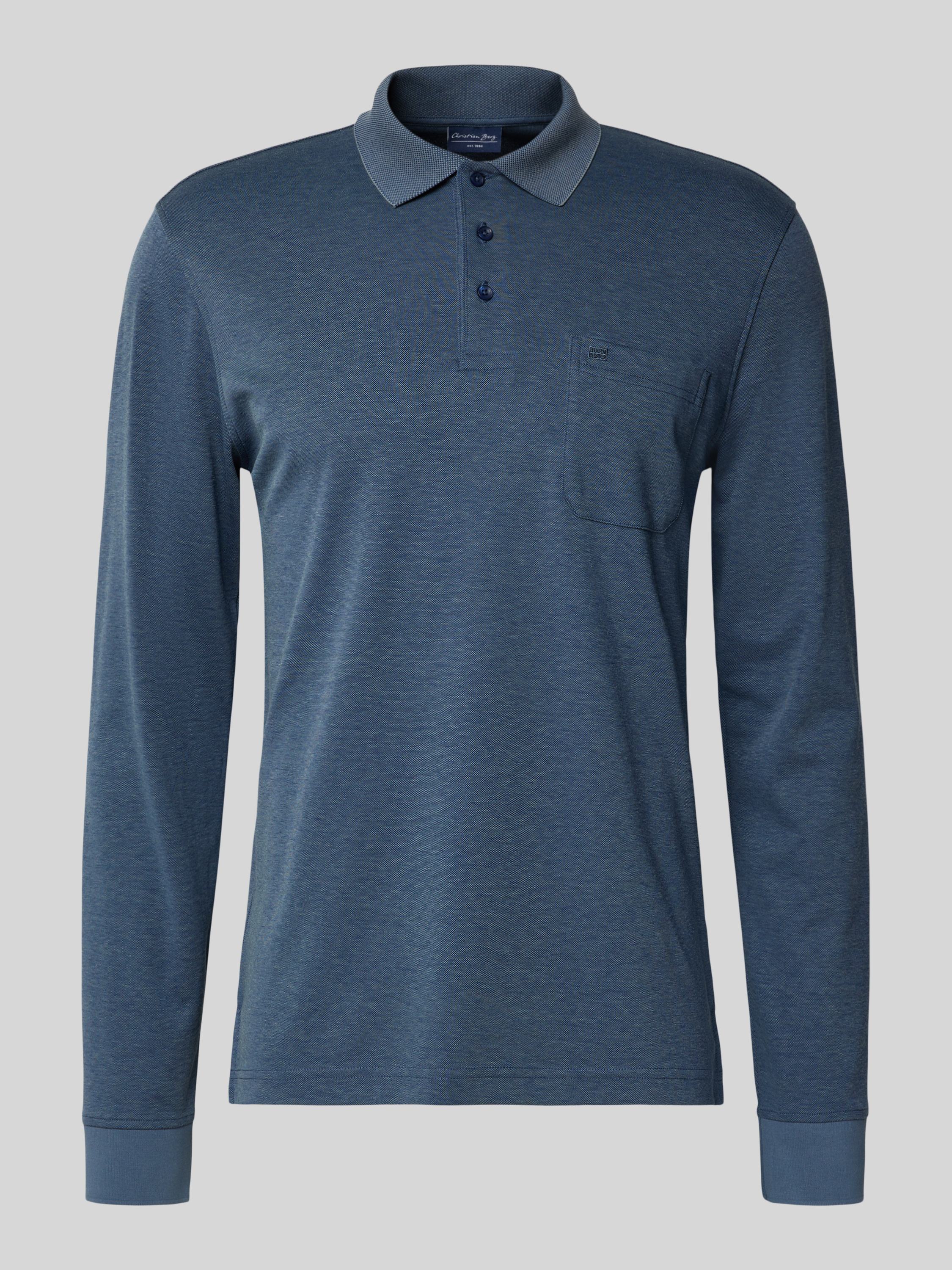 Regular fit poloshirt in design met lange mouwen in rookblauw