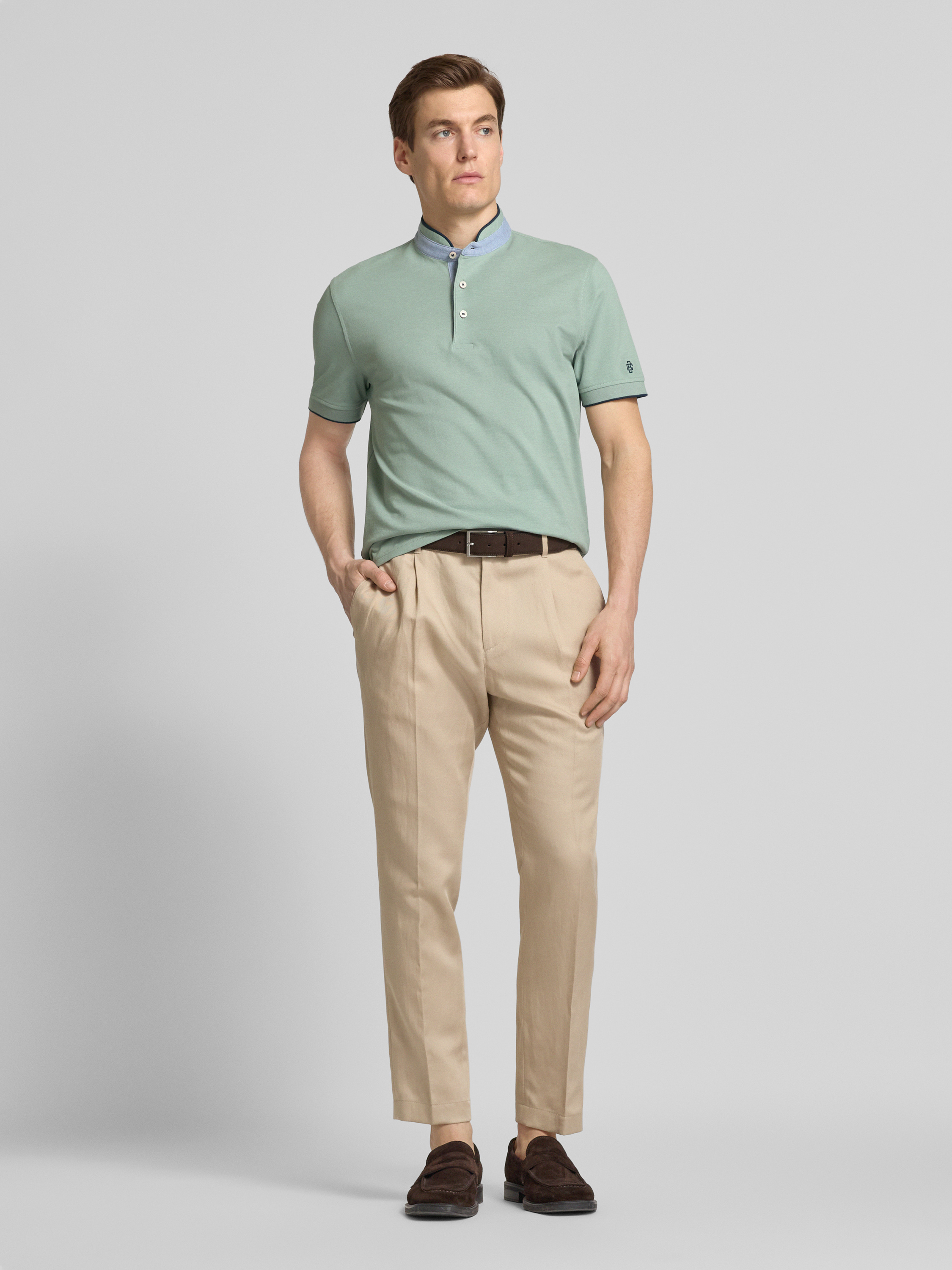 Regular fit poloshirt met opstaande kraag in olijfgroen