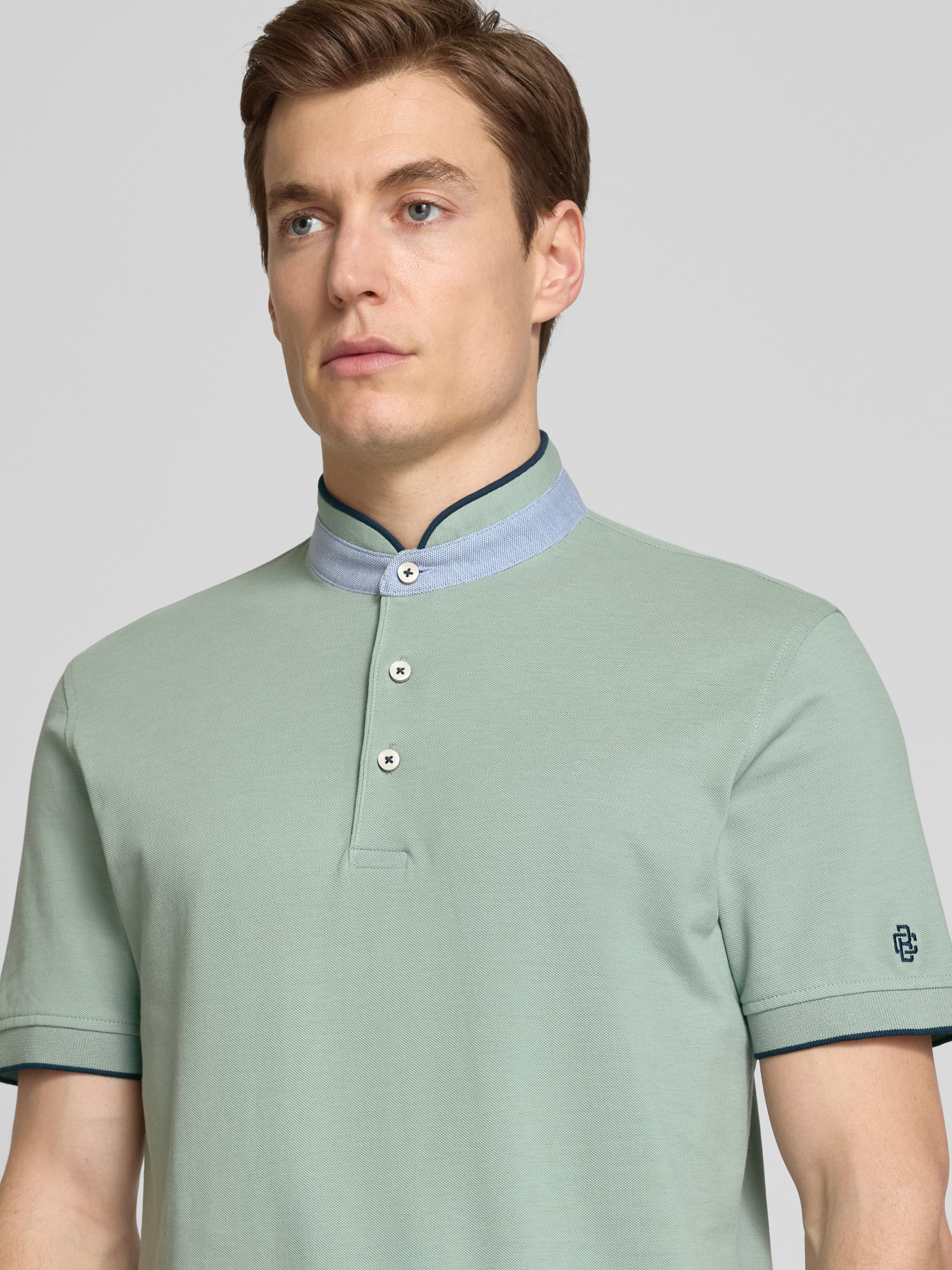 Opstaande kraag met korte knoopsluiting