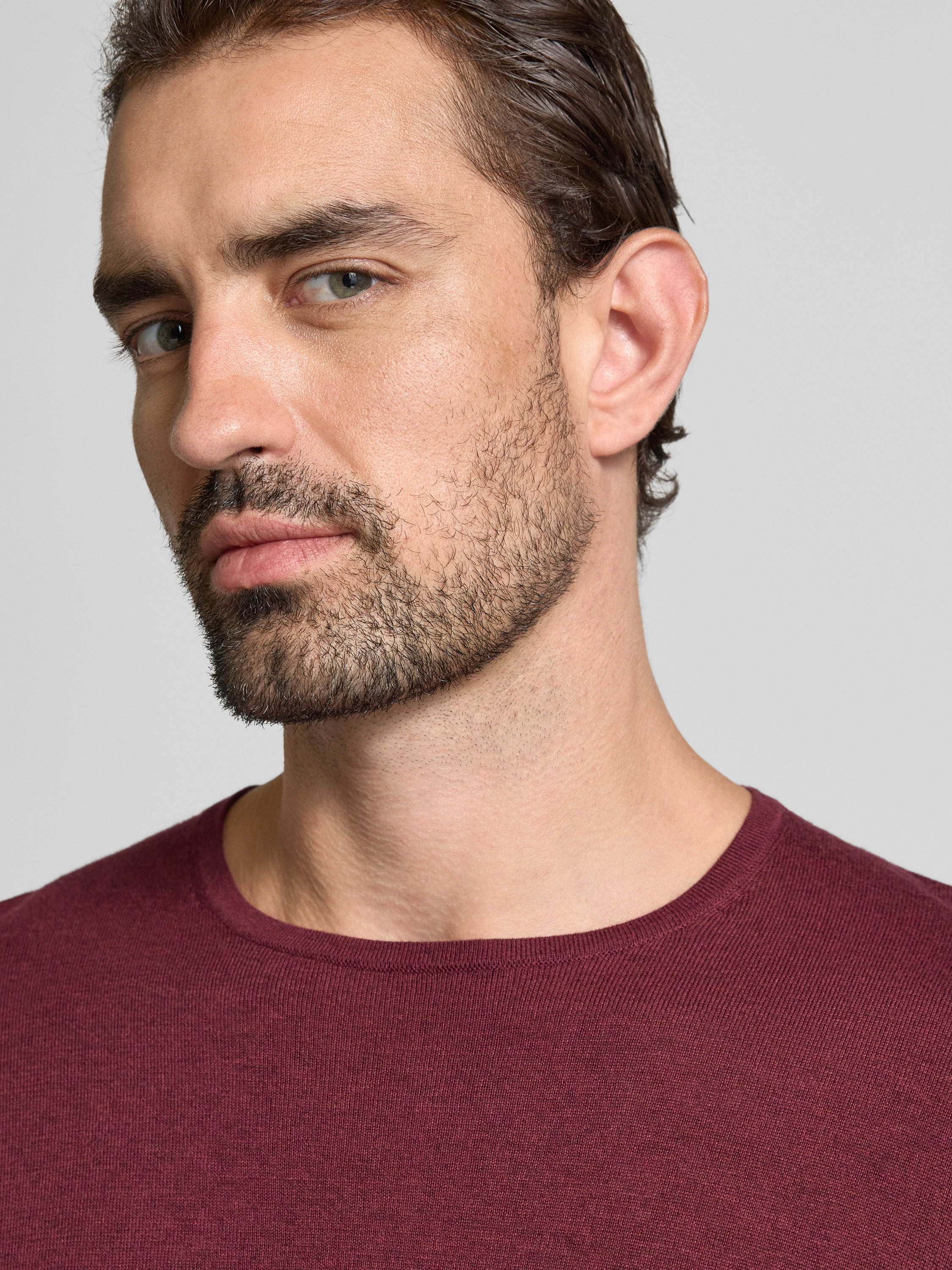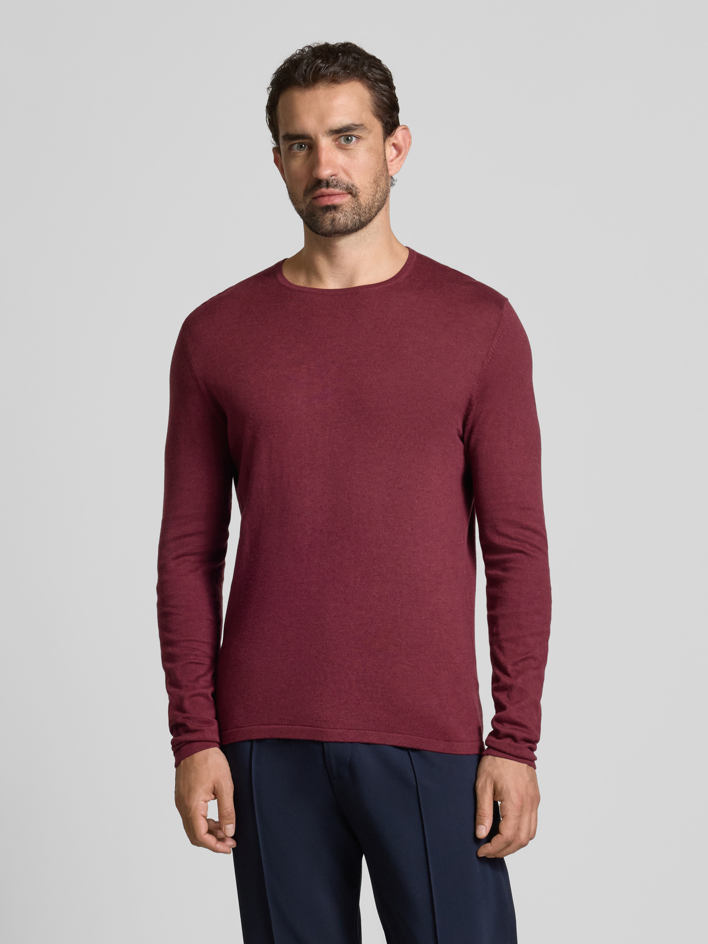 Regular fit pullover van puur katoen in gebreide look in bordeaux gemêleerd