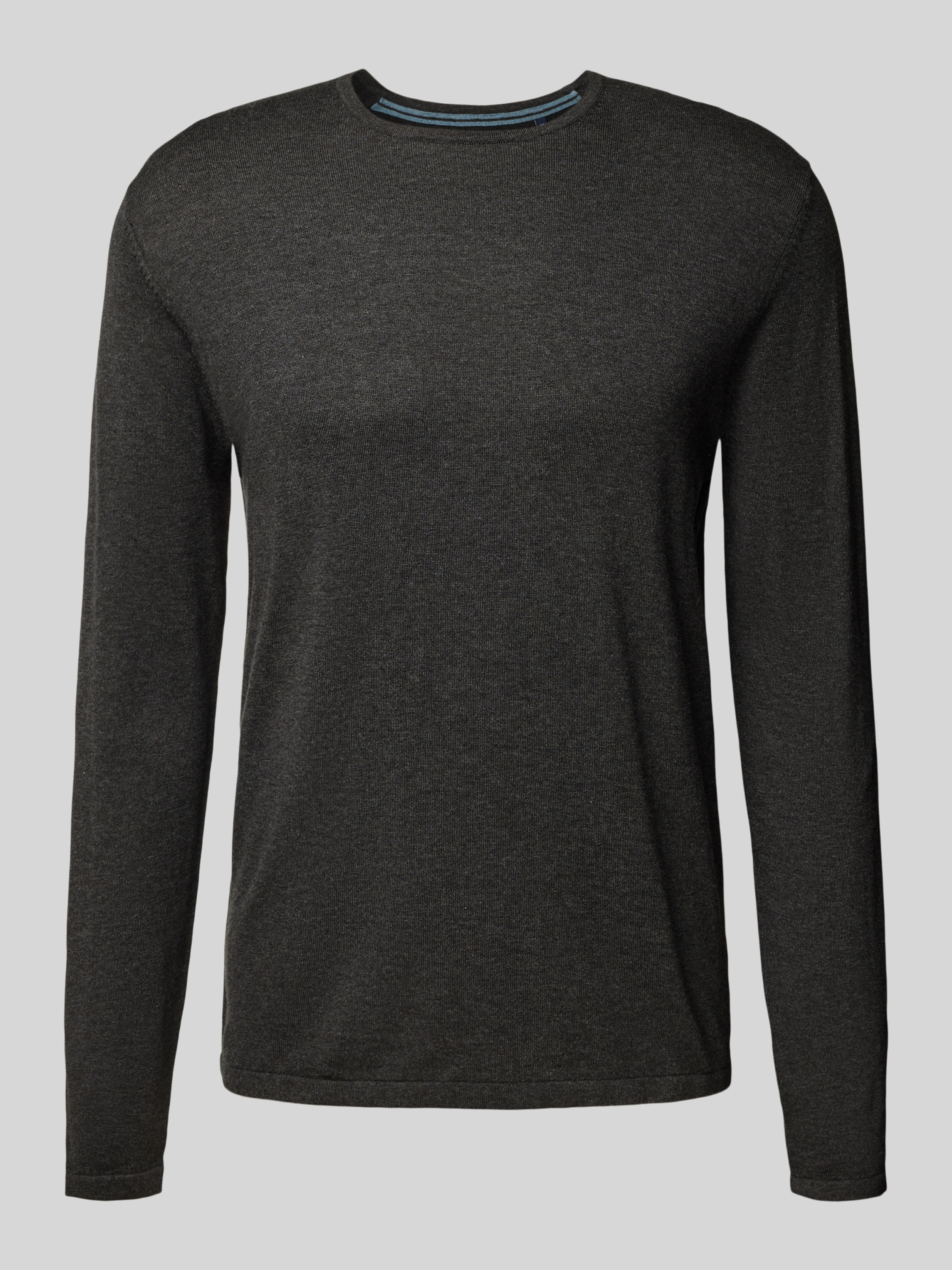 Regular fit pullover van puur katoen in gebreide look in donkergrijs gemêleerd