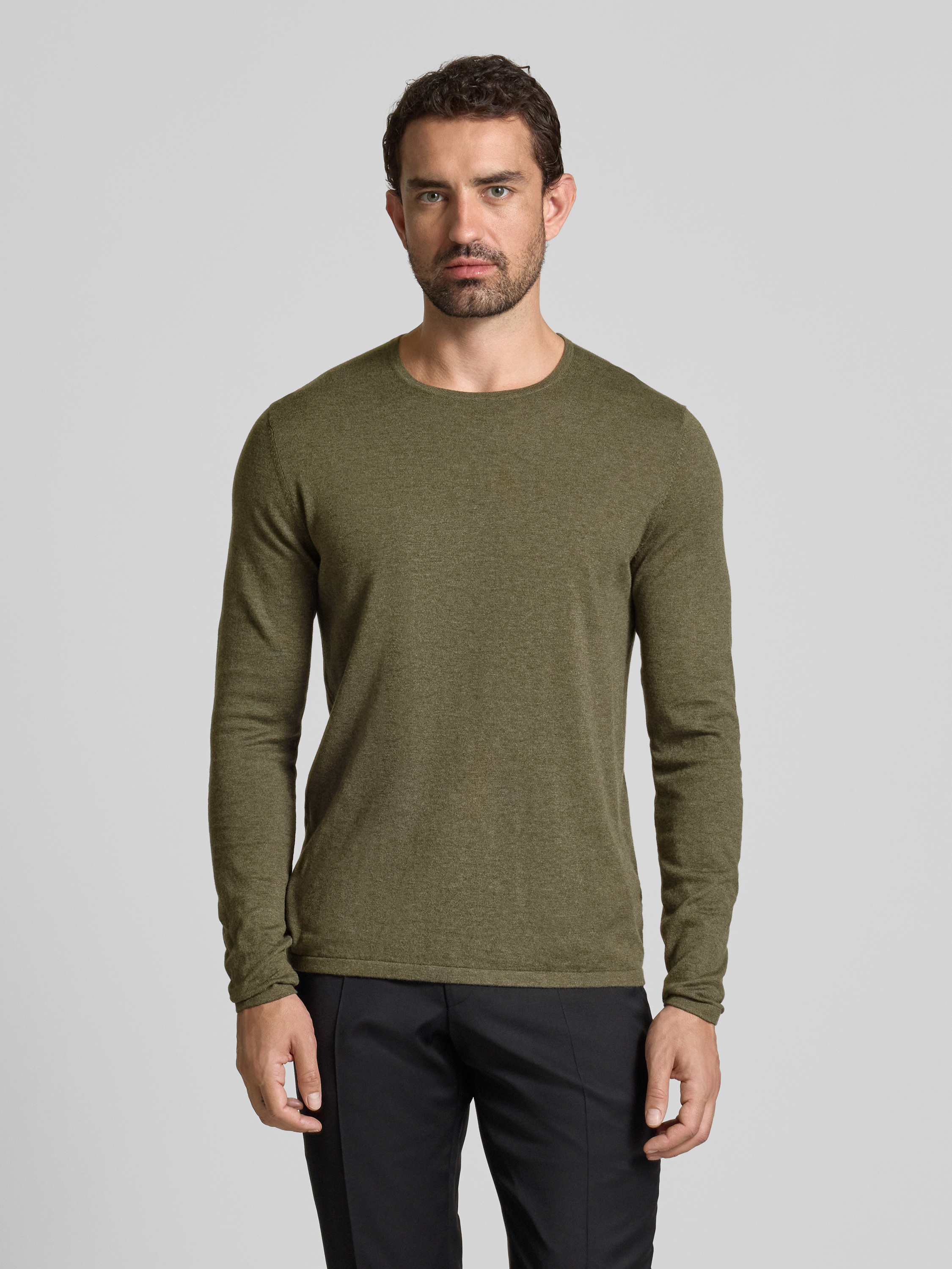 Regular fit pullover van puur katoen in gebreide look in kaki gemêleerd