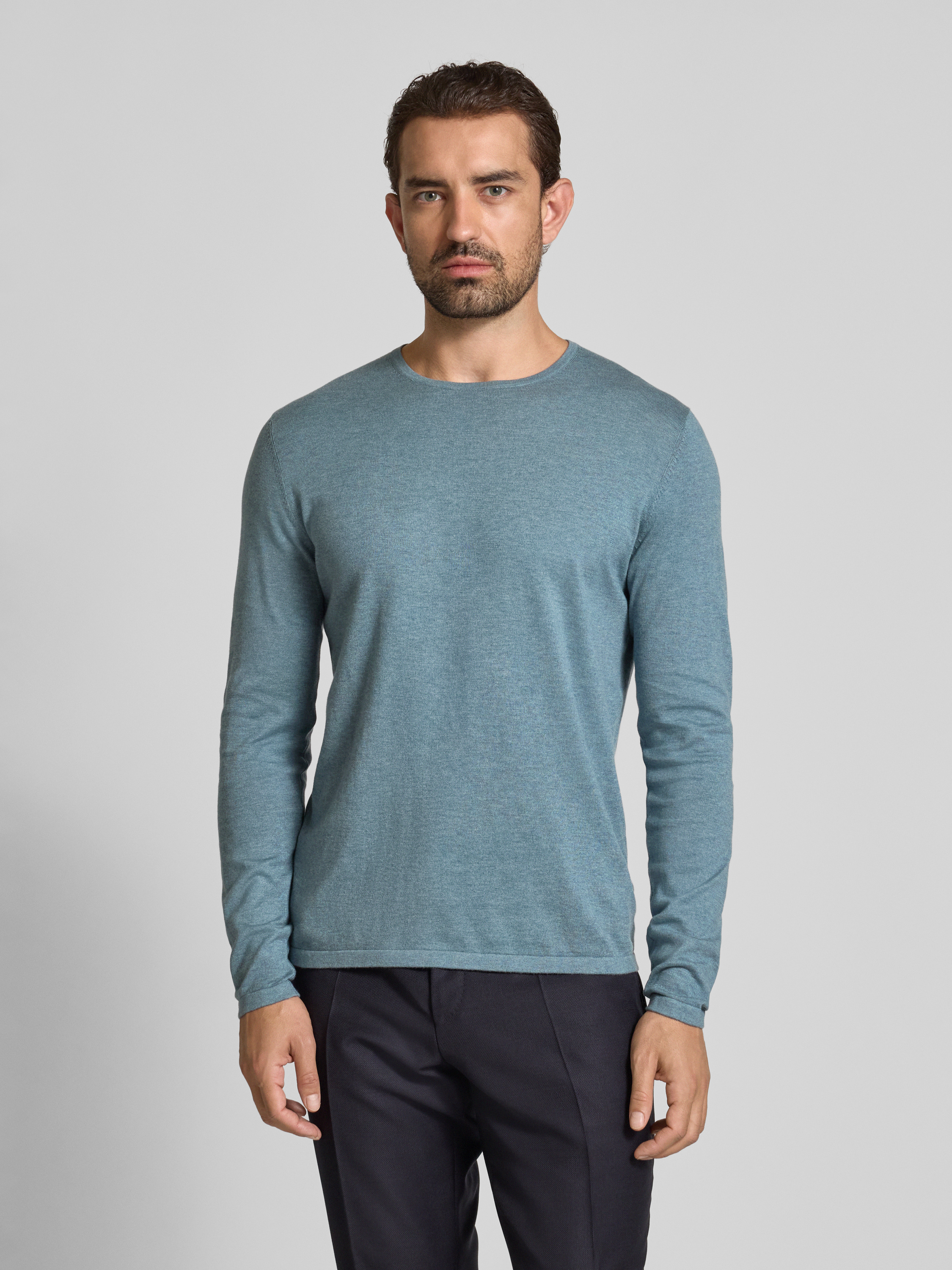 Regular fit pullover van puur katoen in gebreide look in metallic turquoise gemêlee