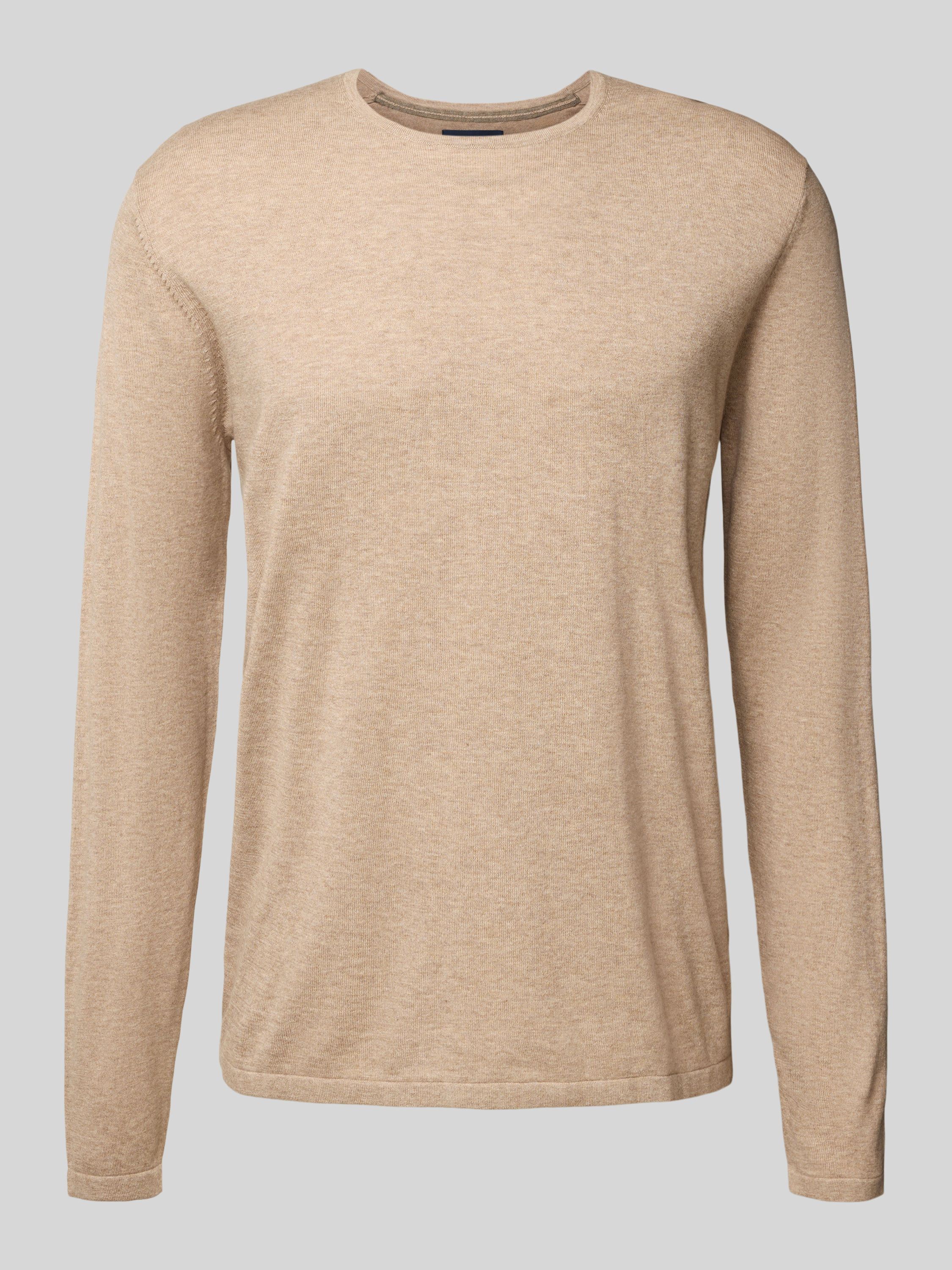 Regular fit pullover van puur katoen in gebreide look in zand gemêleerd