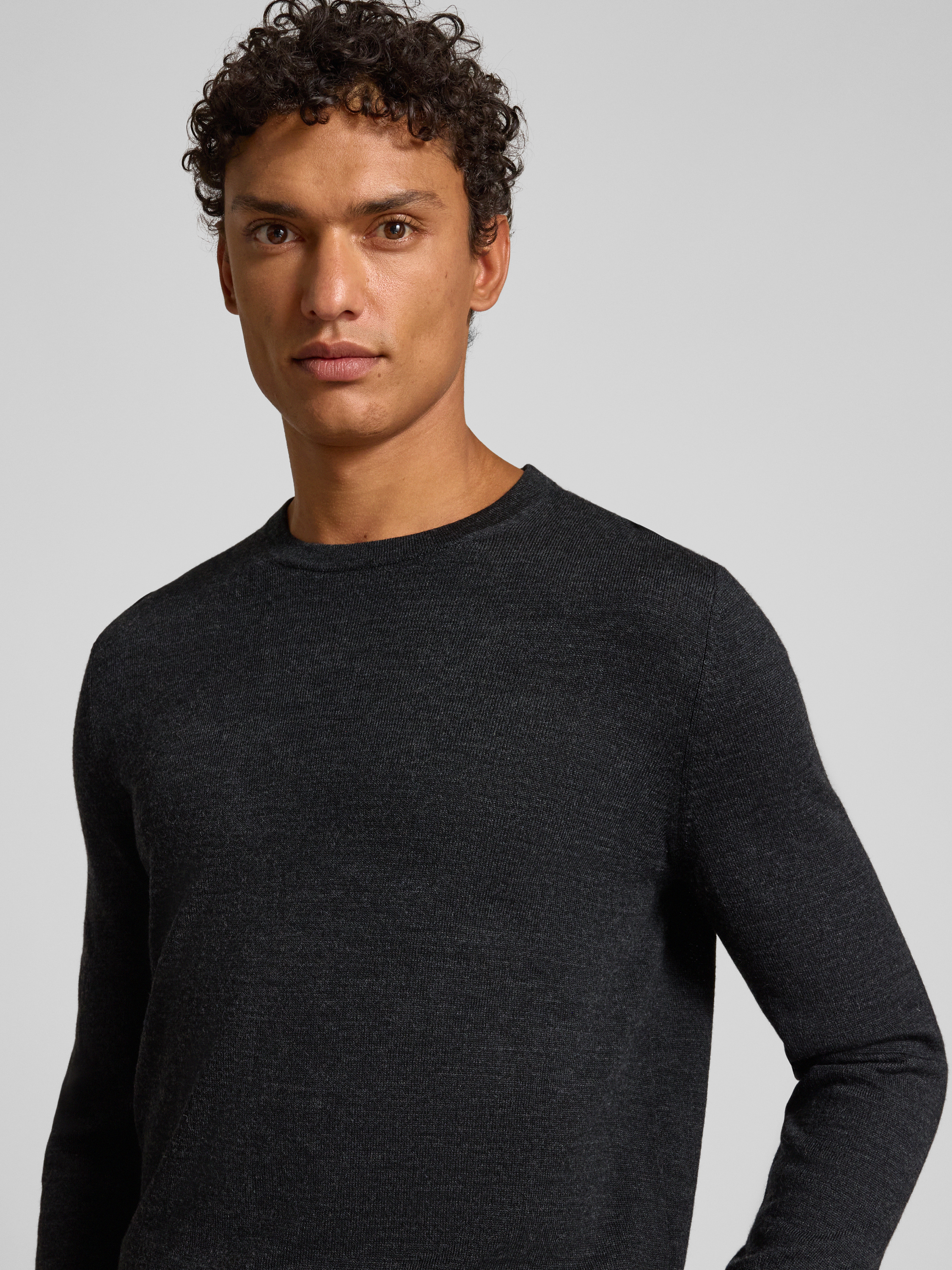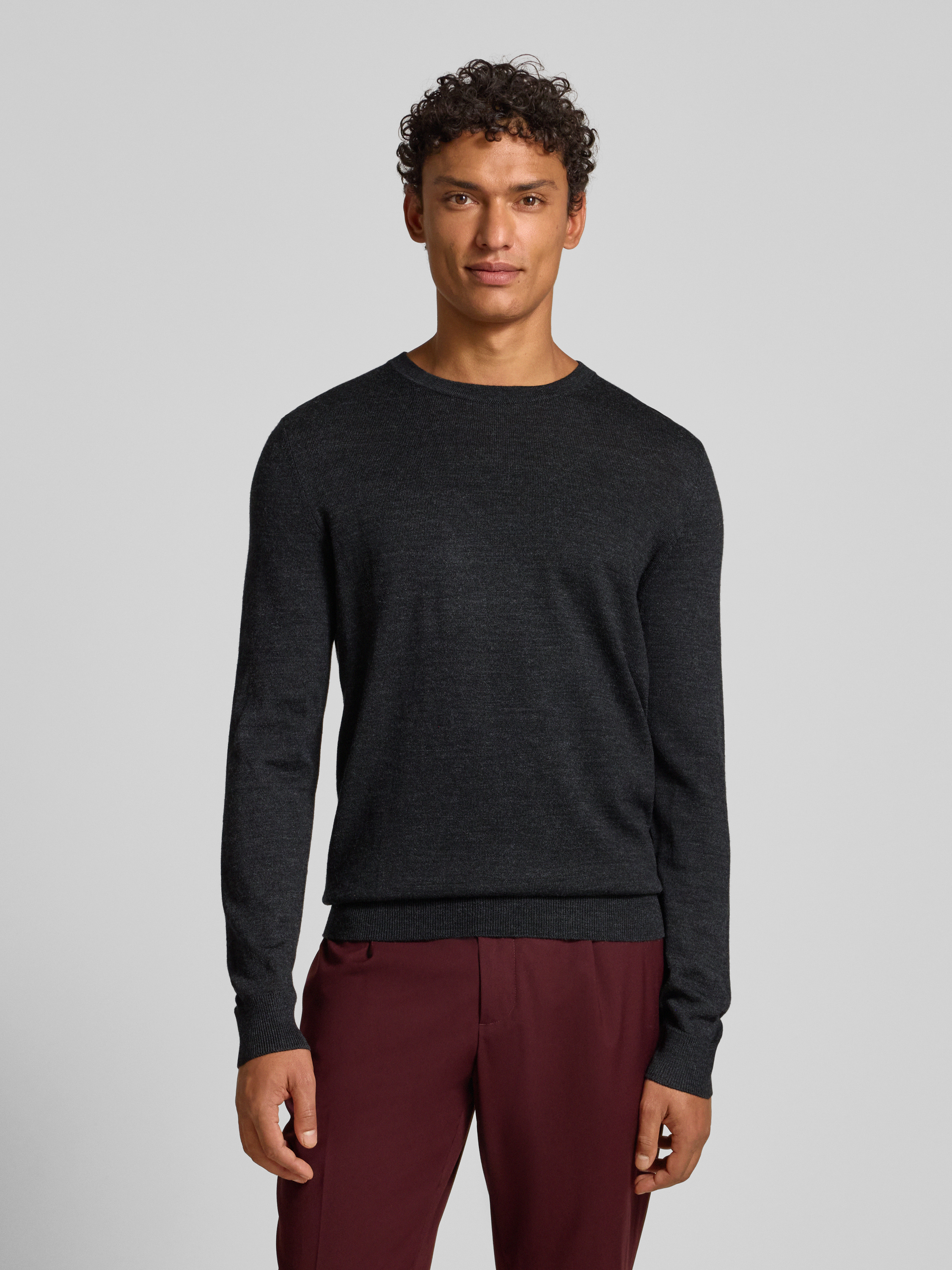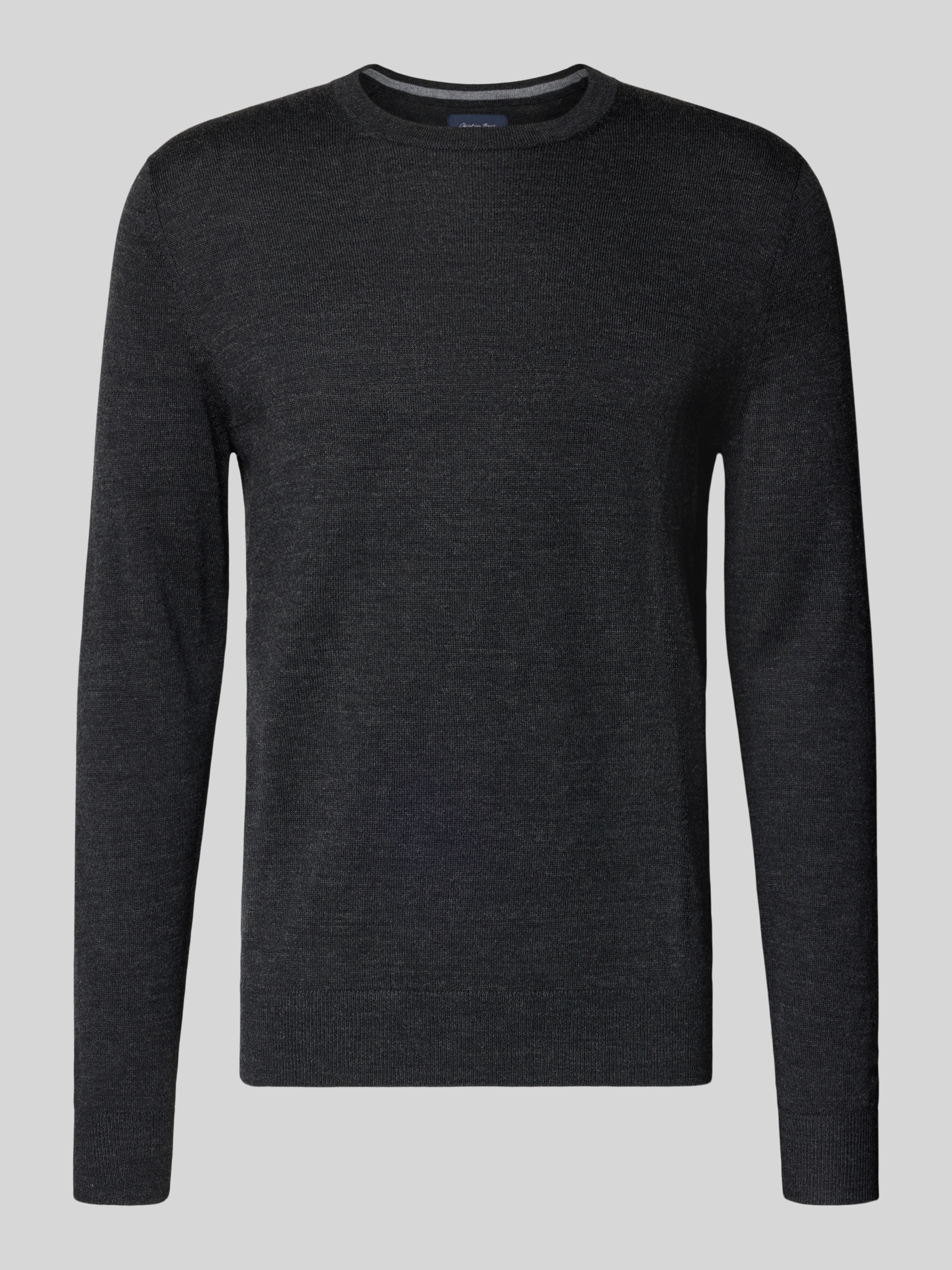 Christian Berg MenRegular fit shirt met lange mouwen van een mix van merinowol in antraciet gemêleerd