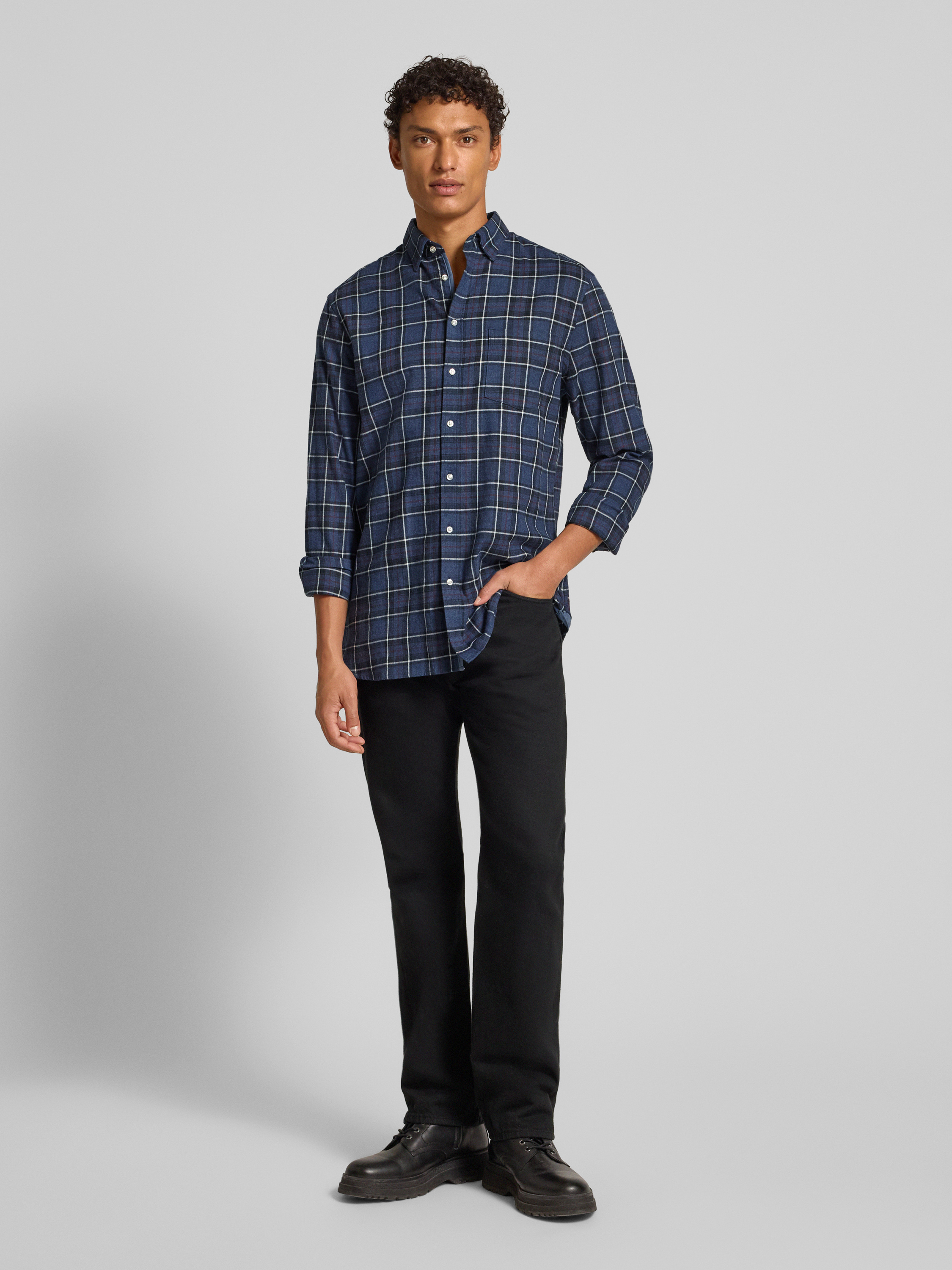Regular fit vrijetijdsoverhemd met kentkraag in jeansblauw gemêleerd