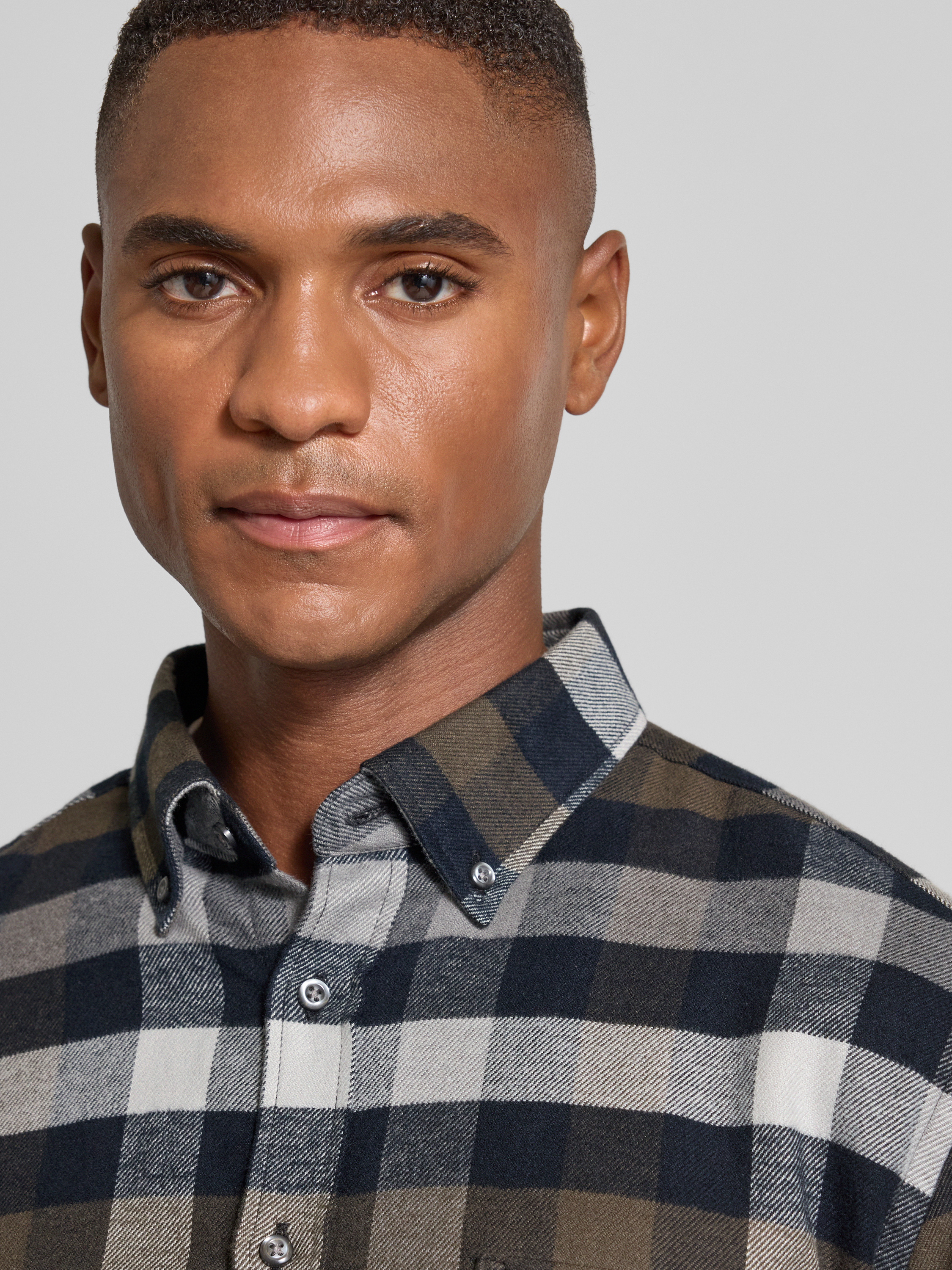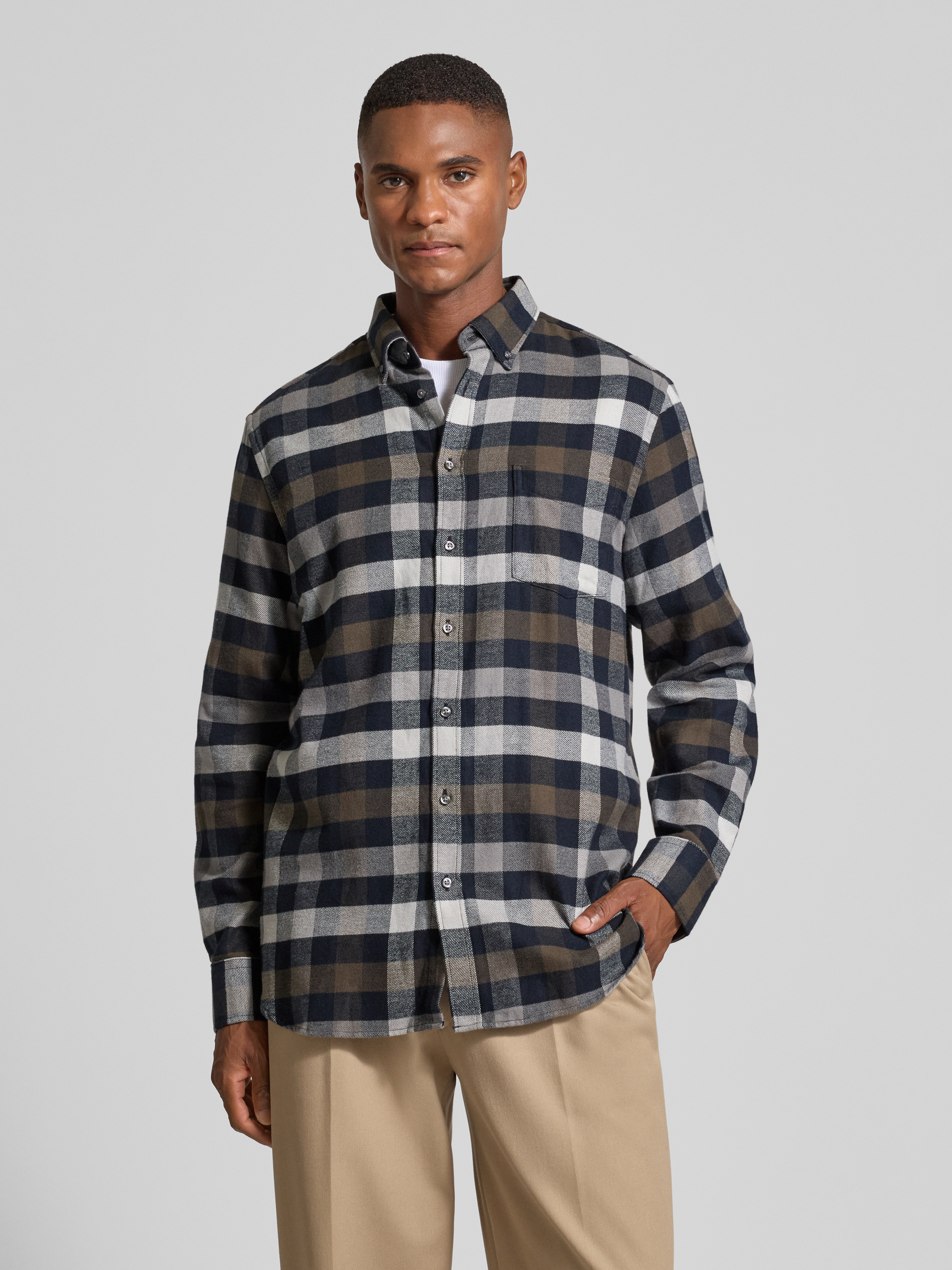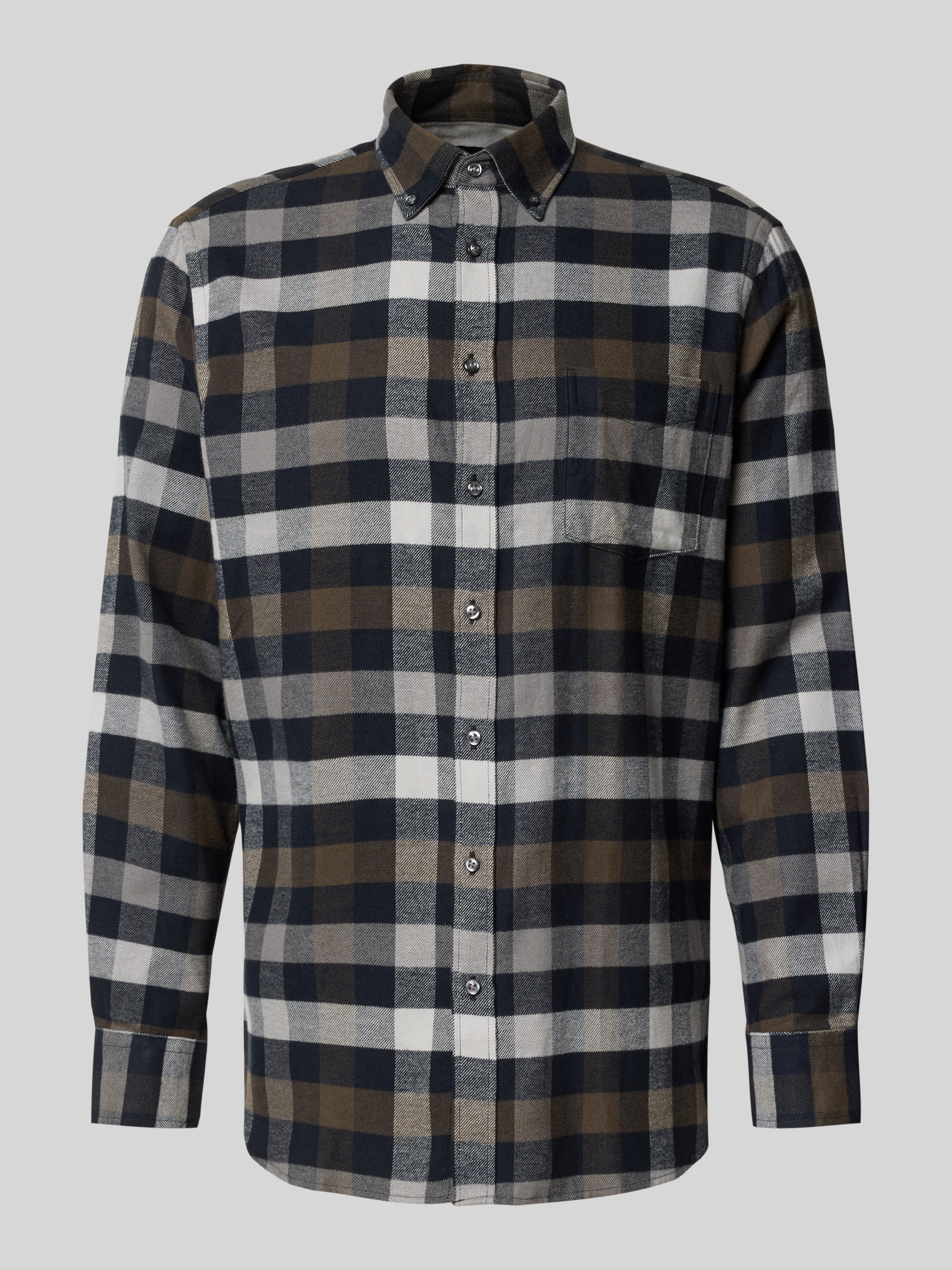 Christian Berg MenRegular fit vrijetijdsoverhemd van biologische katoenmix in middengrijs