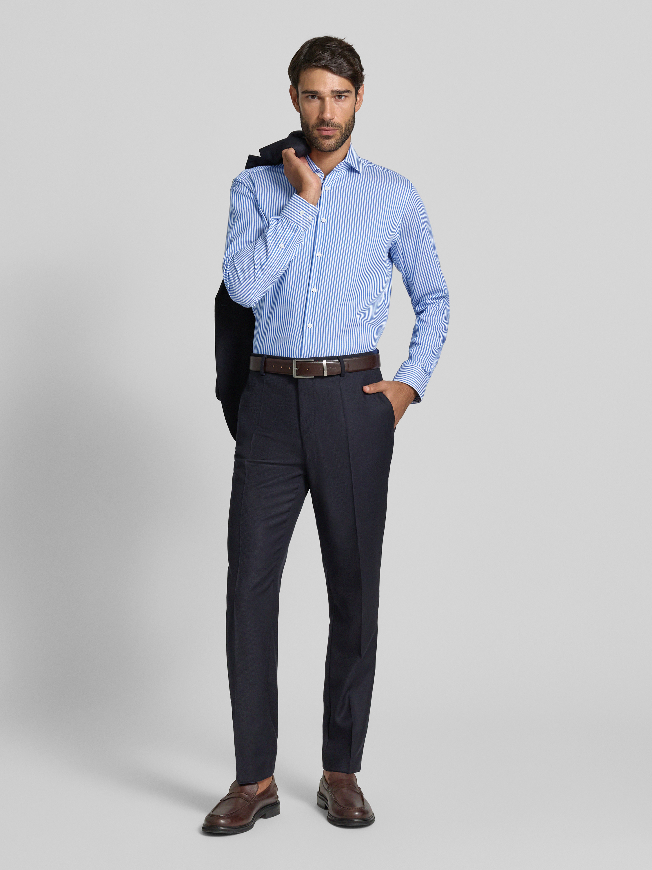 Regular fit zakelijk overhemd met haaikraag in koningsblauw
