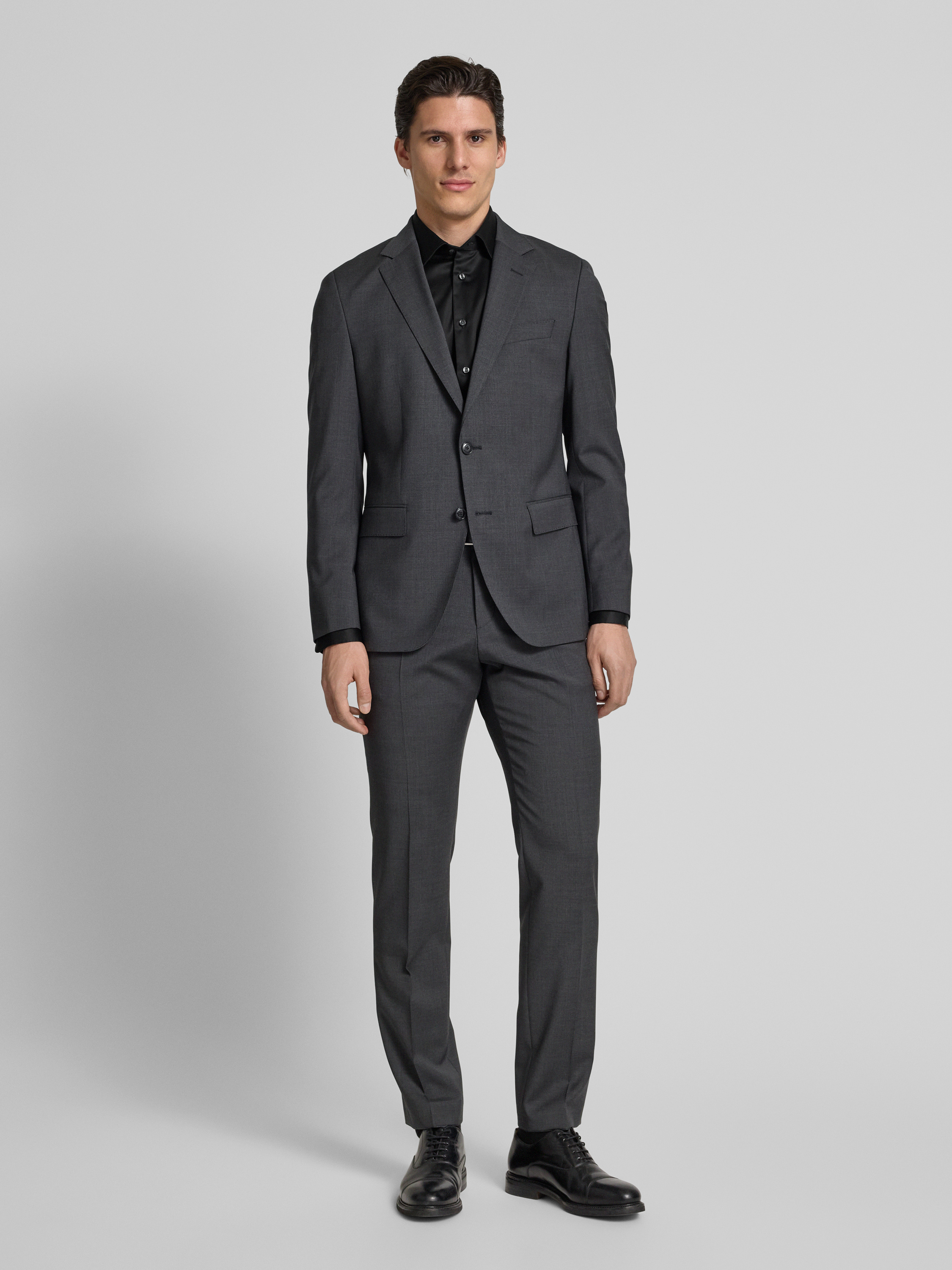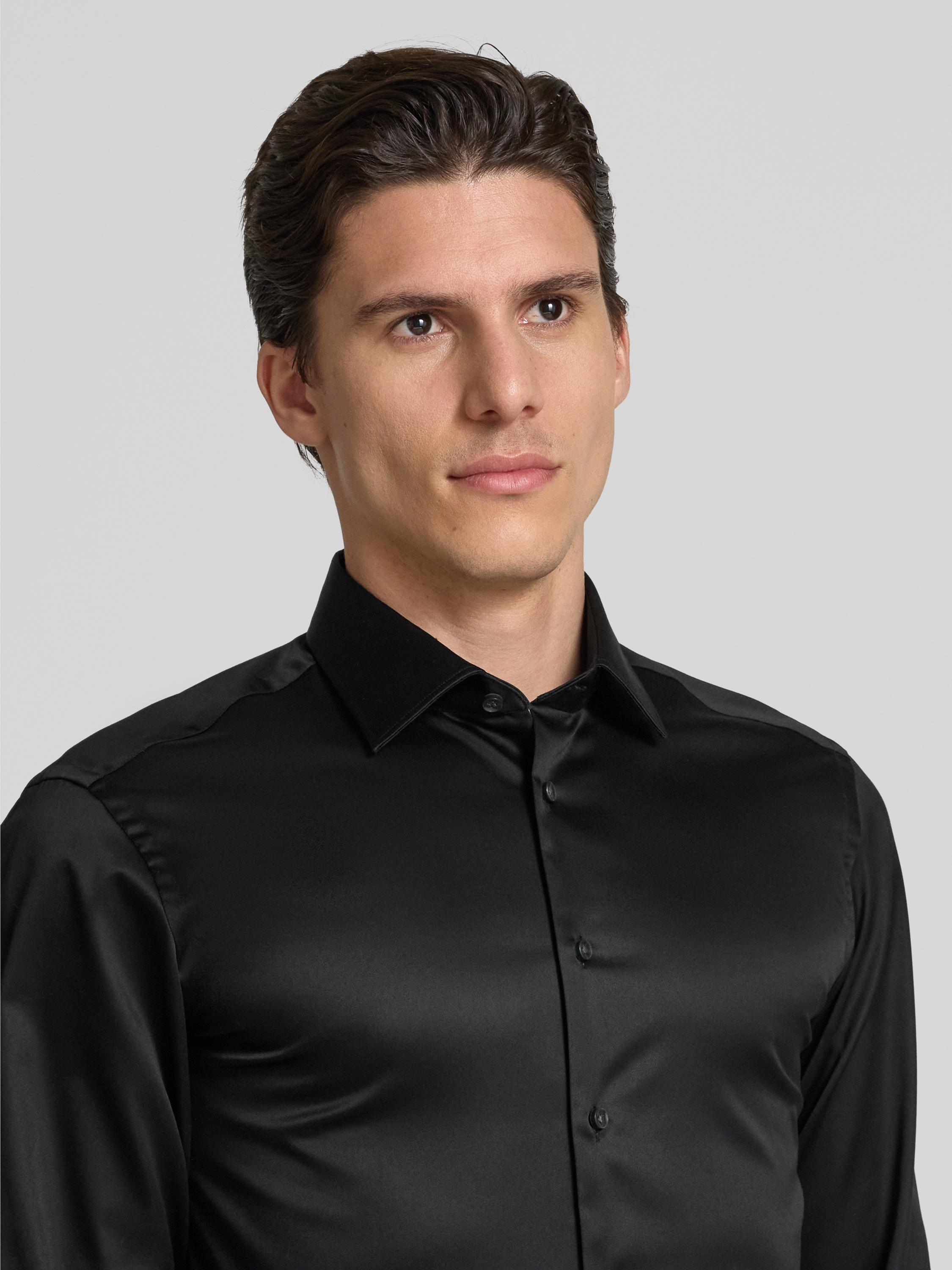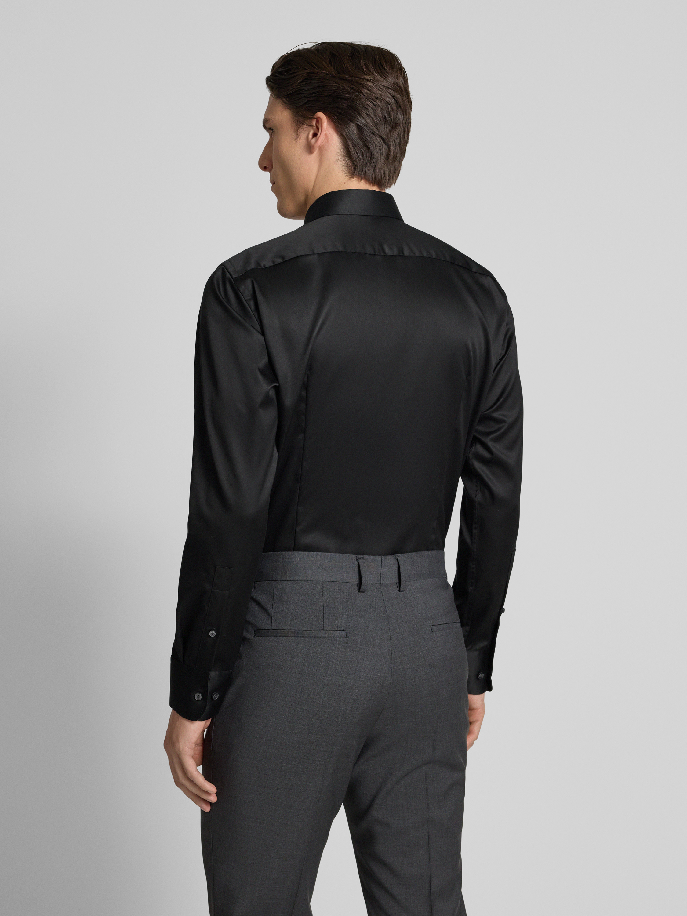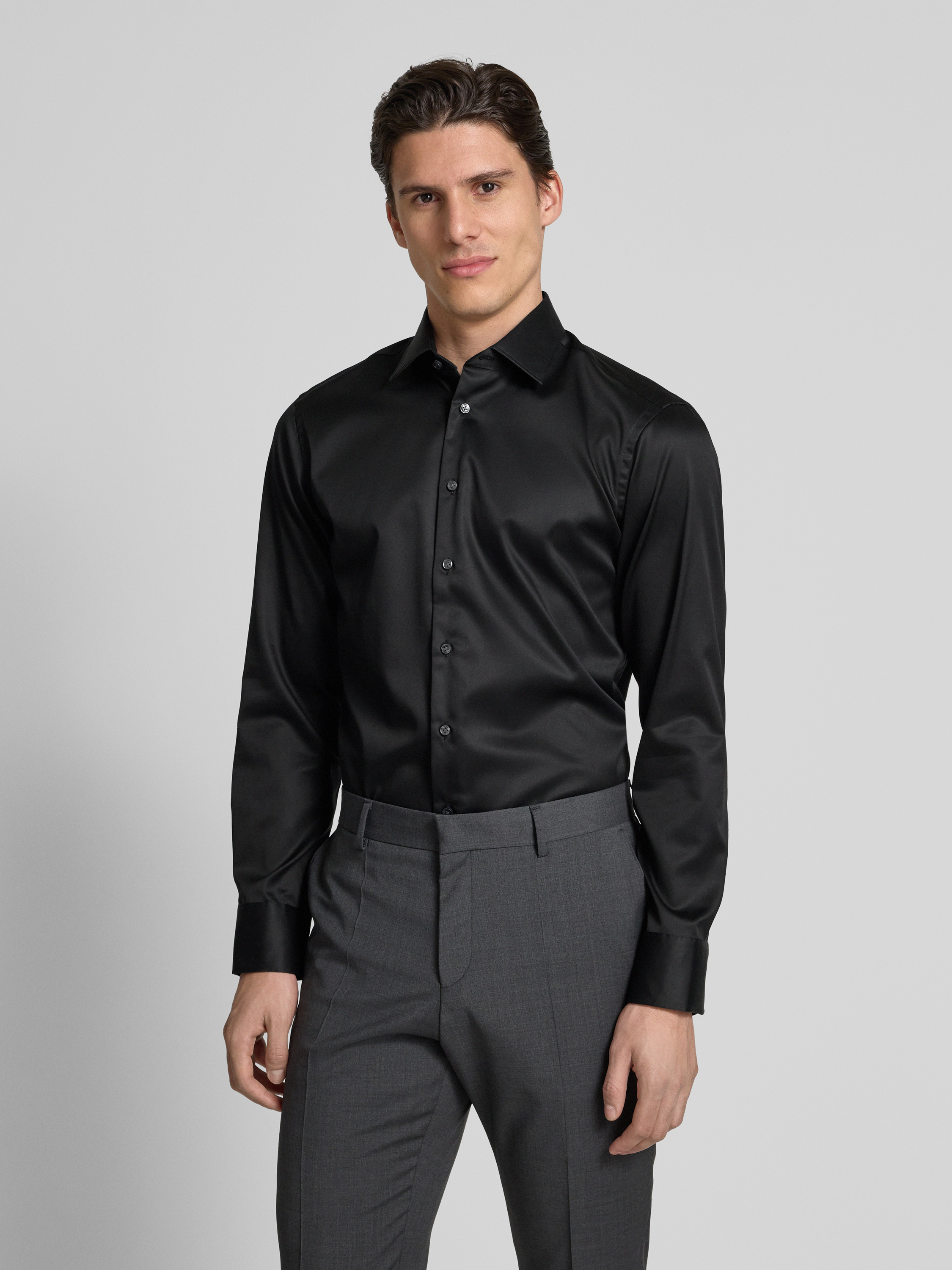 Regular fit zakelijk overhemd met kentkraag in zwart