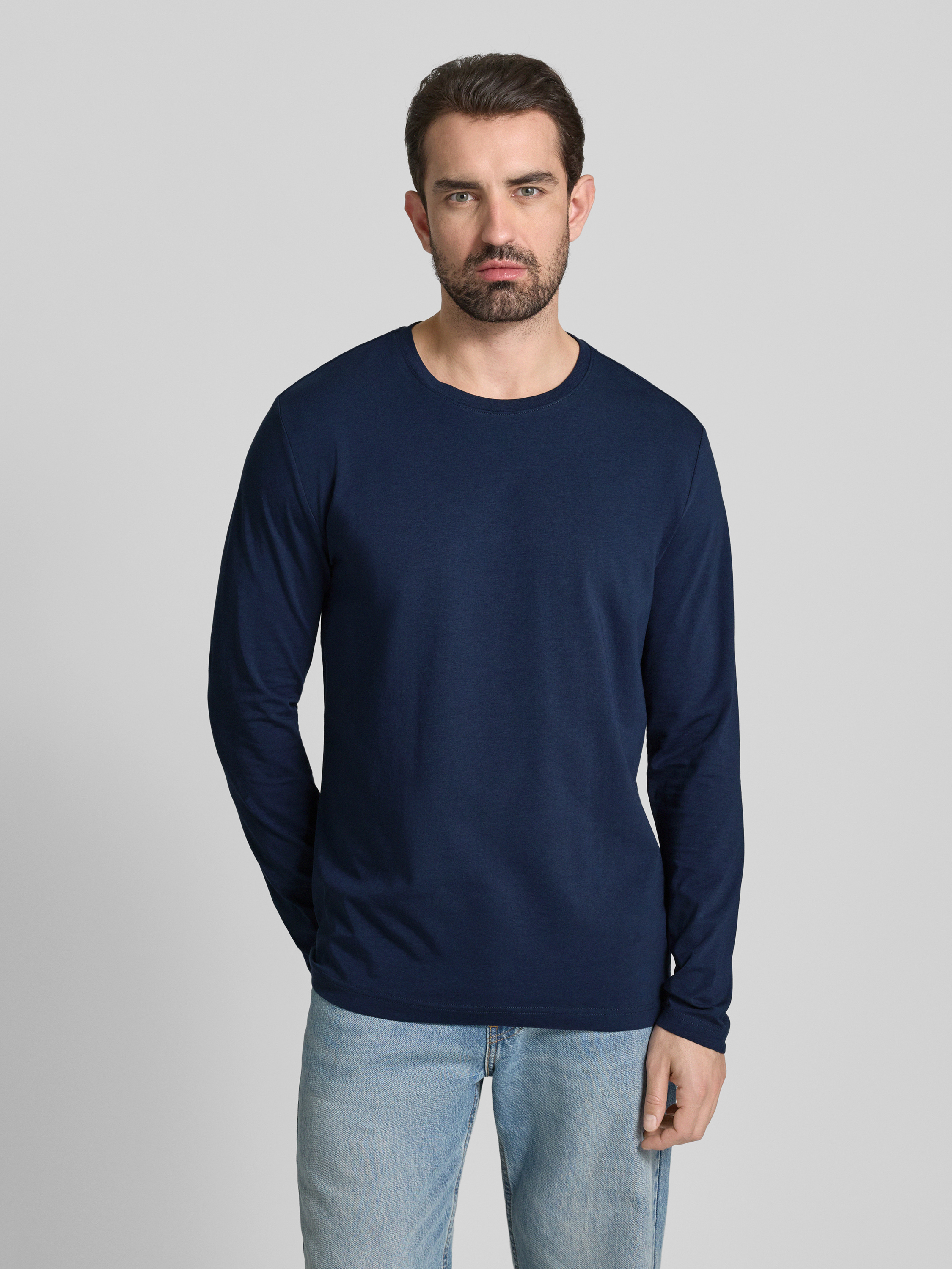 Shirt met lange mouwen en geribde ronde hals in donkerblauw