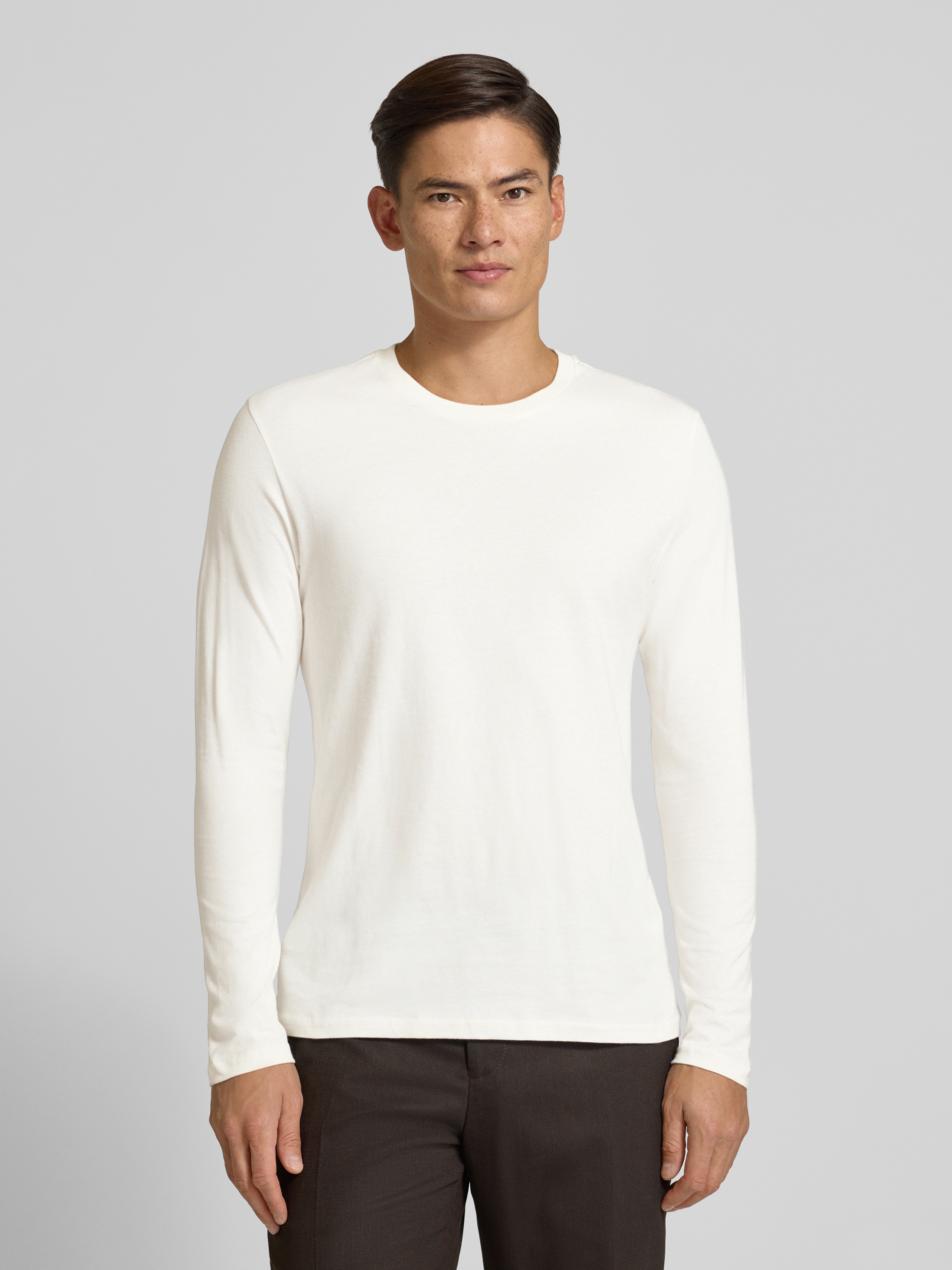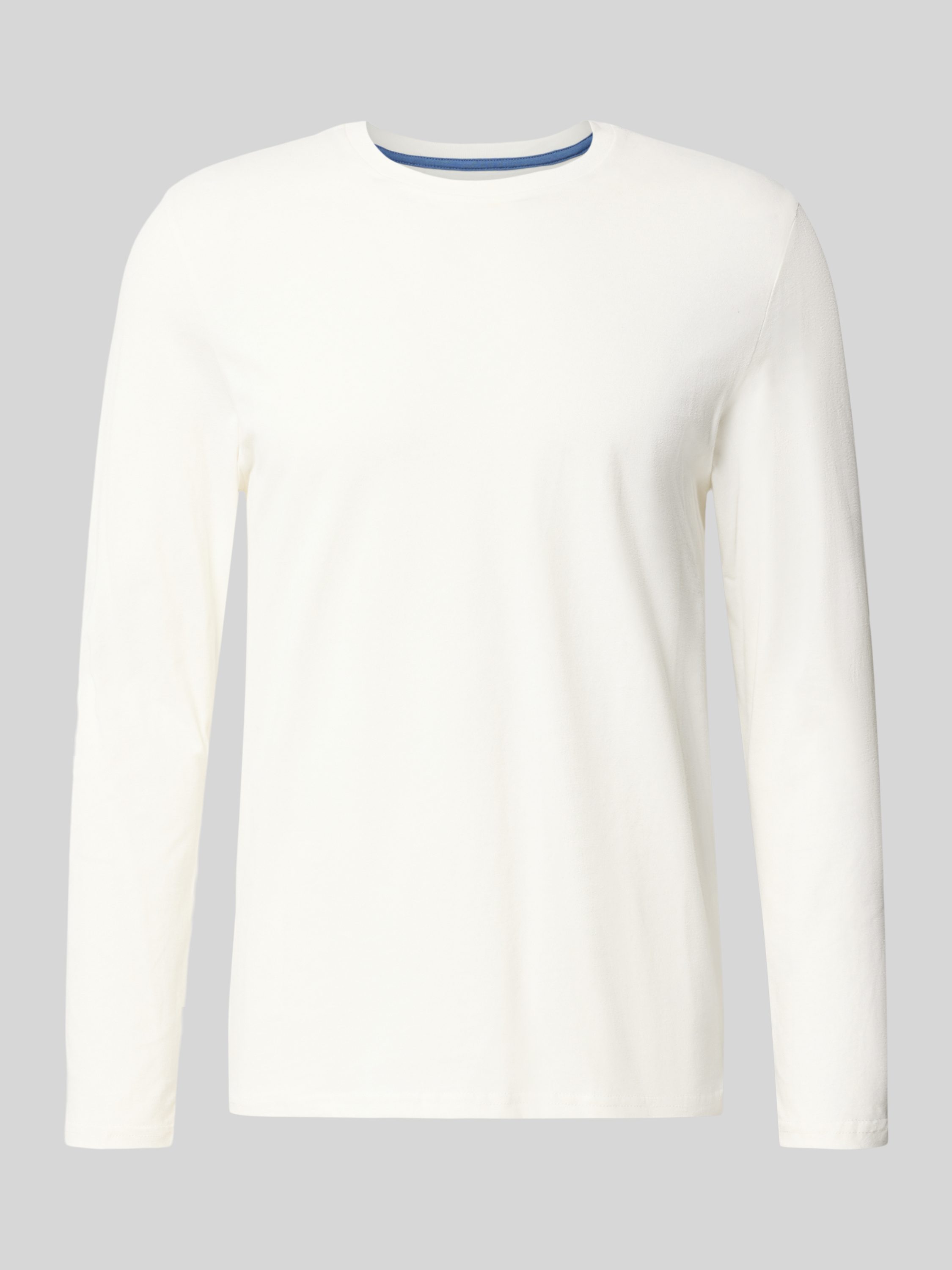 Shirt met lange mouwen en geribde ronde hals in offwhite
