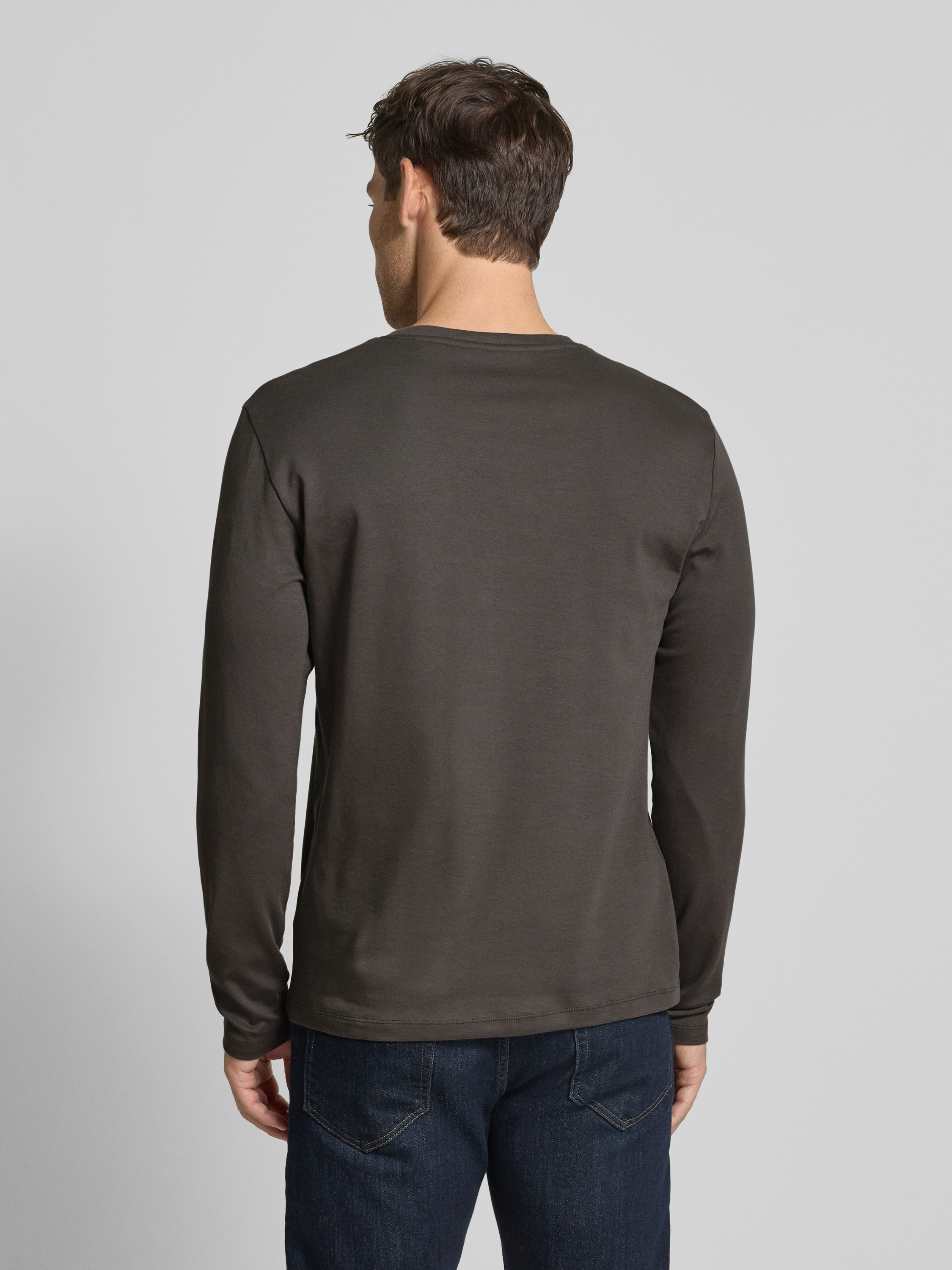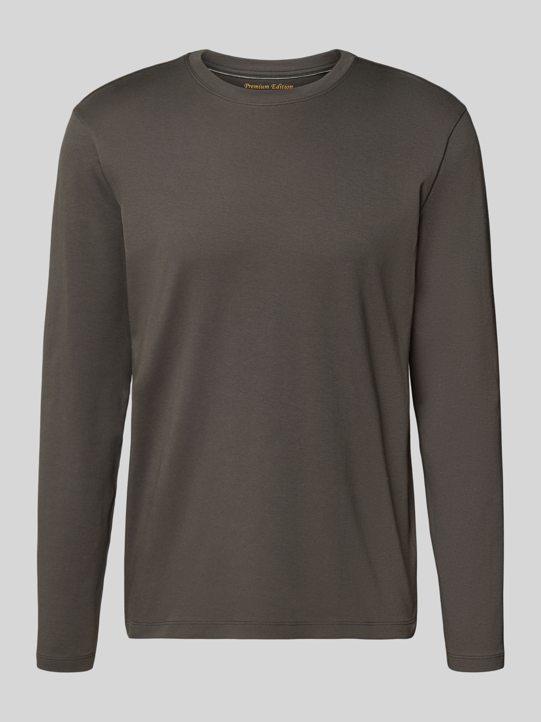Christian Berg MenShirt met lange mouwen en geribde ronde hals in olijfgroen