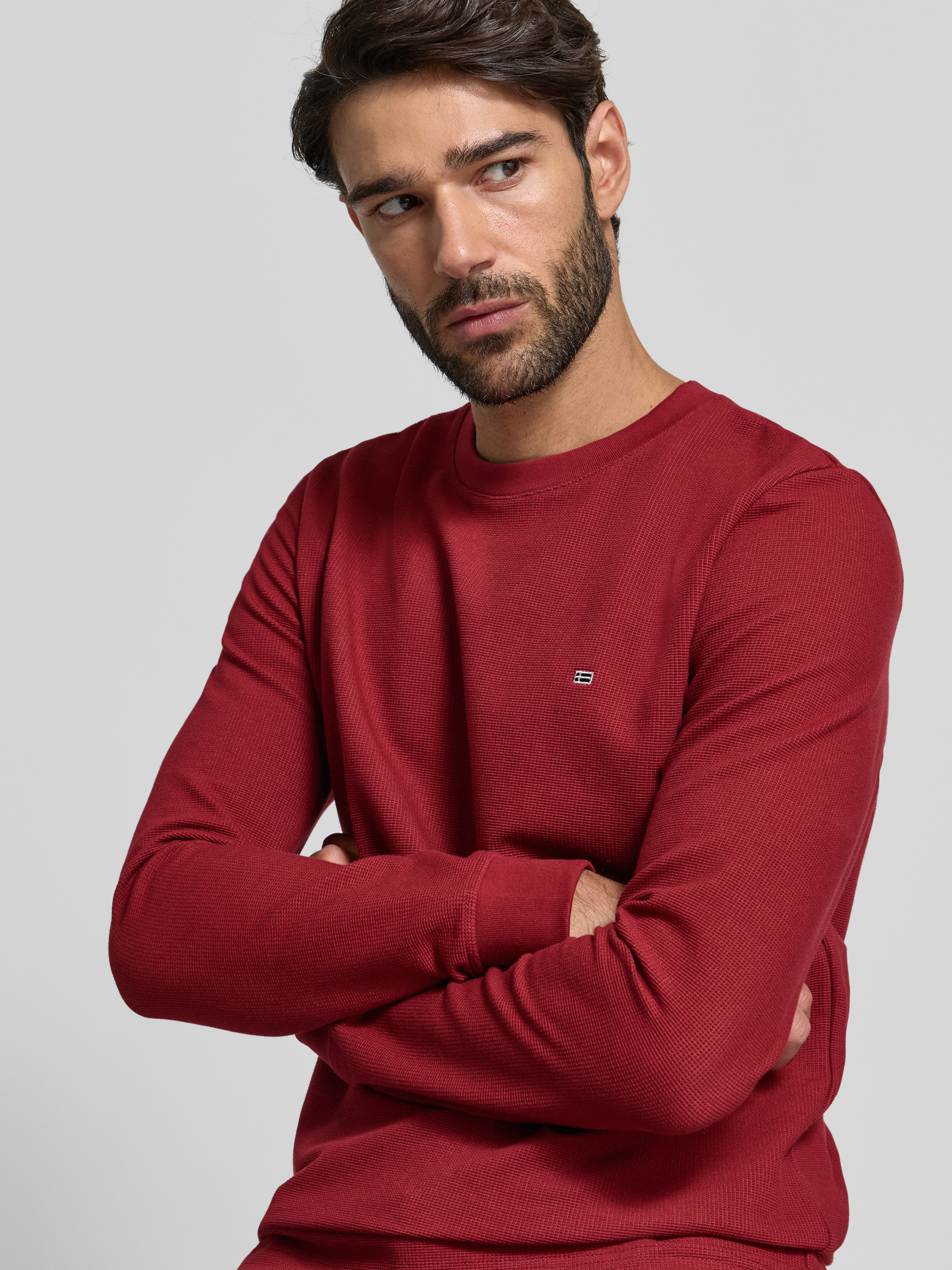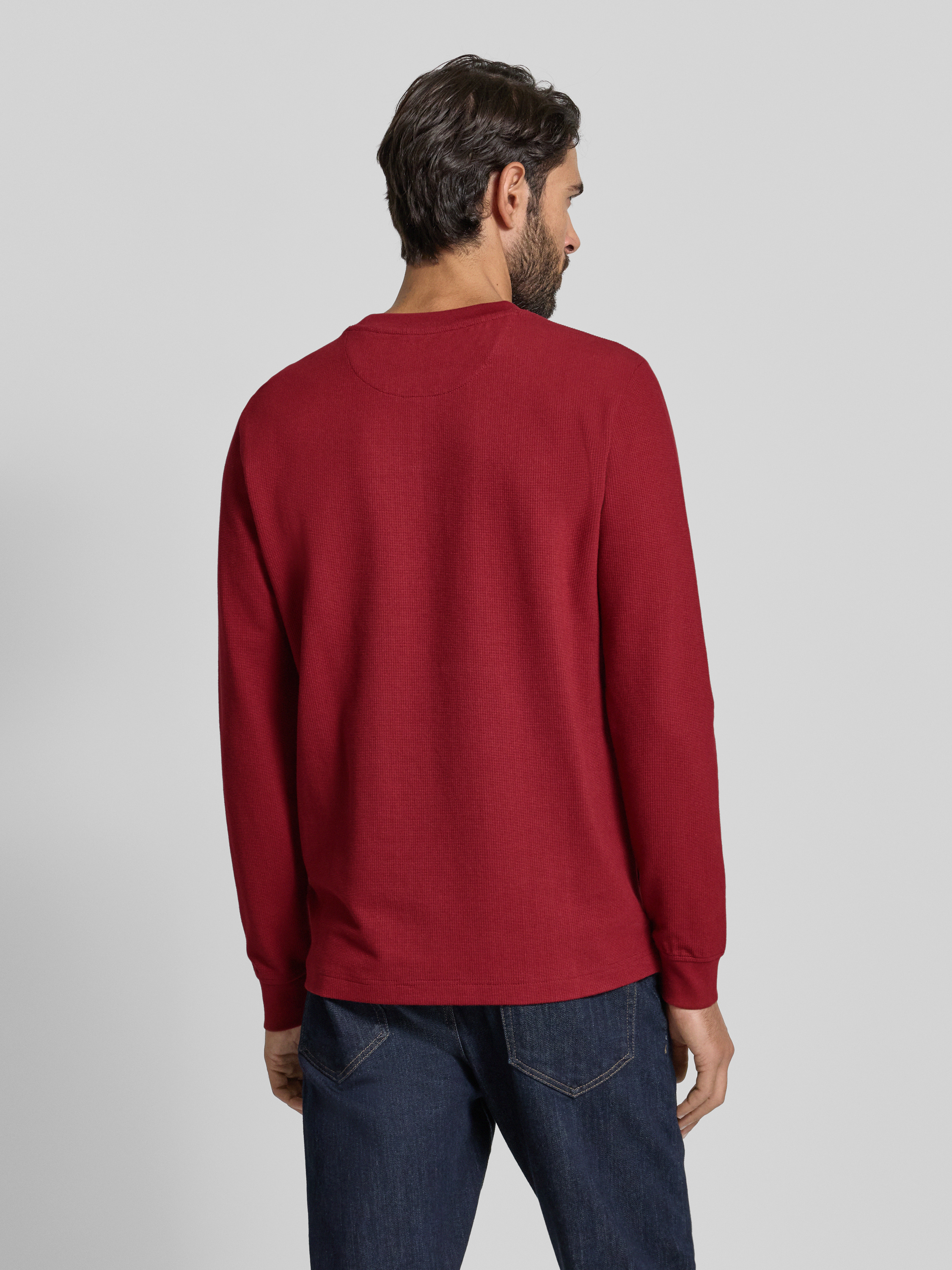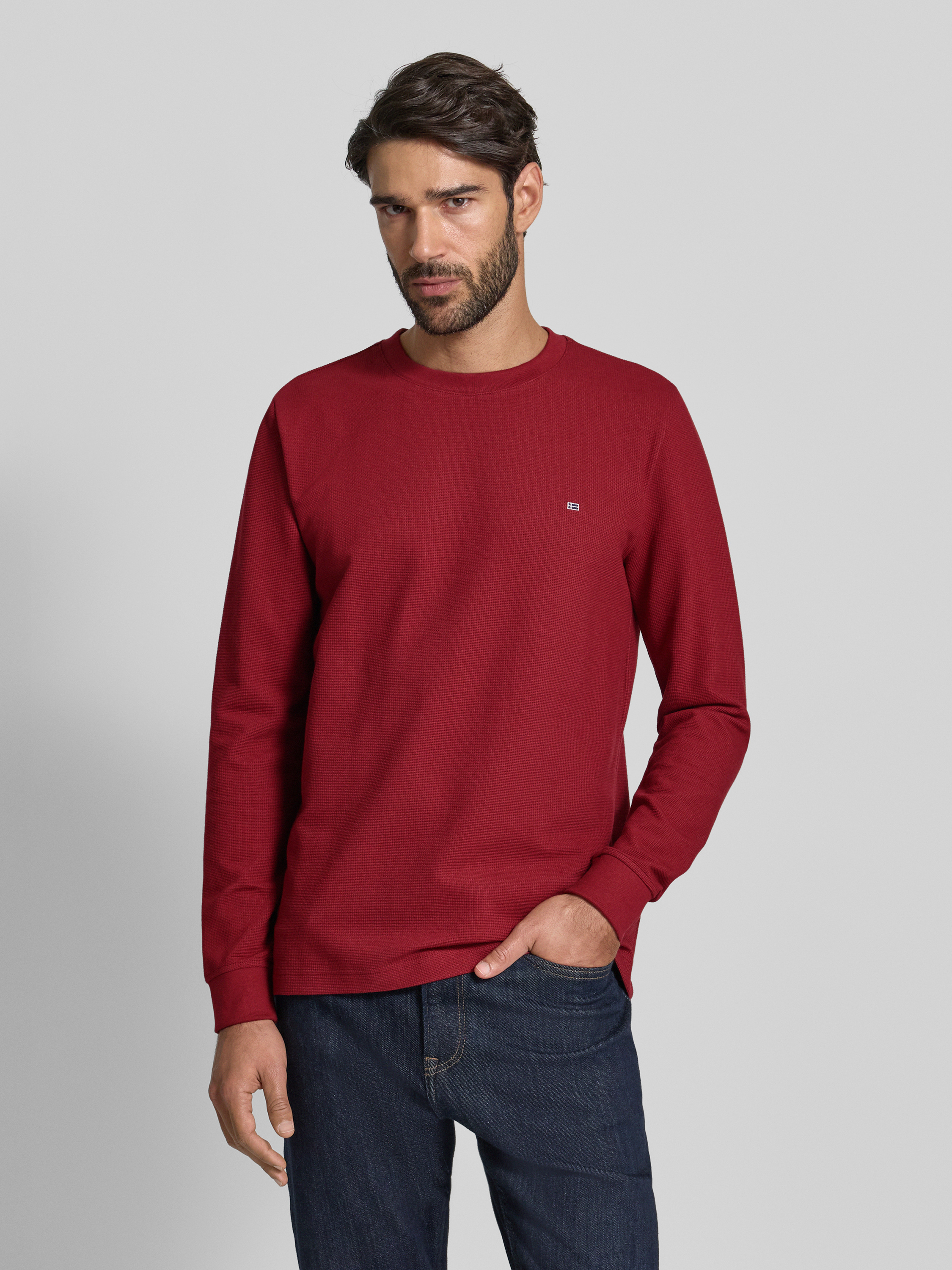 Shirt met lange mouwen, structuurmotief en ronde hals in donkerrood