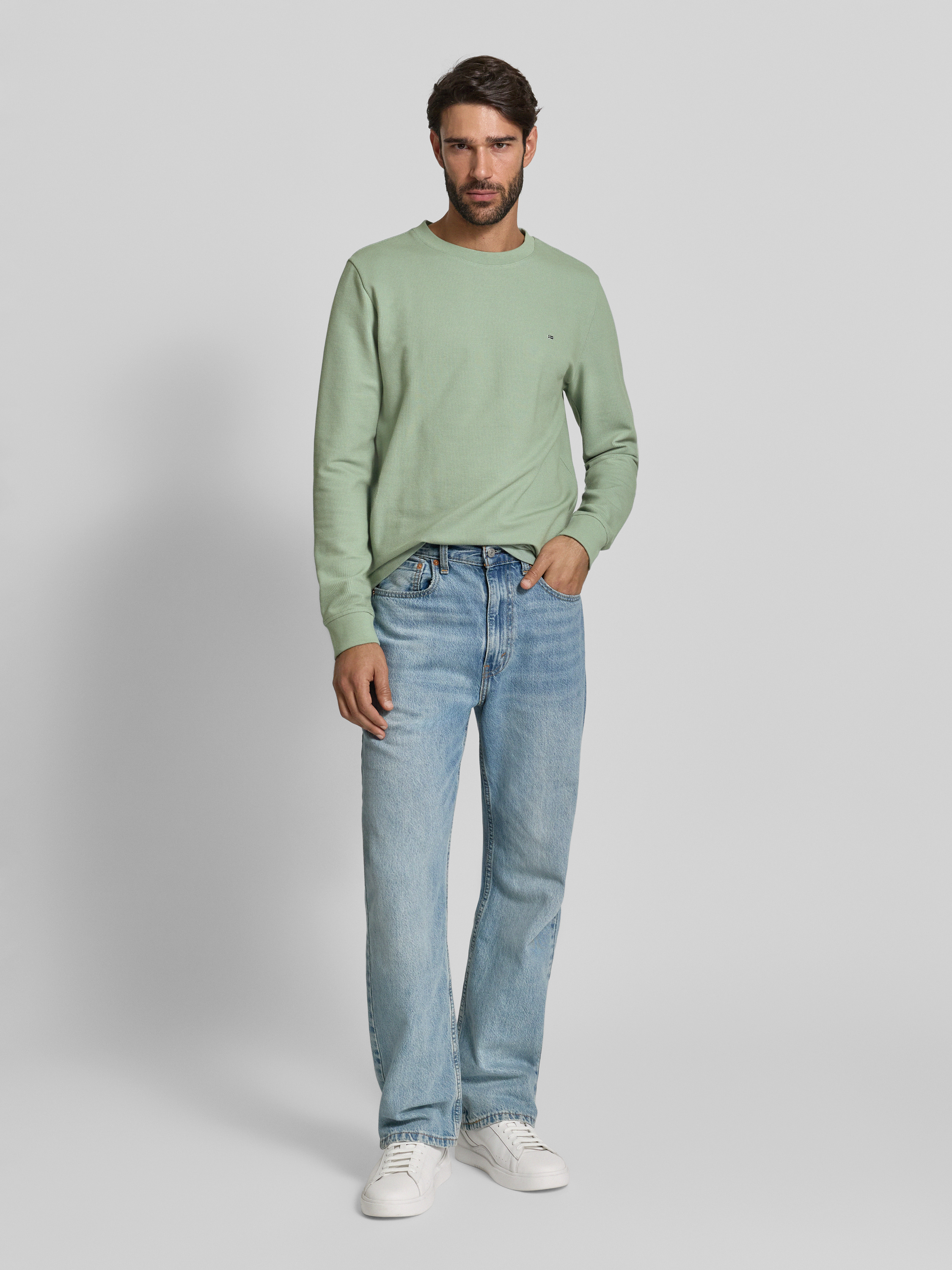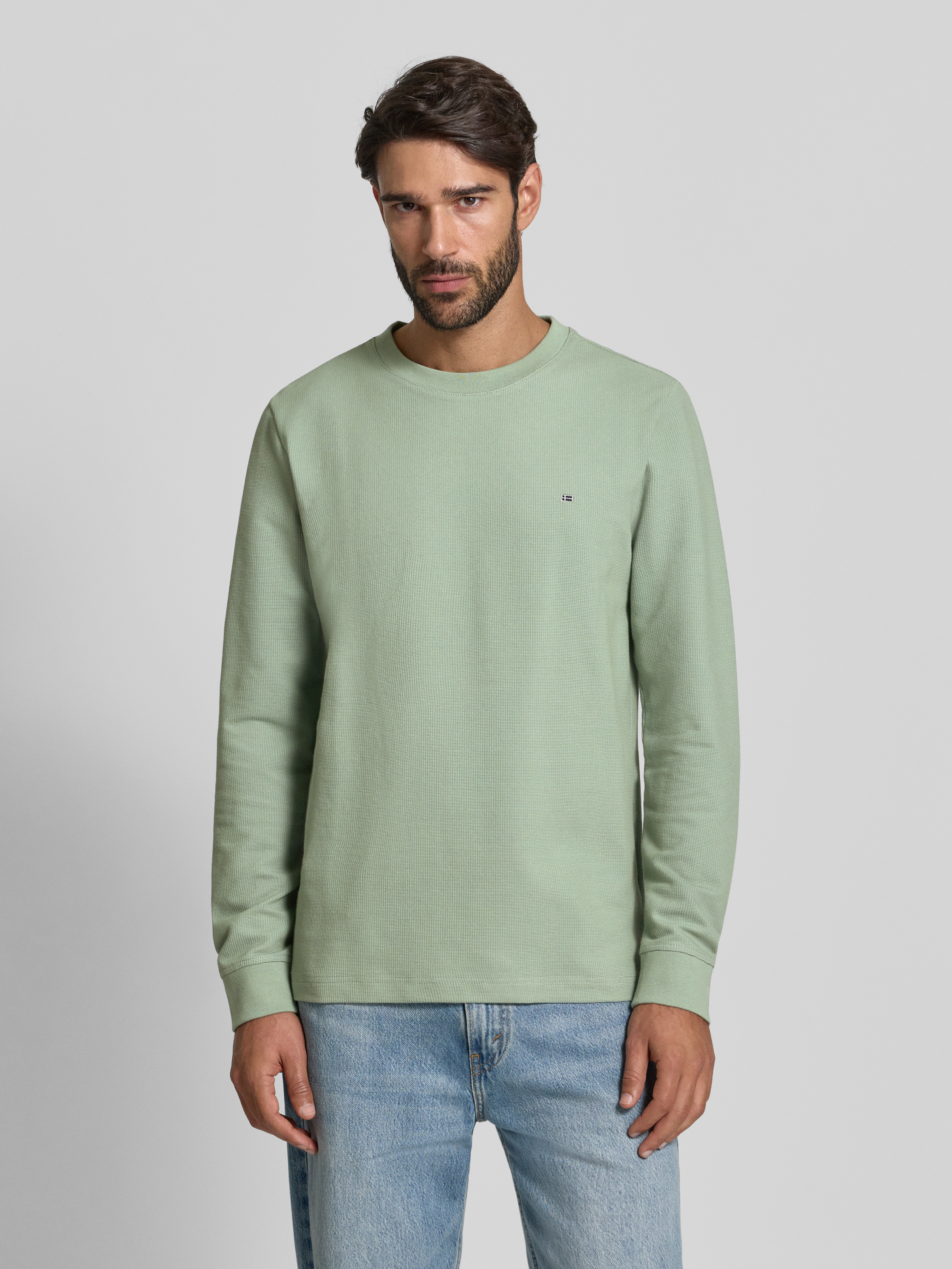 Shirt met lange mouwen, structuurmotief en ronde hals in rietgroen