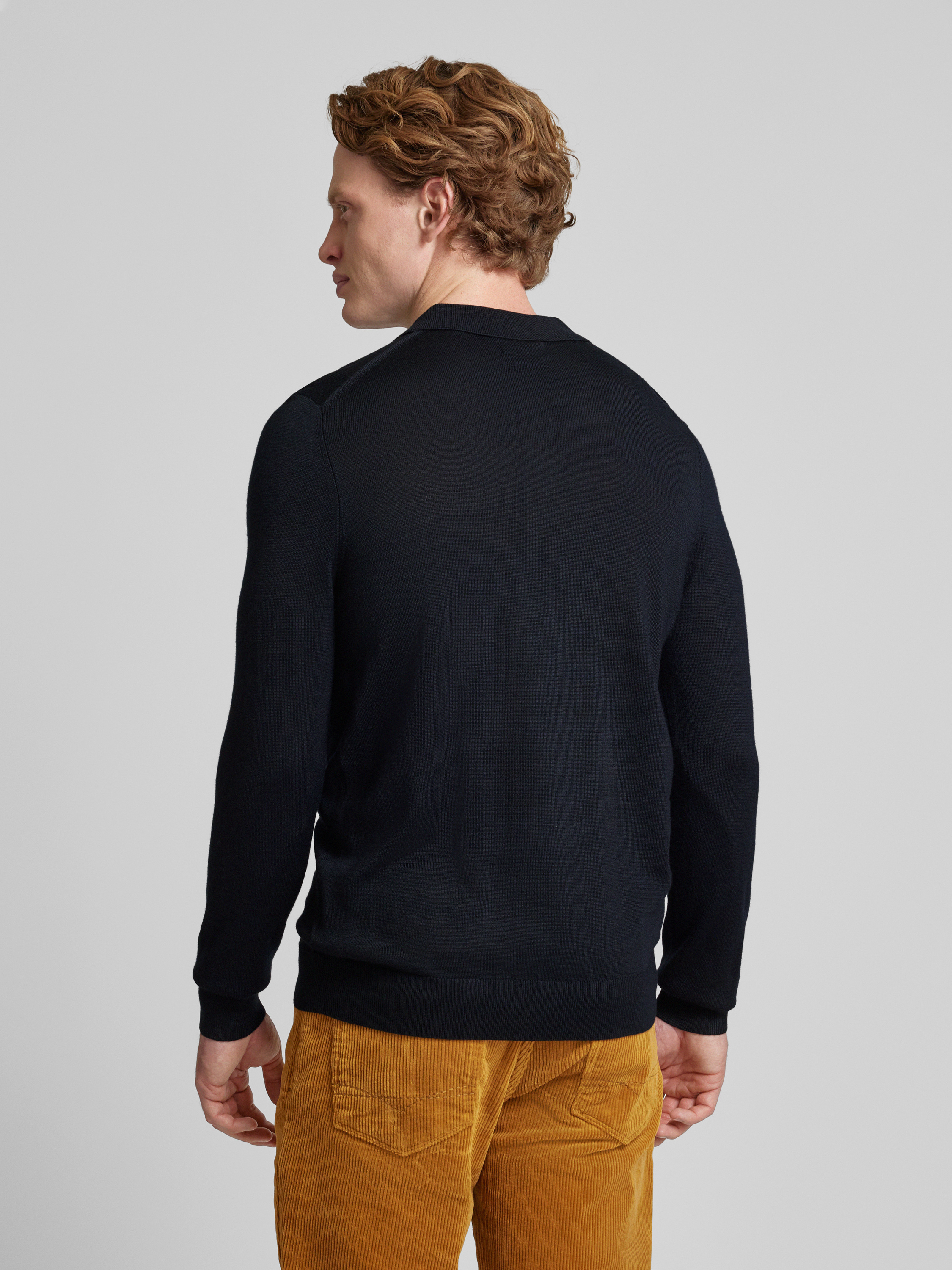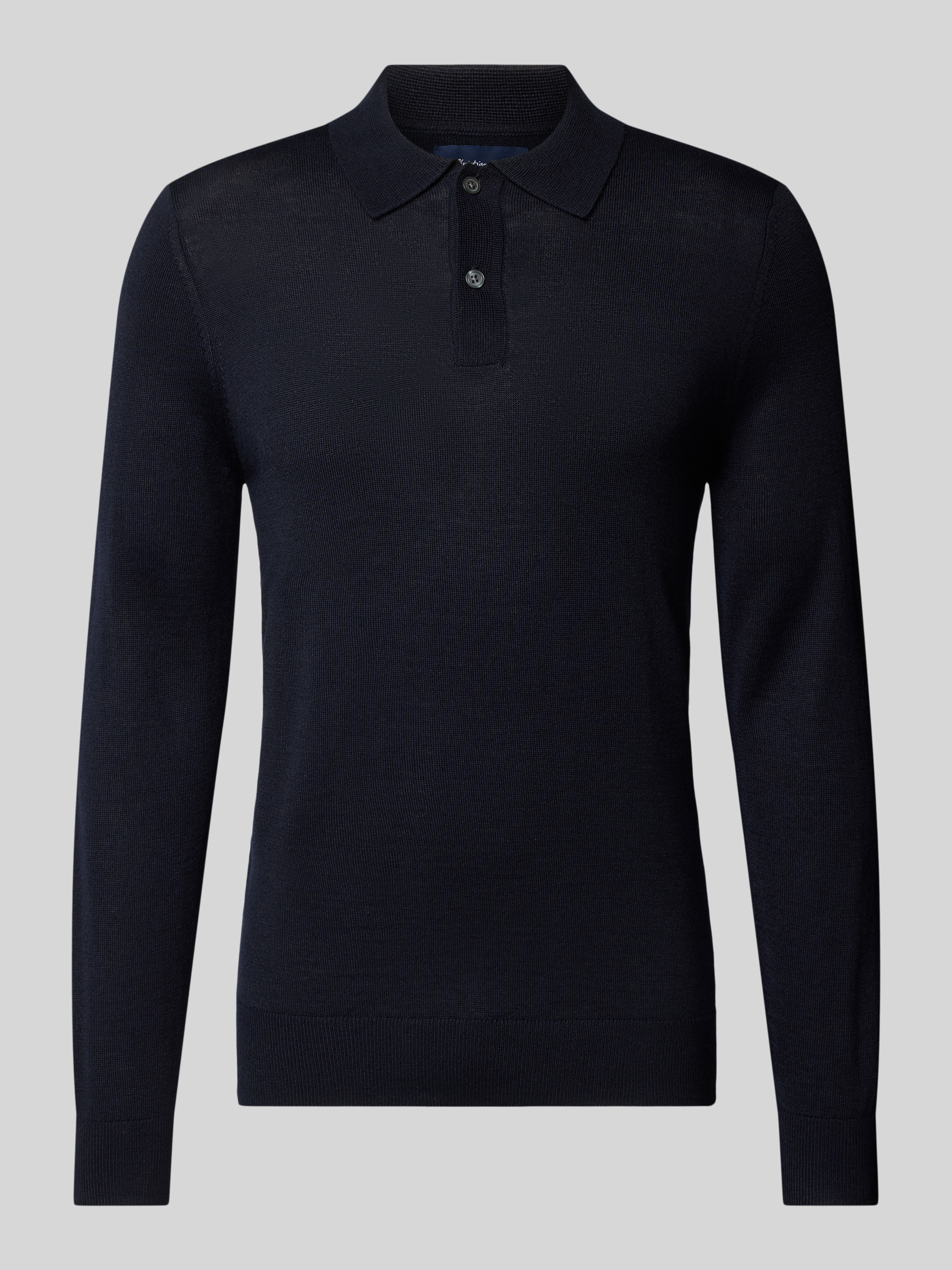 Christian Berg MenSlim fit gebreide pullover met polokraag in marineblauw