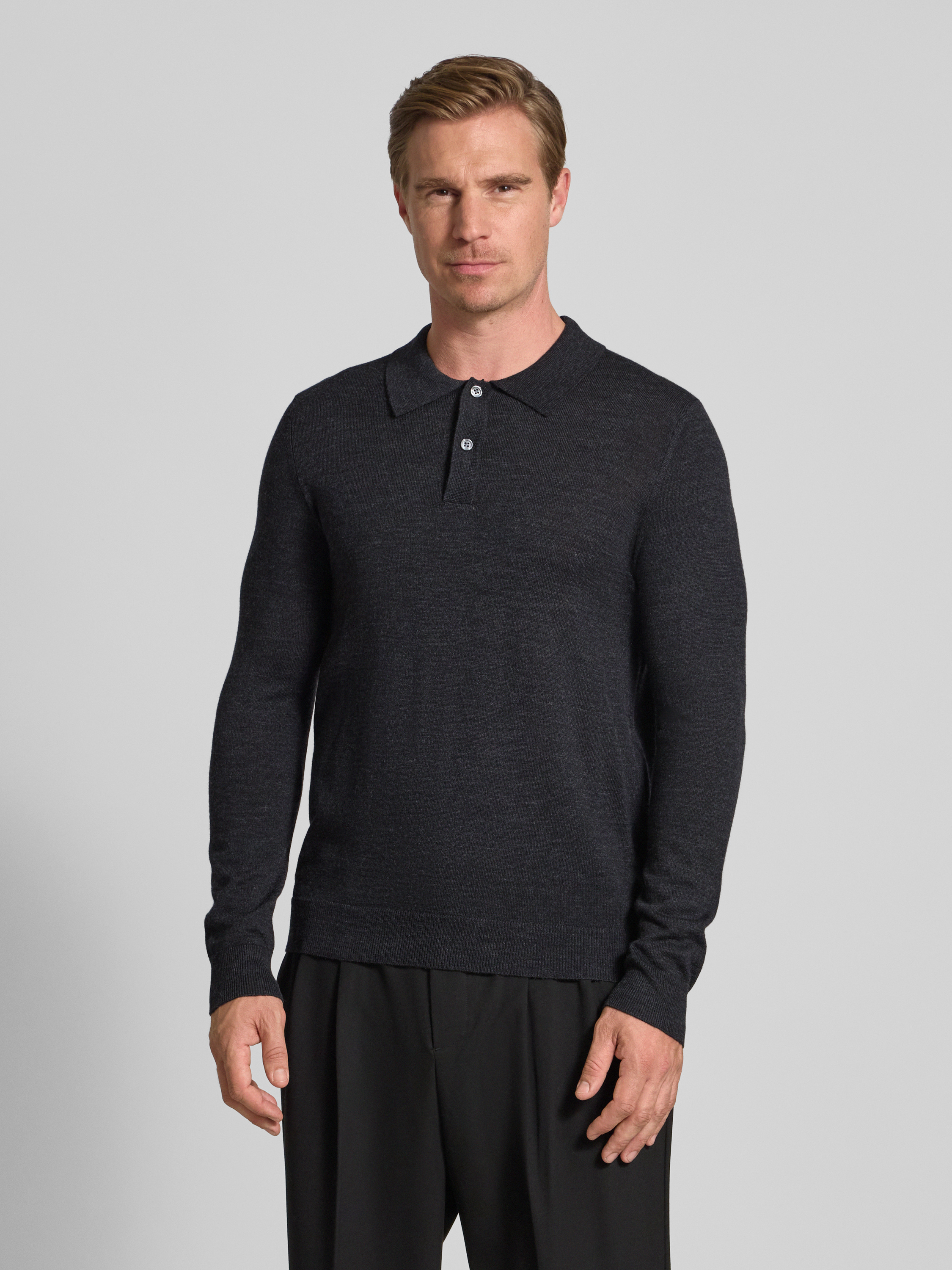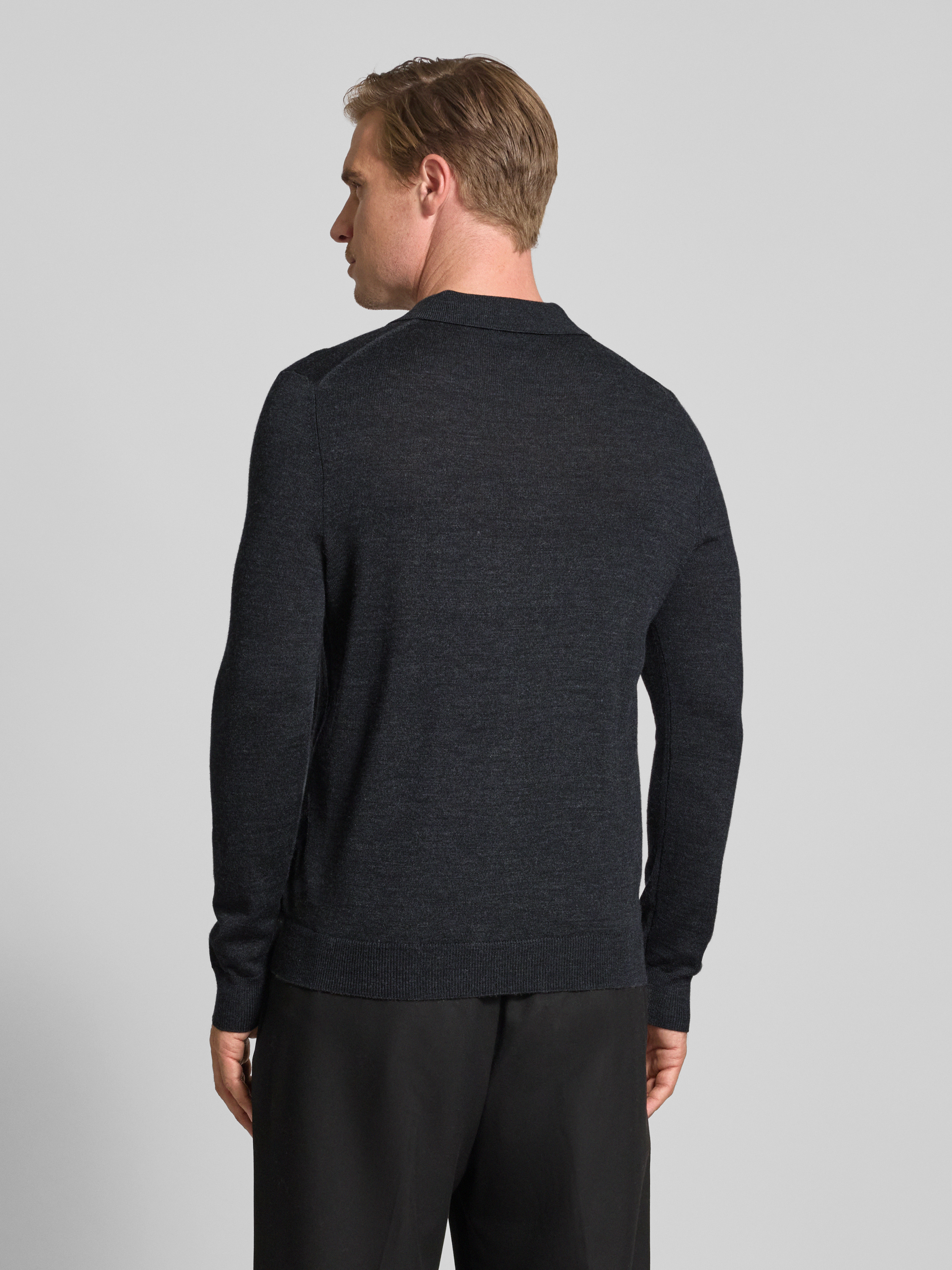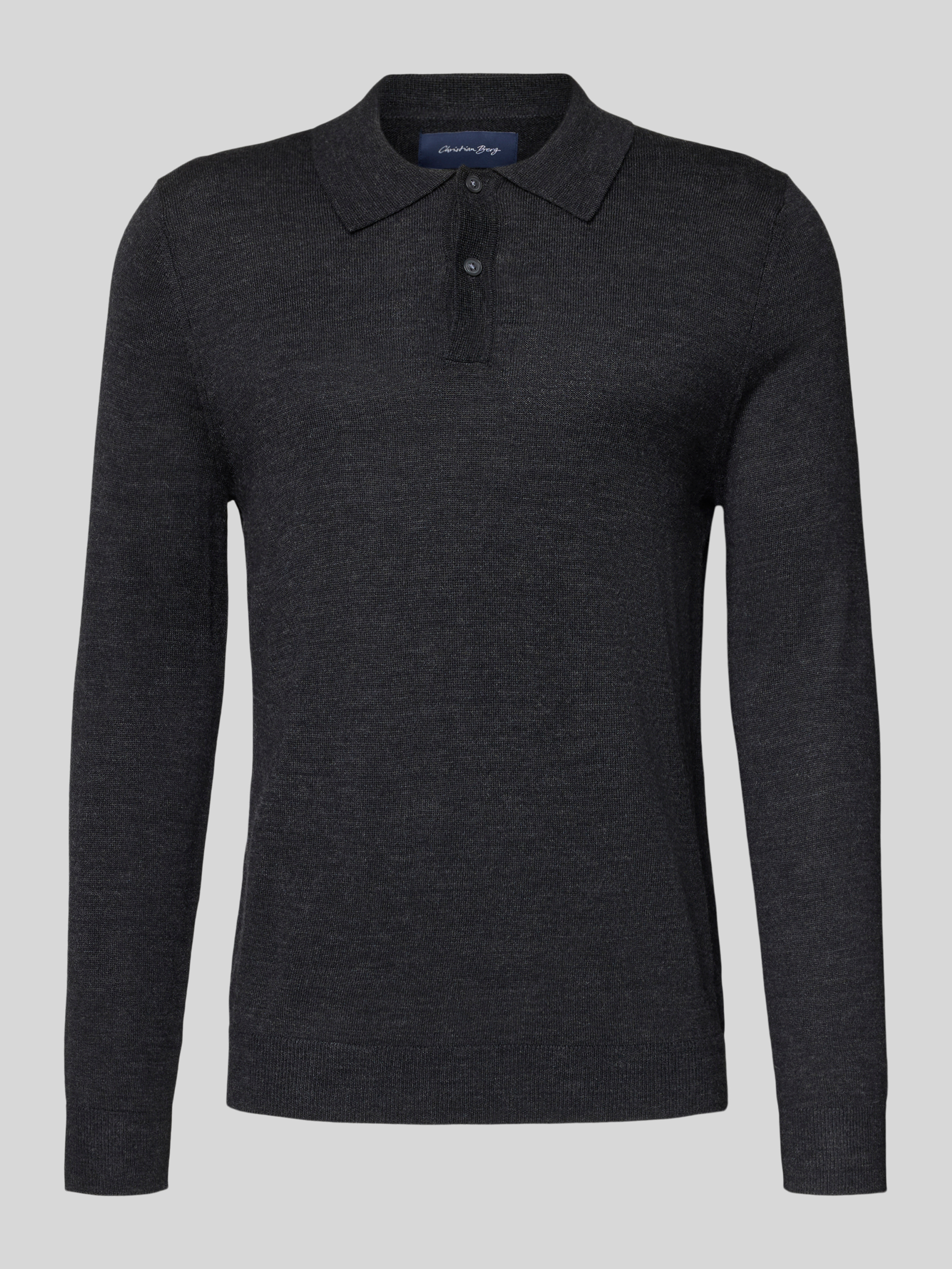 Christian Berg MenSlim fit gebreide pullover van wolmix in antraciet gemêleerd