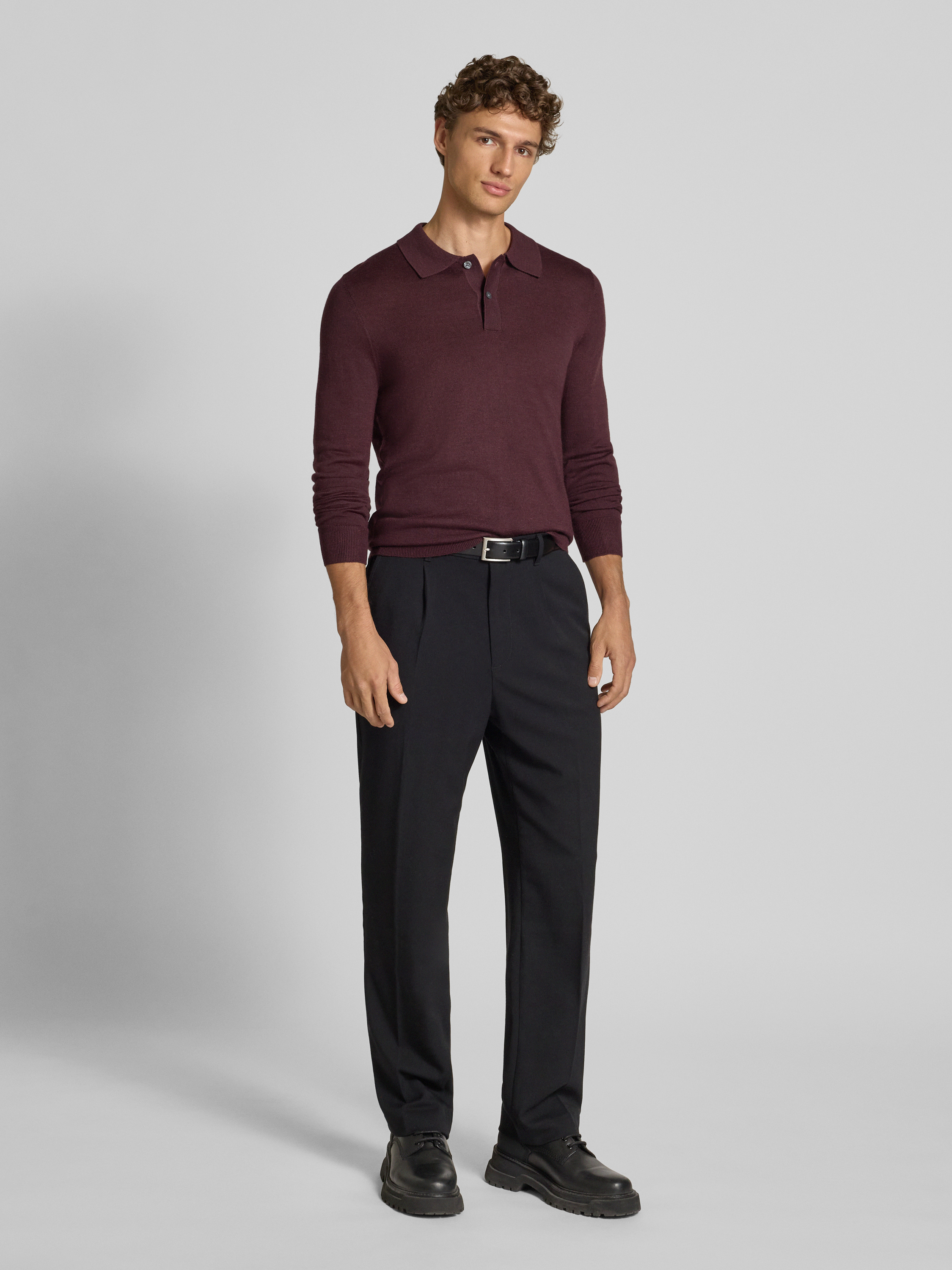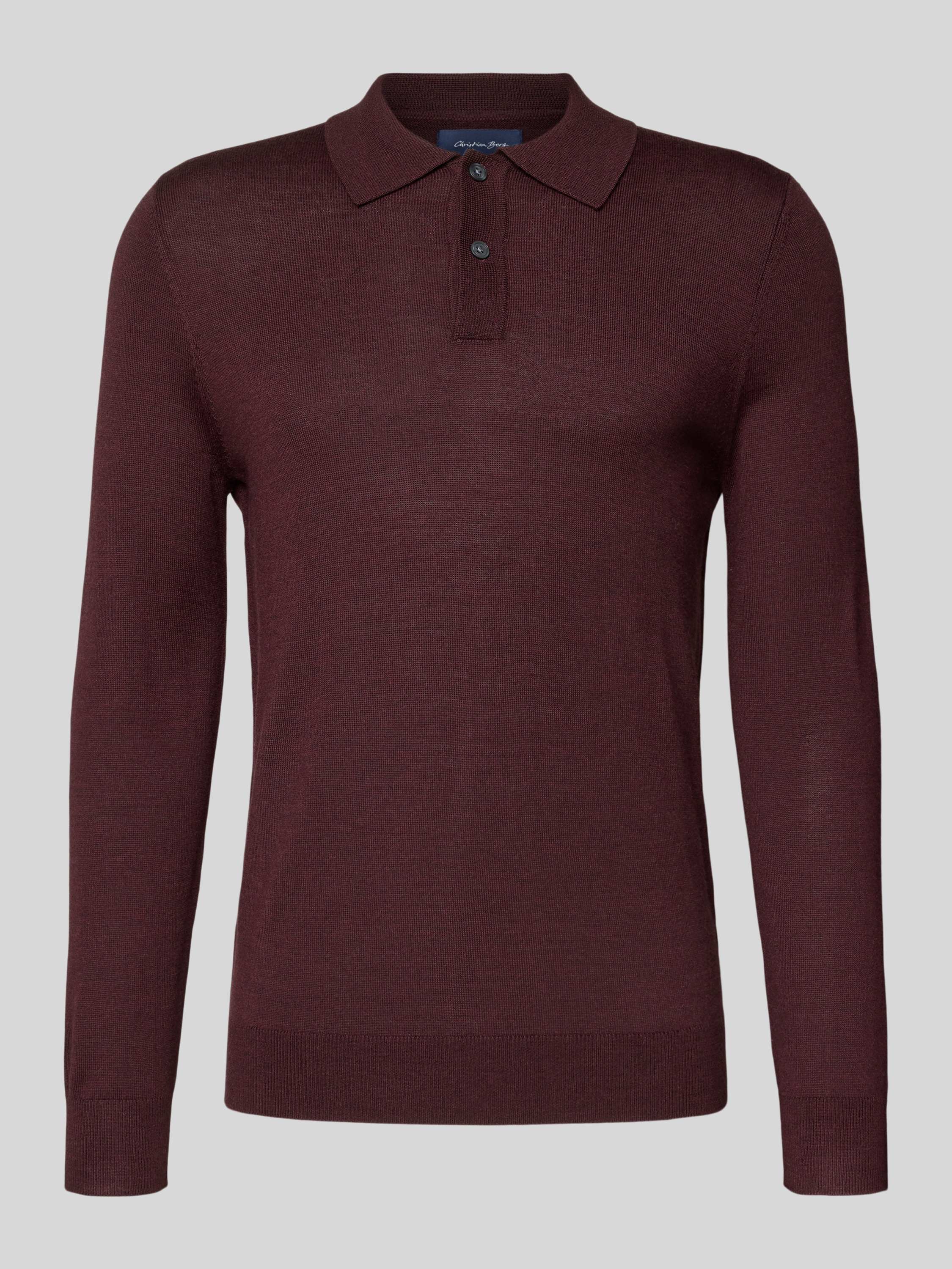 Christian Berg MenSlim fit gebreide pullover van wolmix in donkerrood gemêleerd