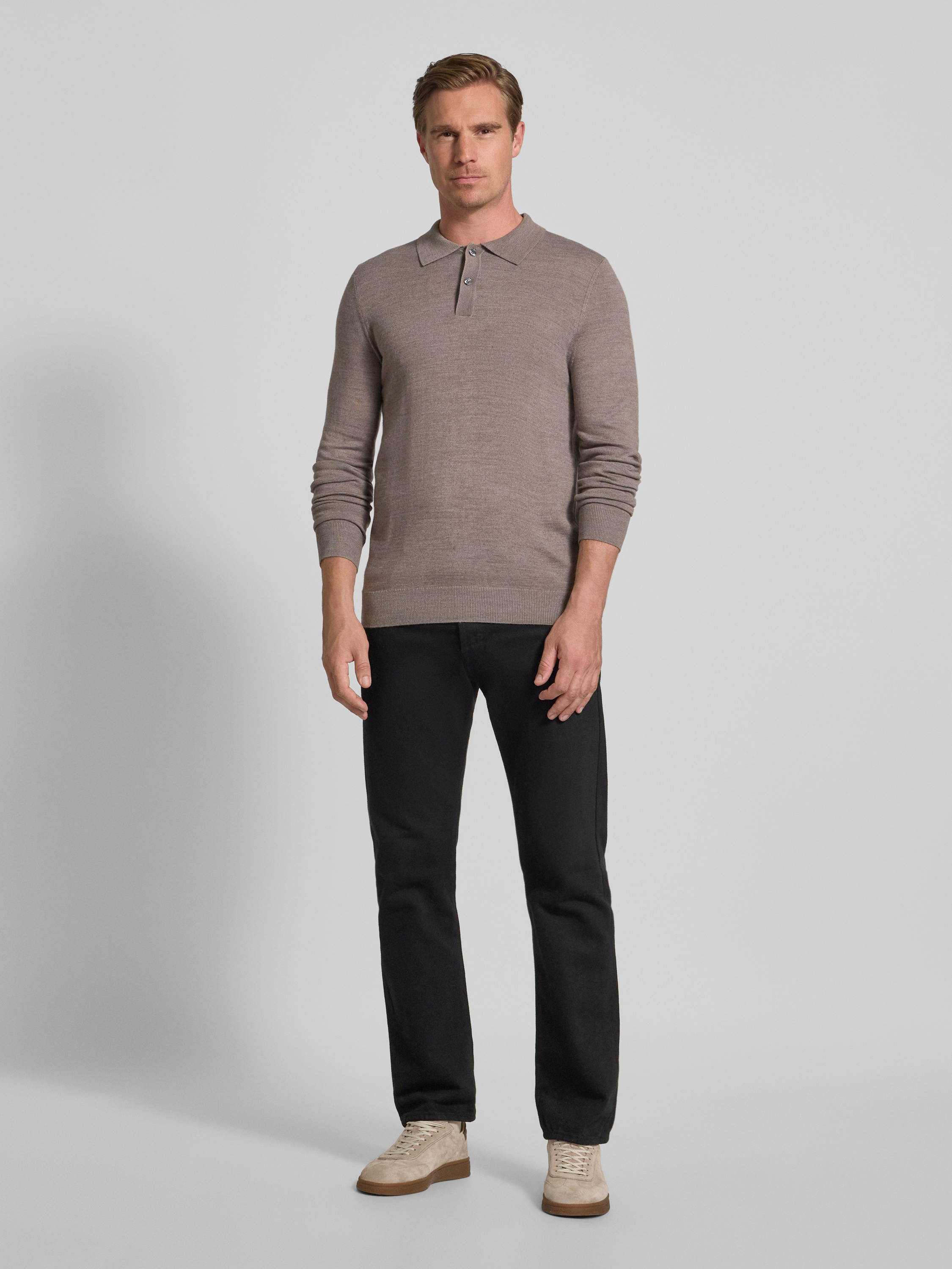 Christian Berg MenSlim fit gebreide pullover van wolmix in roodbruin gemêleerd