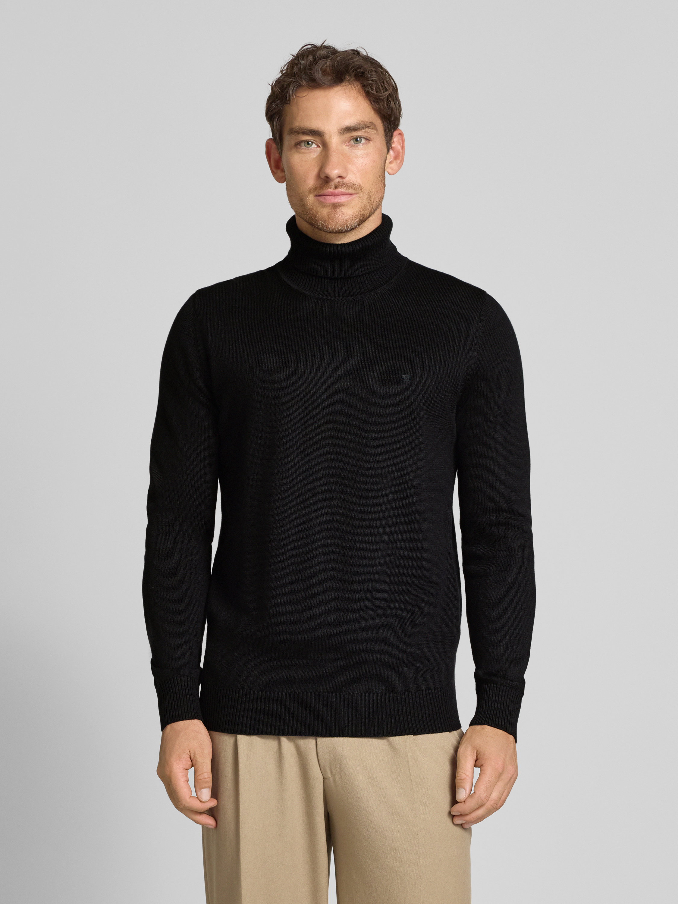 Christian Berg MenSlim fit pullover van een mix van katoen en wol in zwart