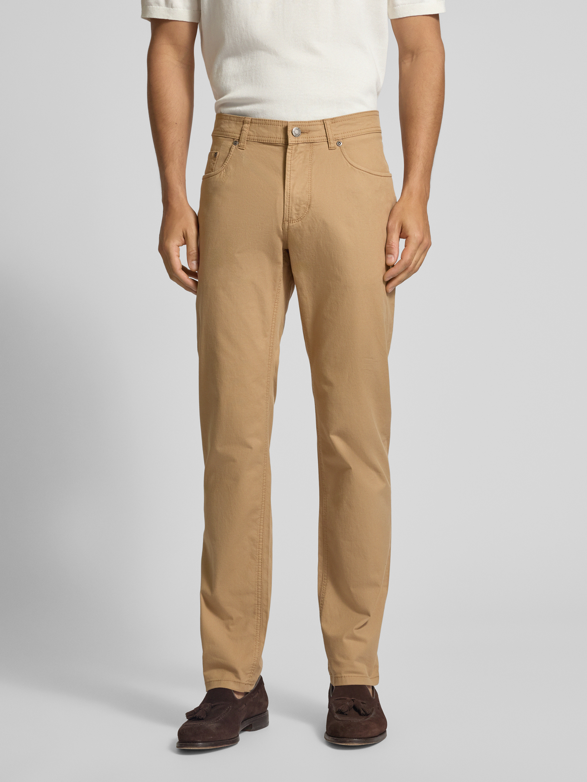 Christian Berg MenSlim fit stoffen broek met biologisch katoen en 5-pocketmodel in beige