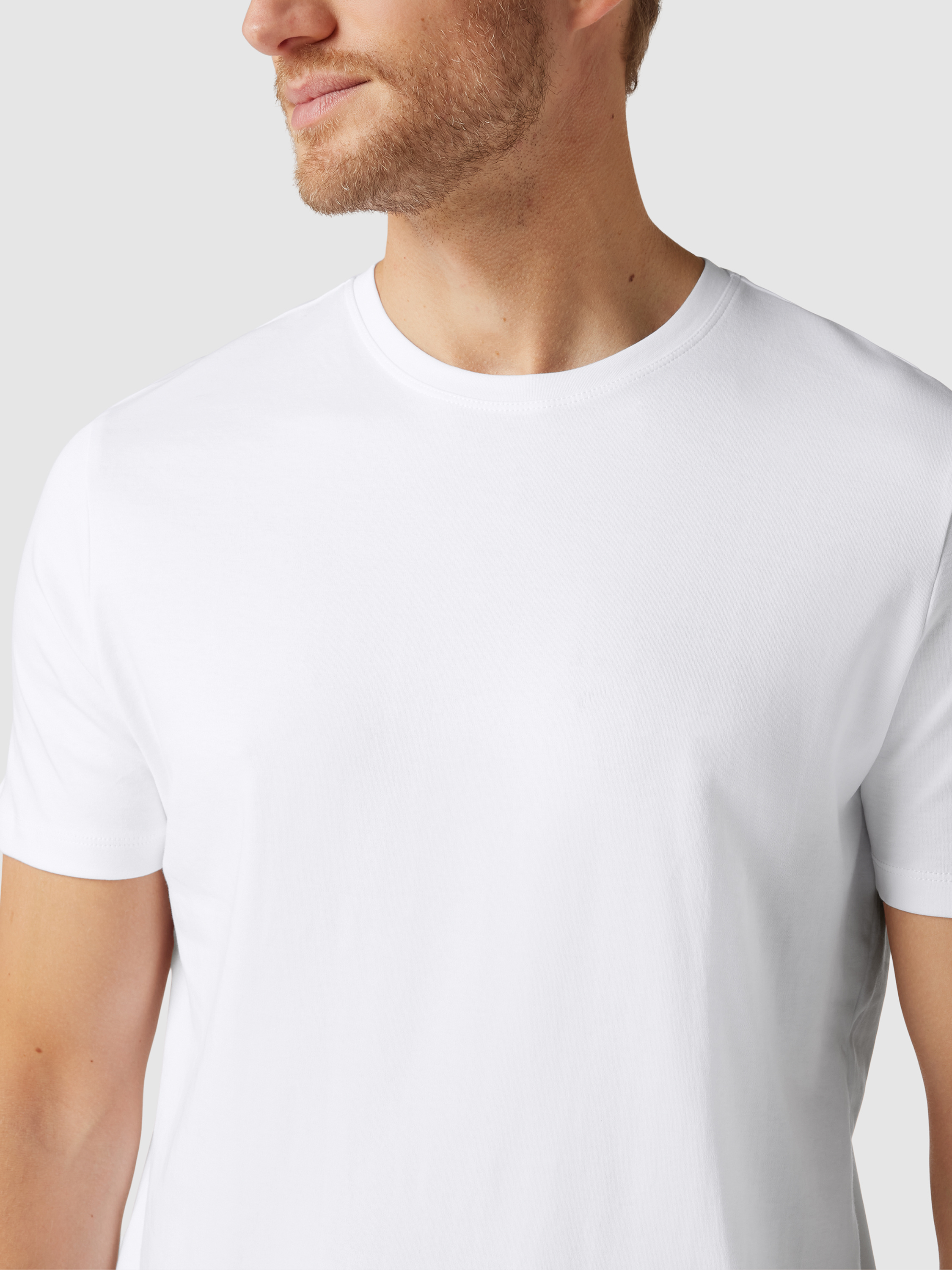 T-shirt met geribde ronde hals in wit