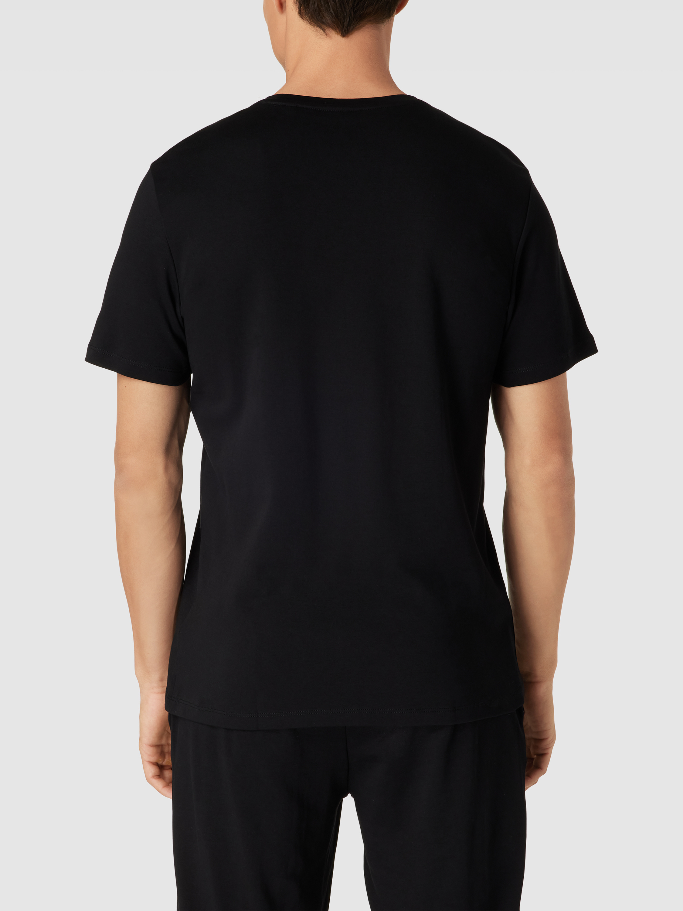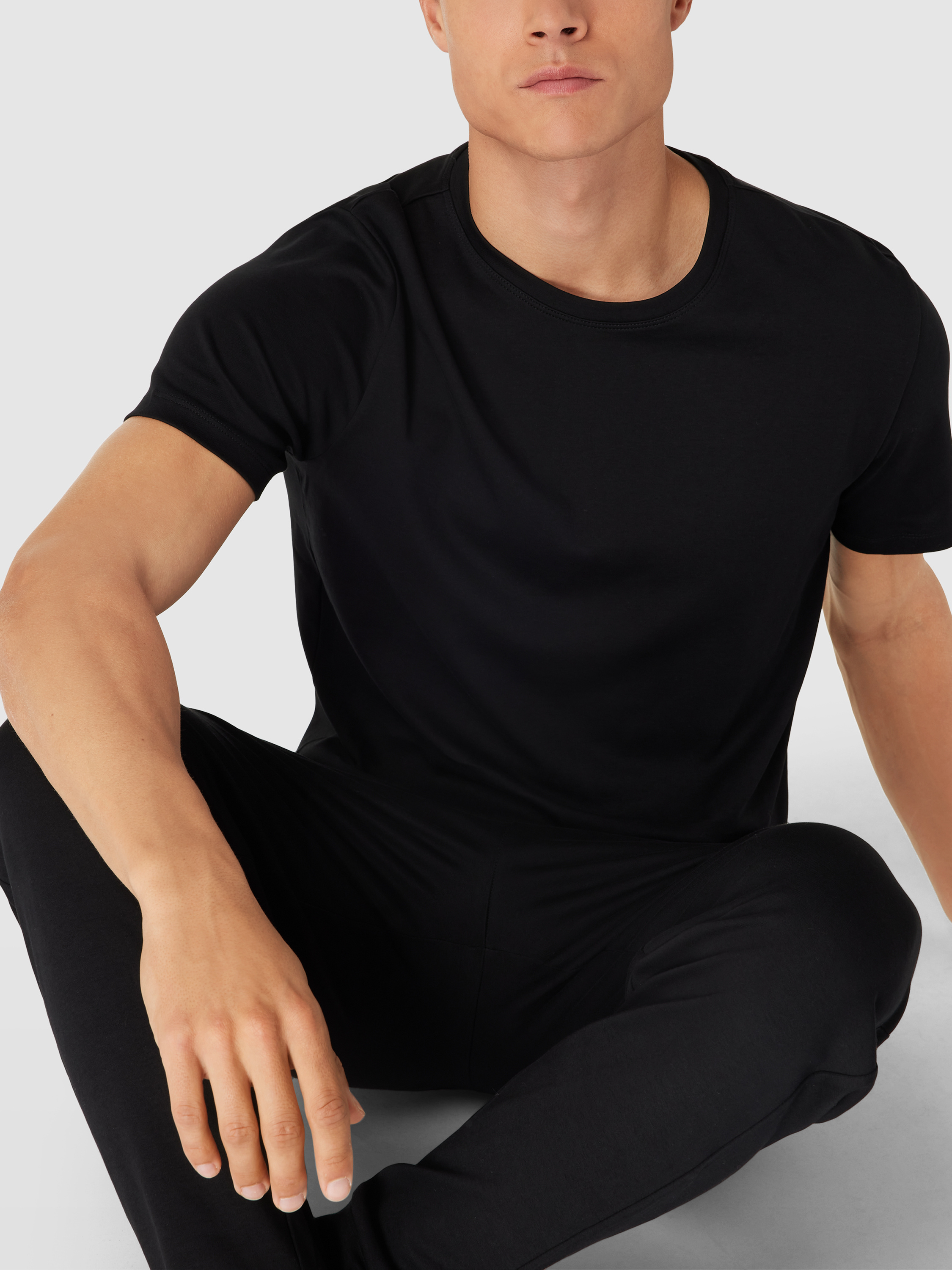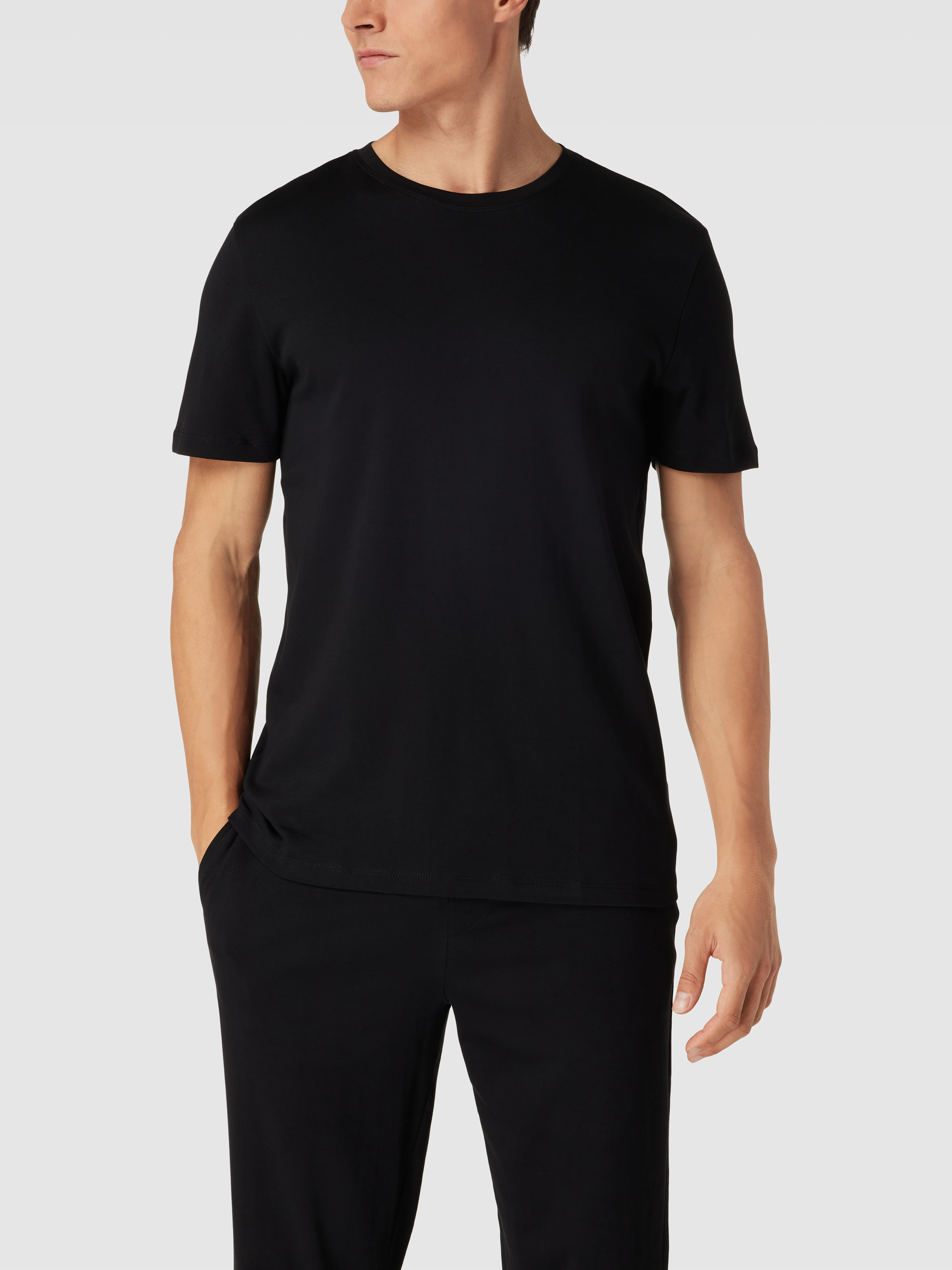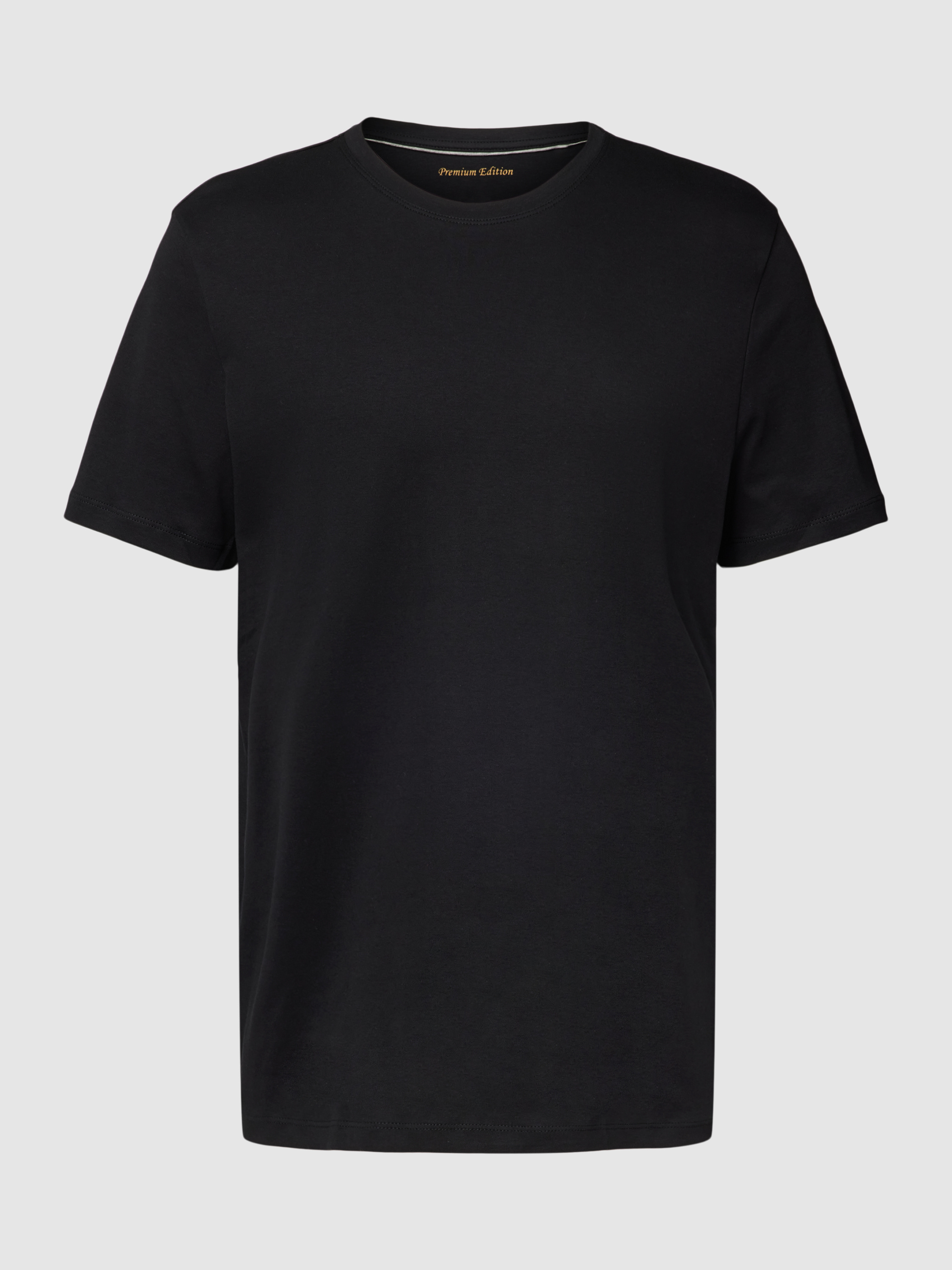 T-shirt met geribde ronde hals in zwart